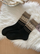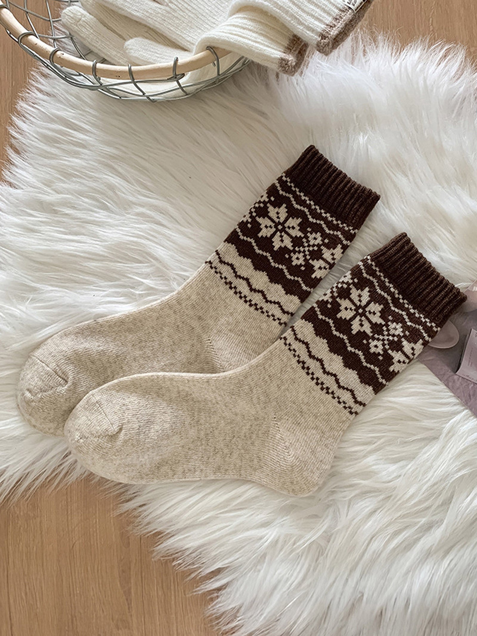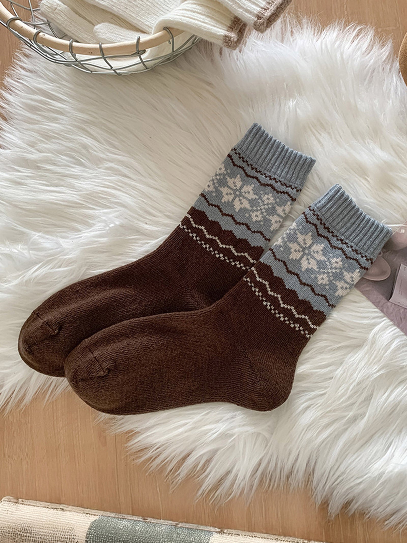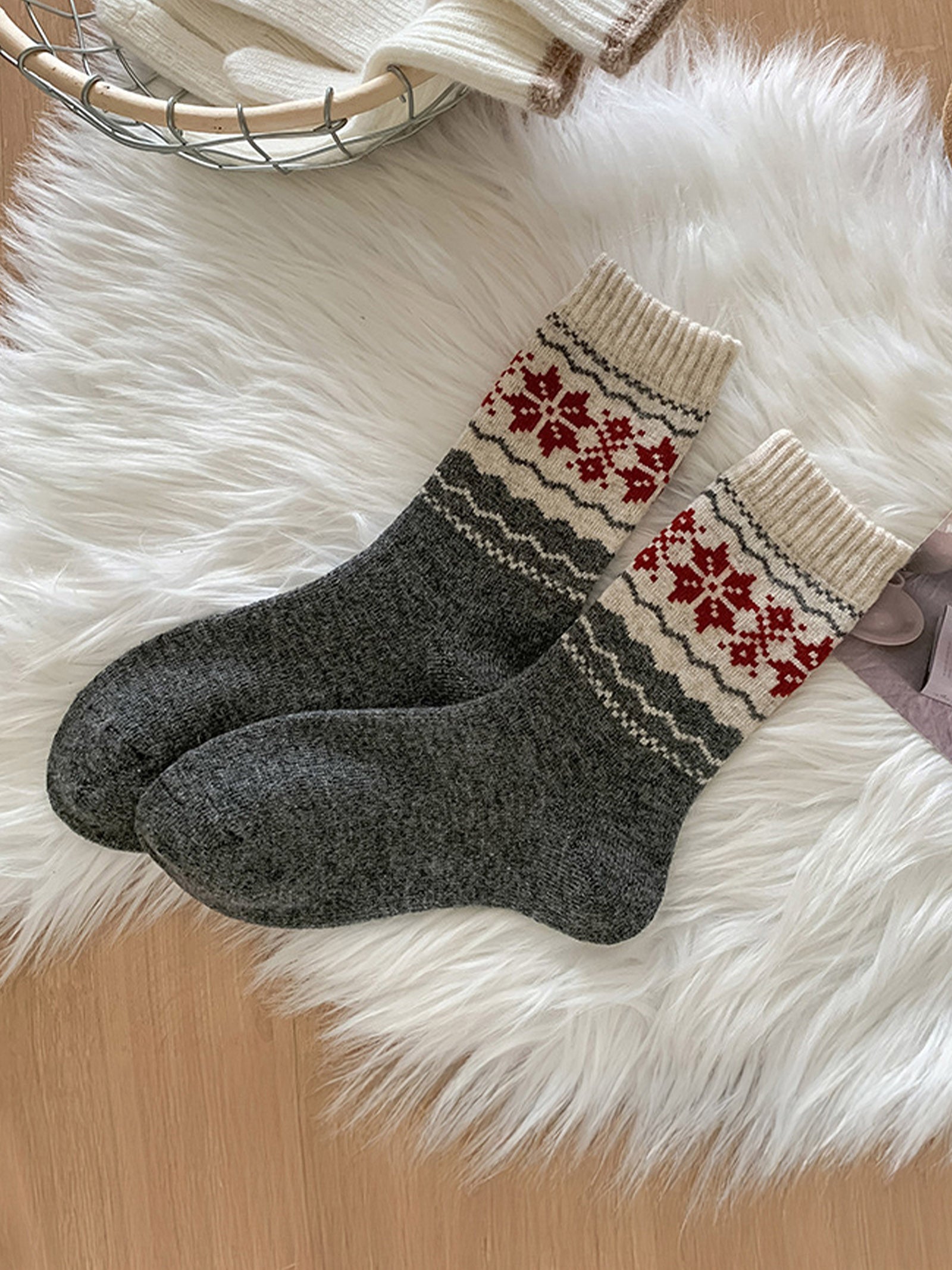 Wool Fair Isle Ethnic Jacquard Thick Slouch Mid-Calf Socks