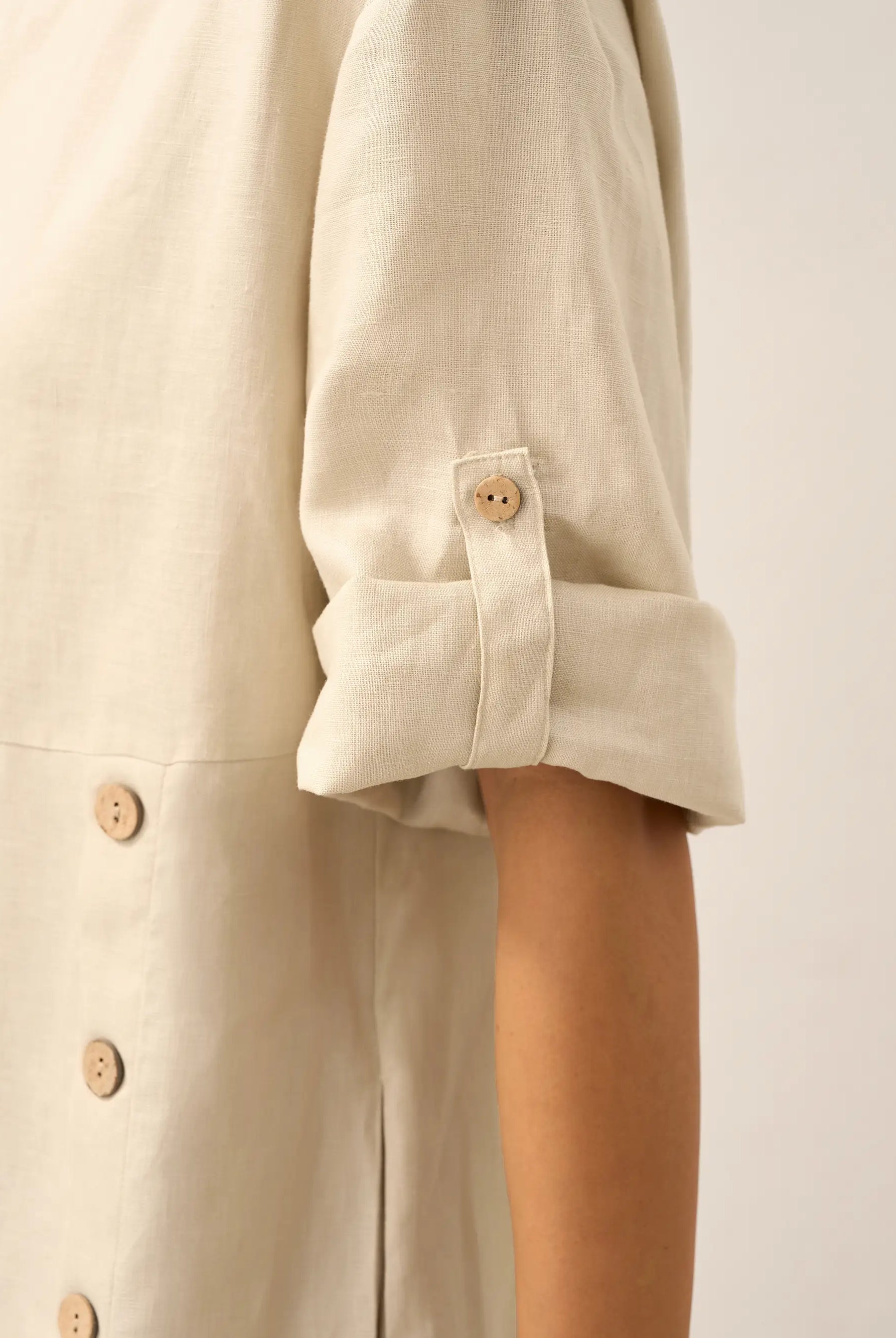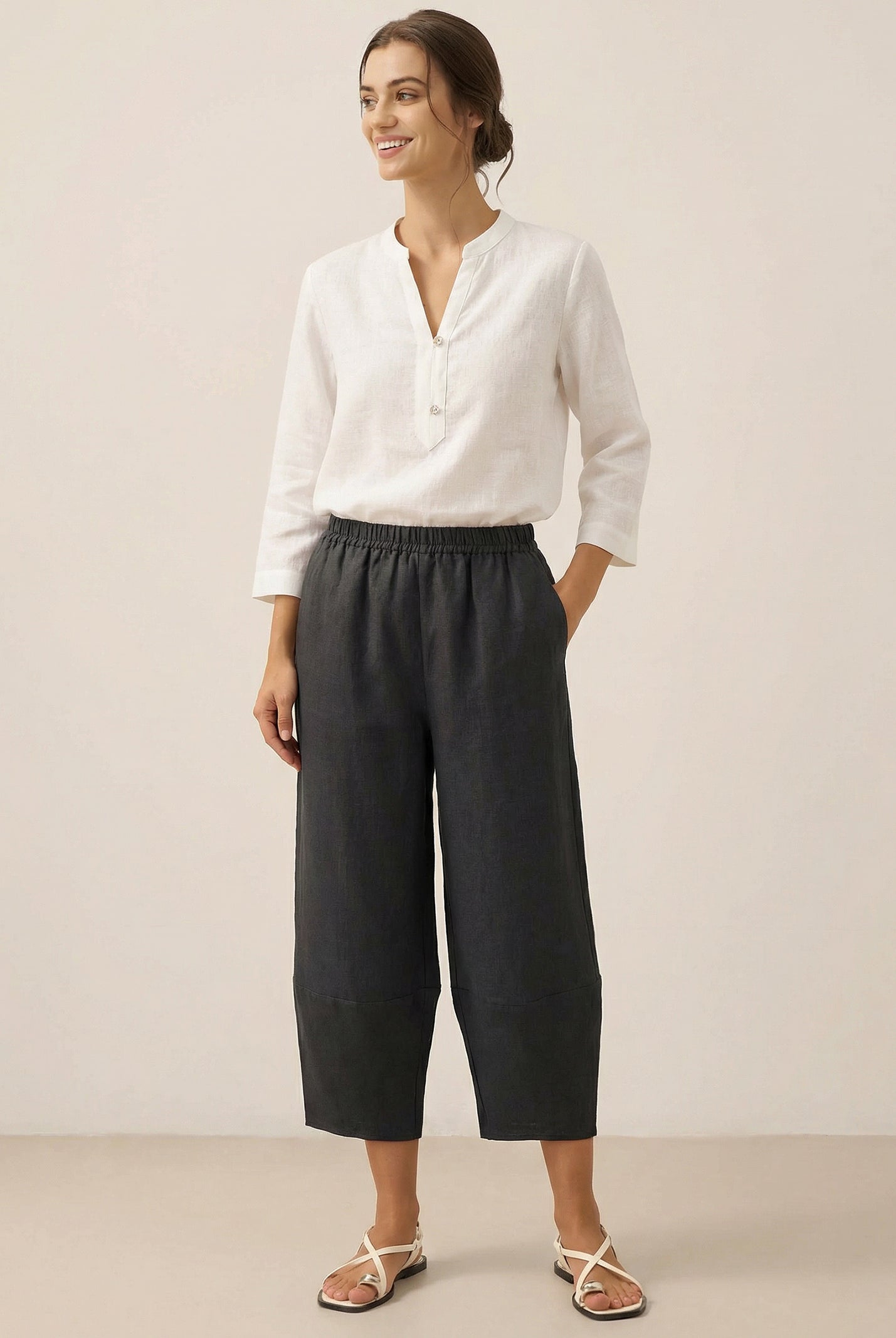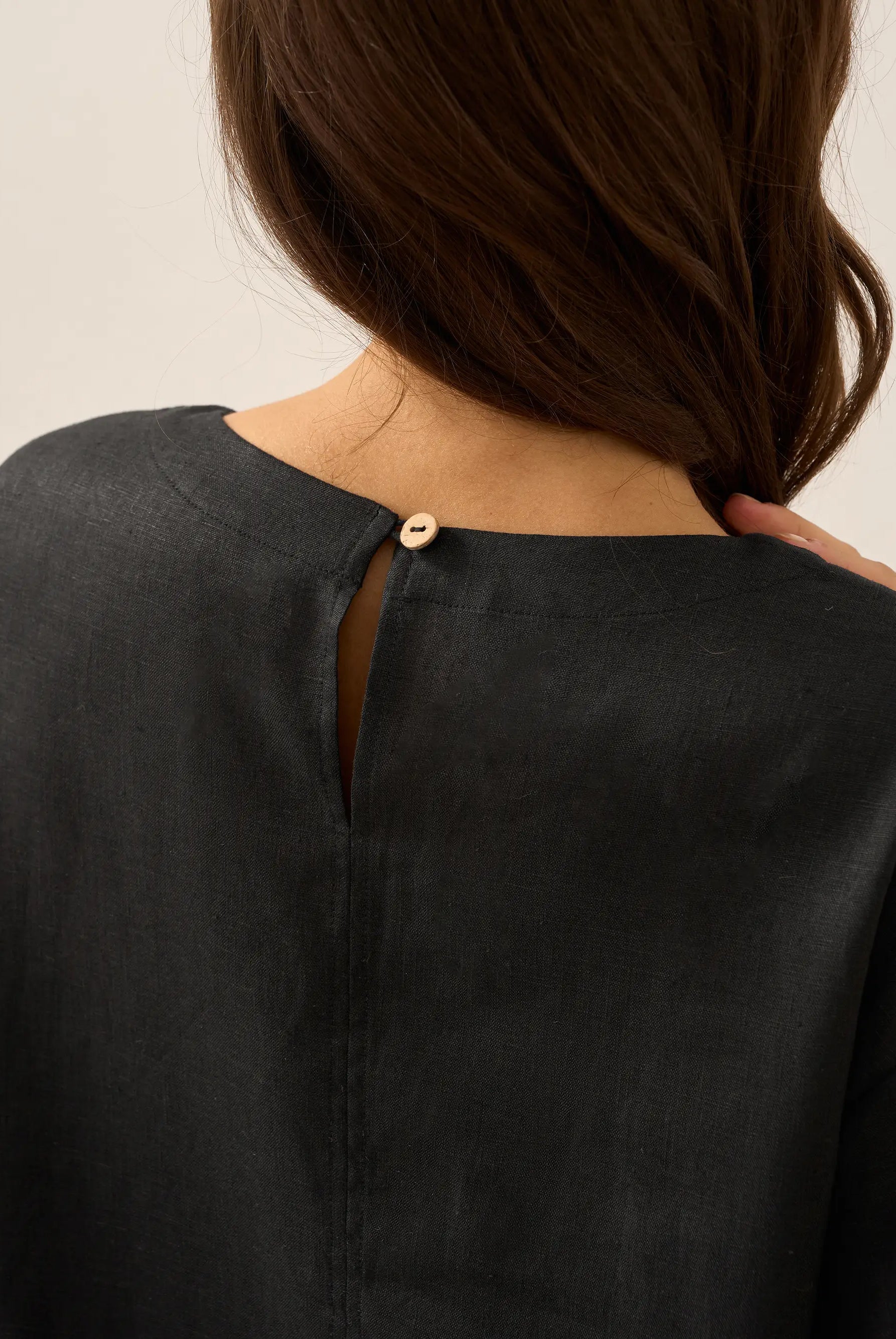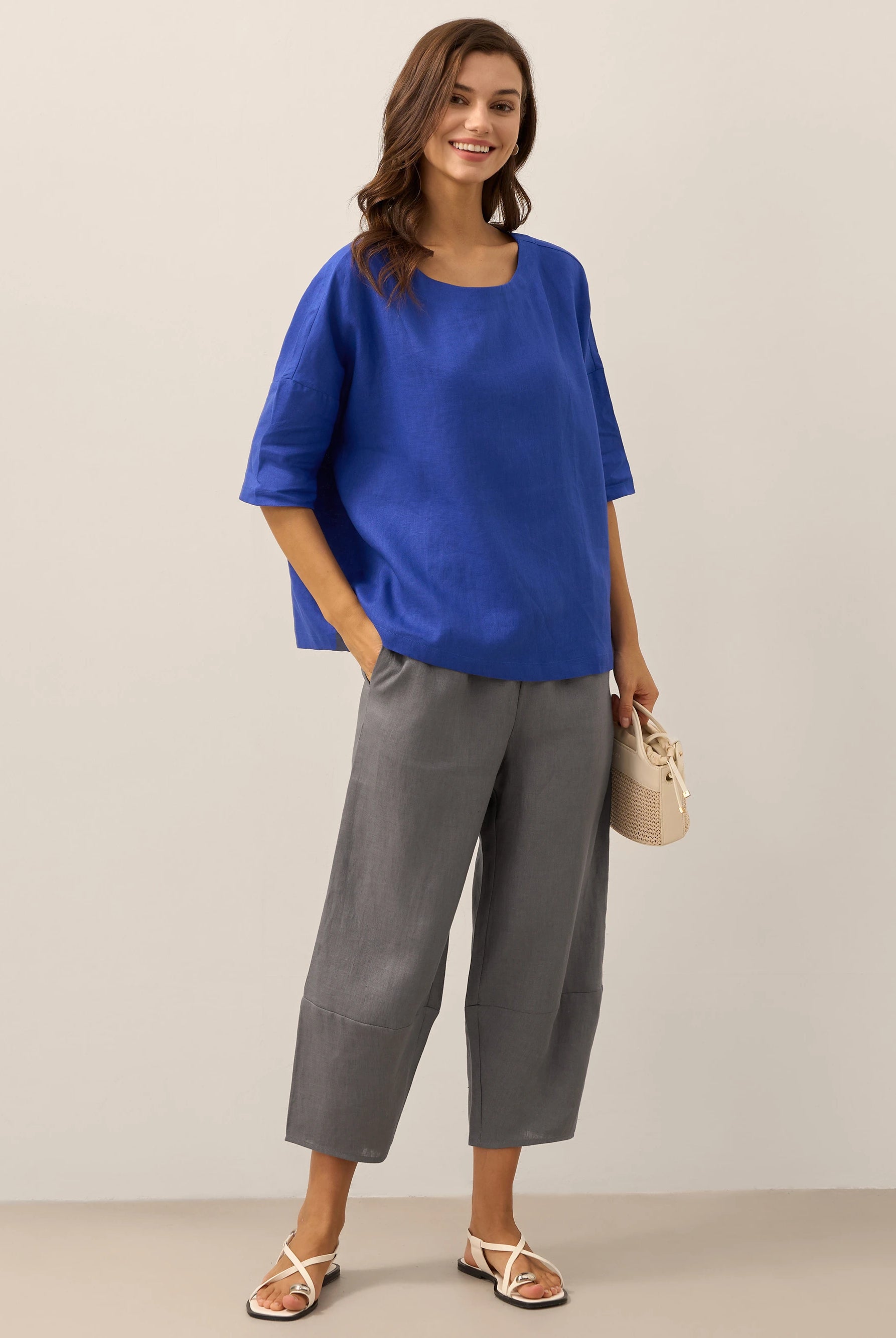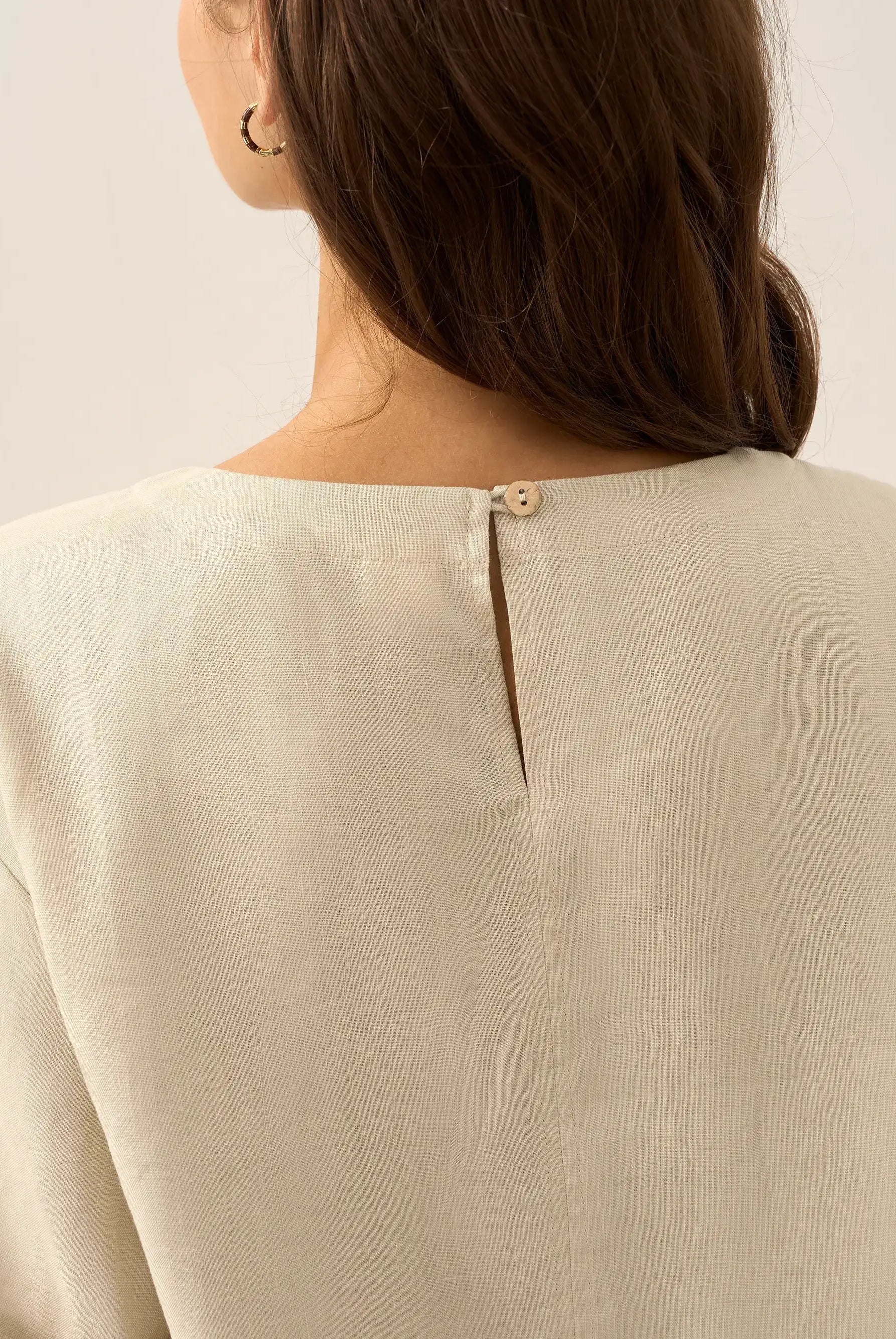 Linen Gingham Checked Round Soft-Fold Collar Top LAURA