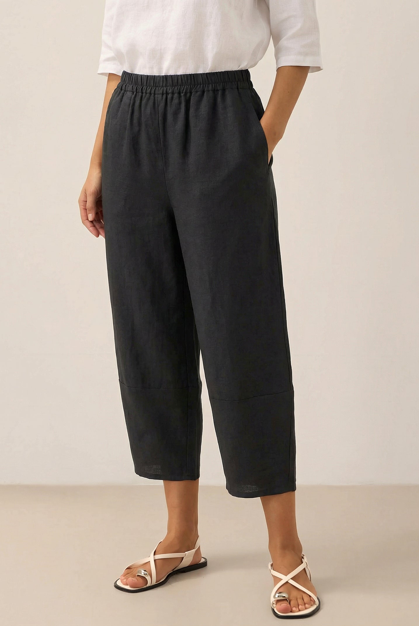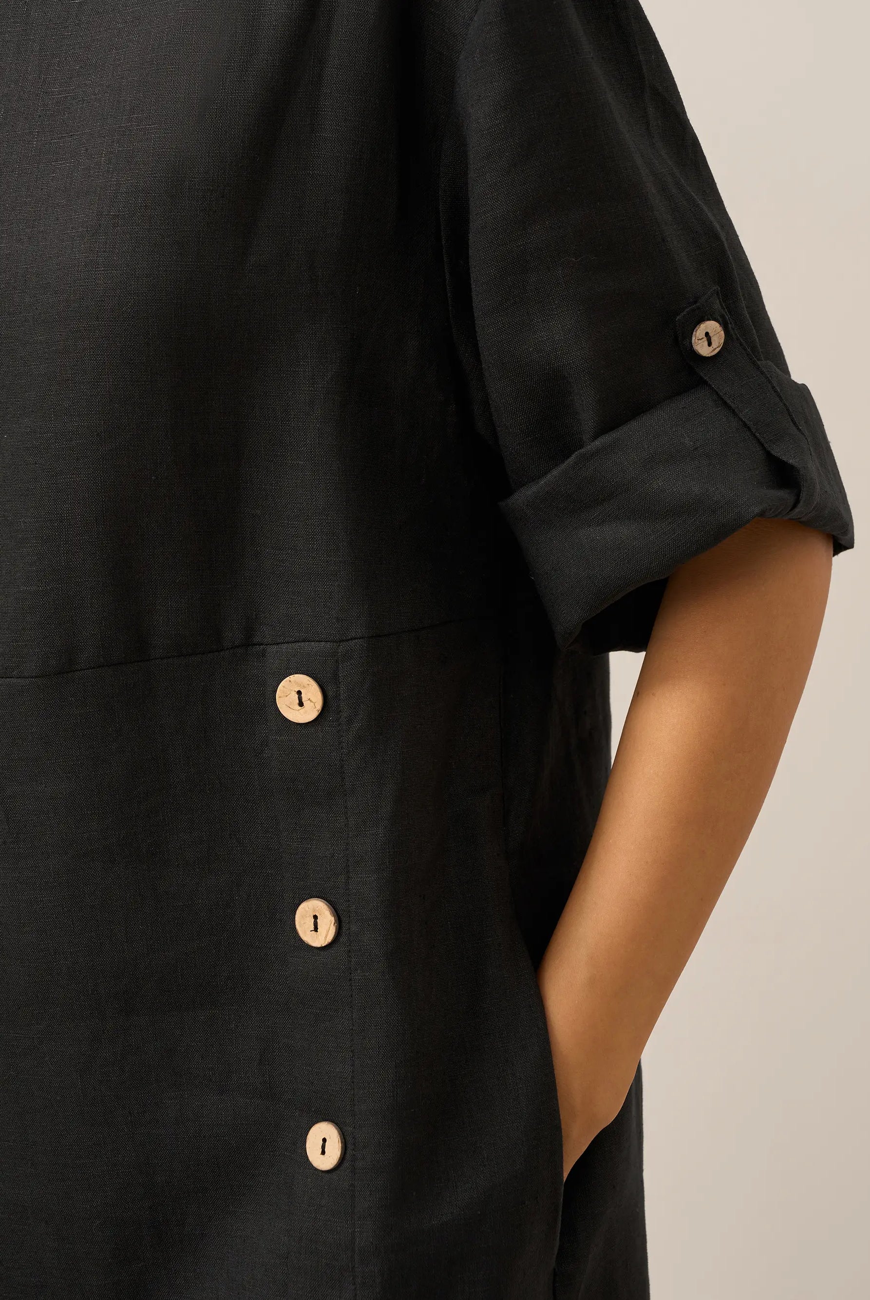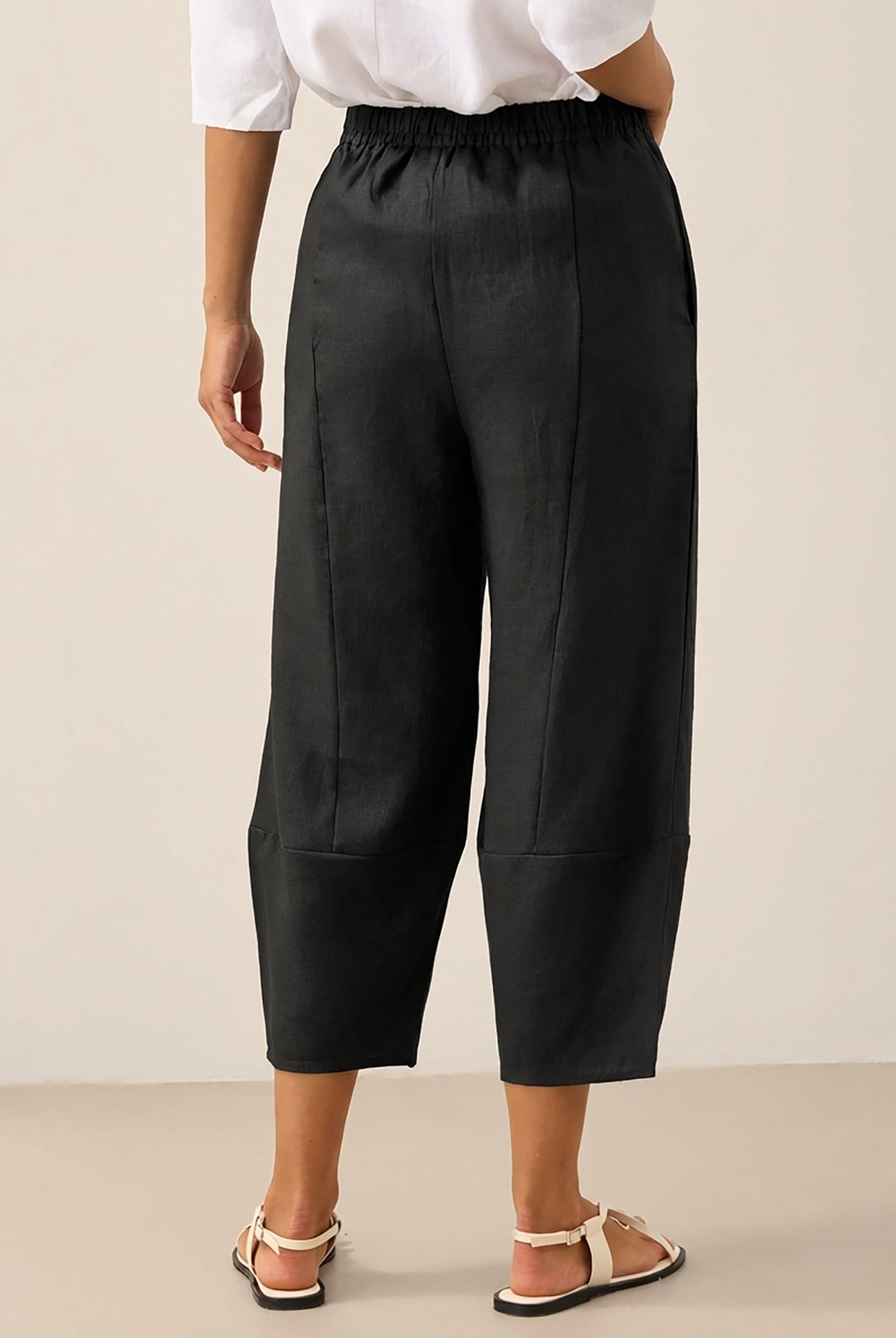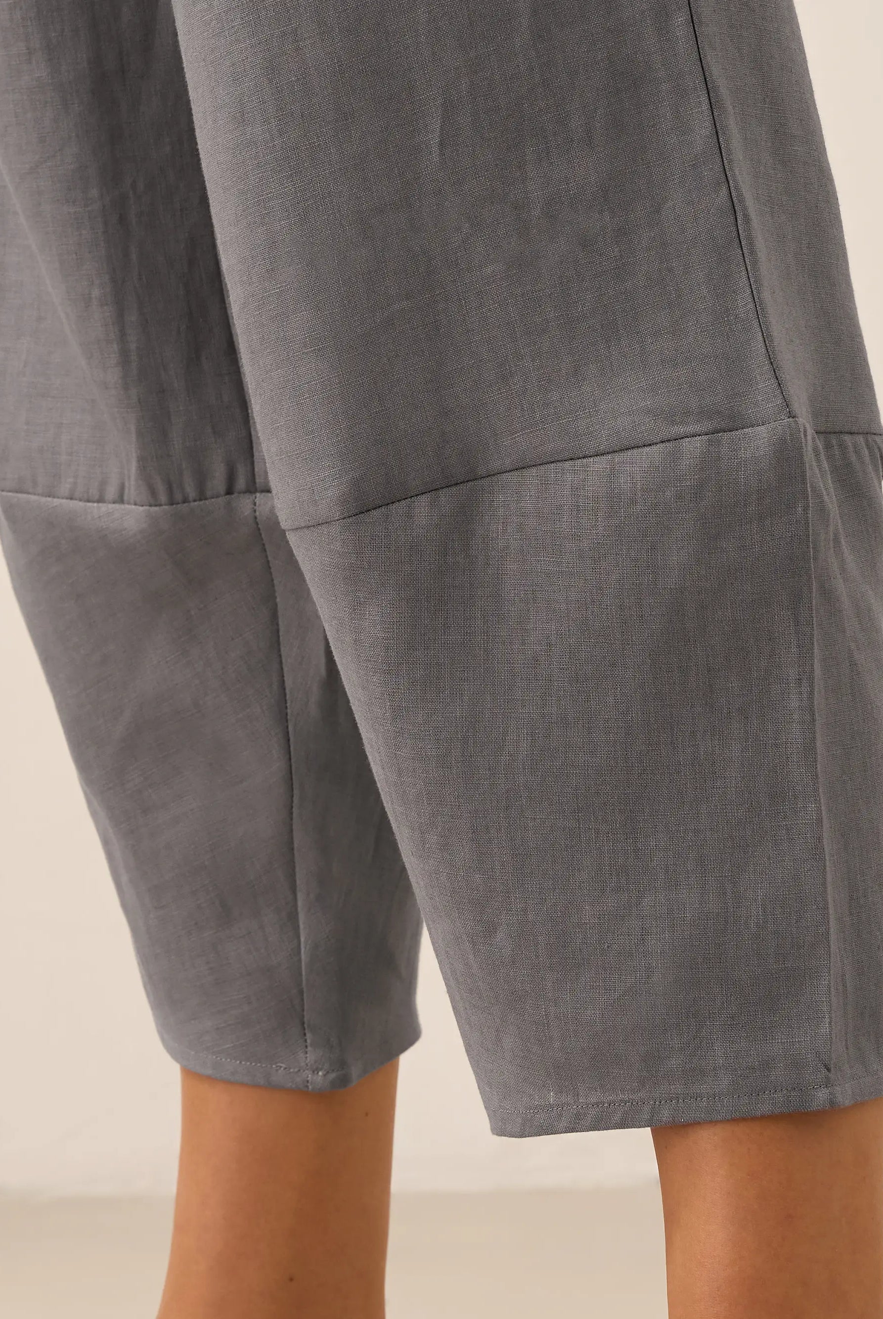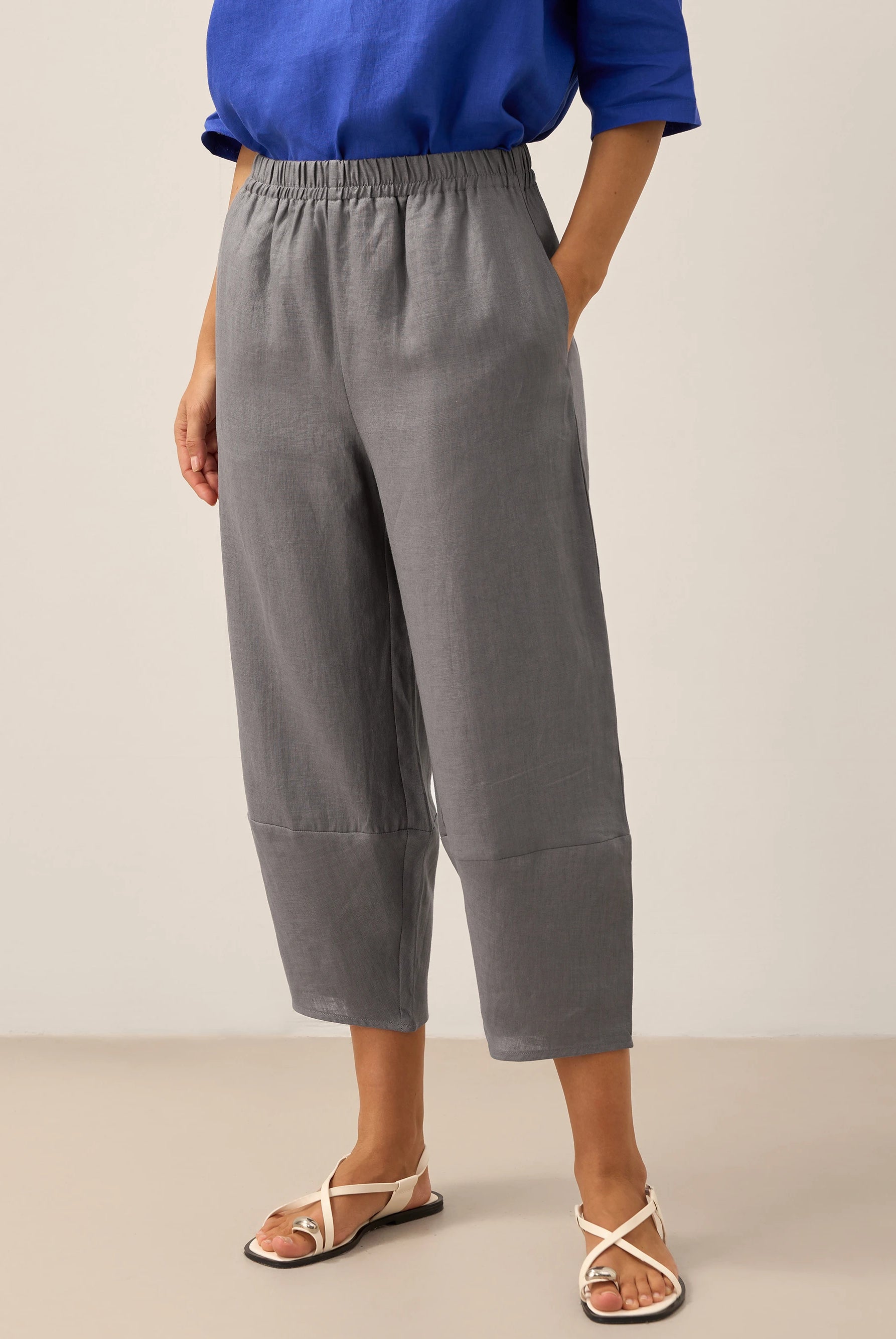 Linen Gingham Checked Round Soft-Fold Collar Top LAURA