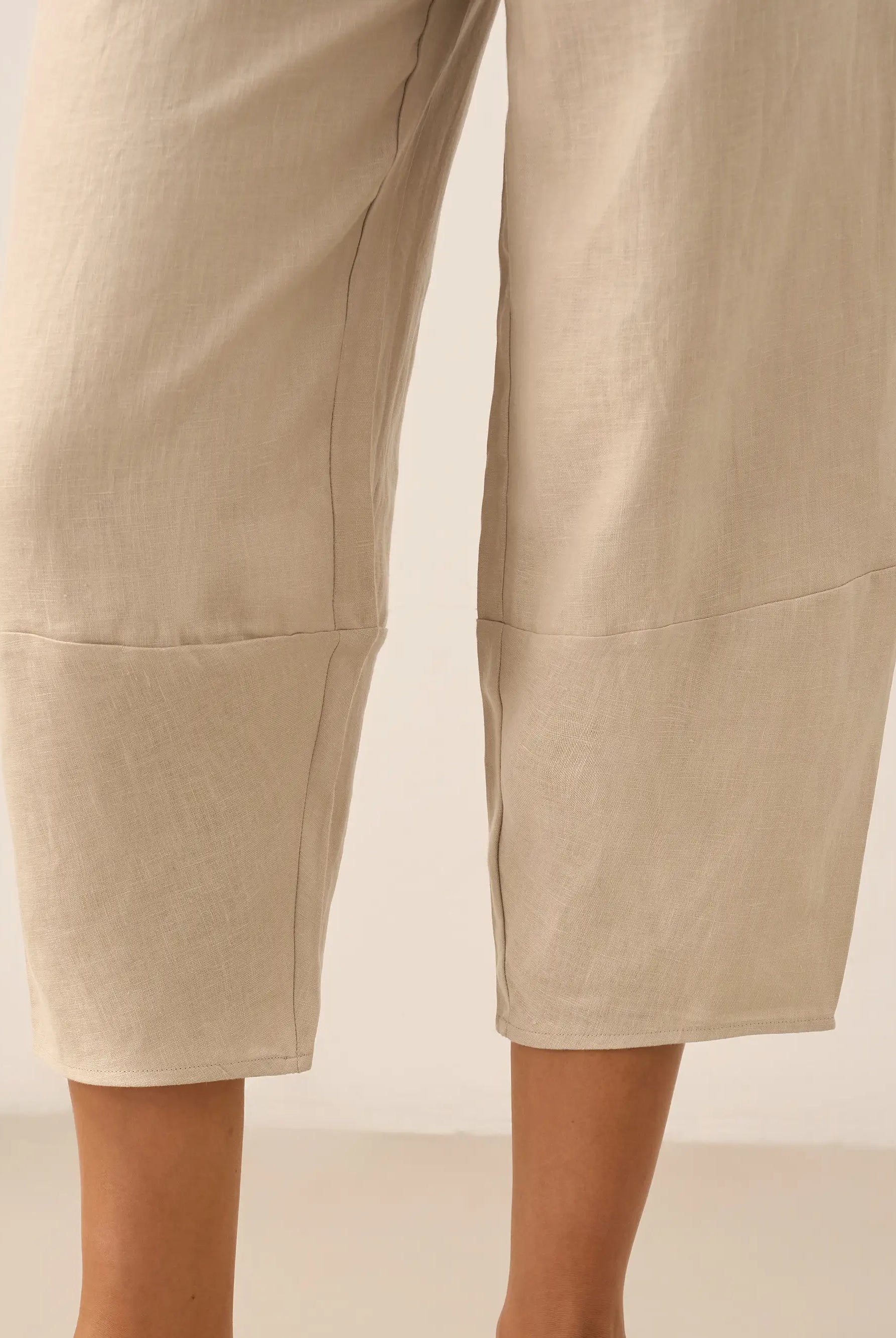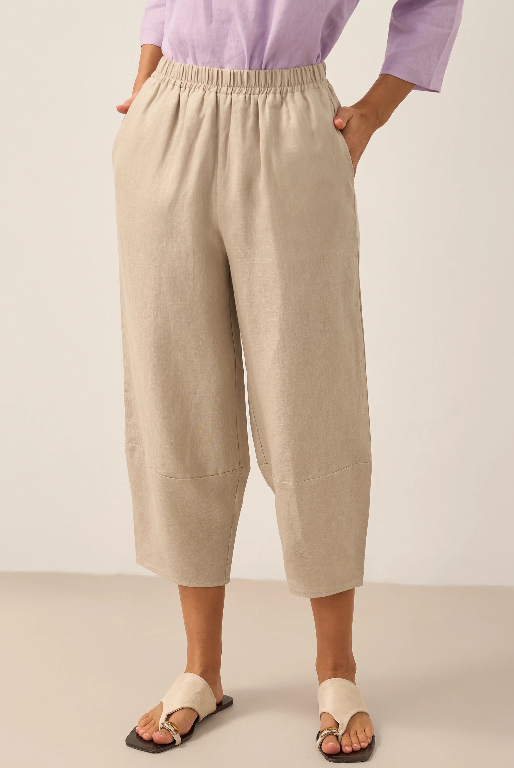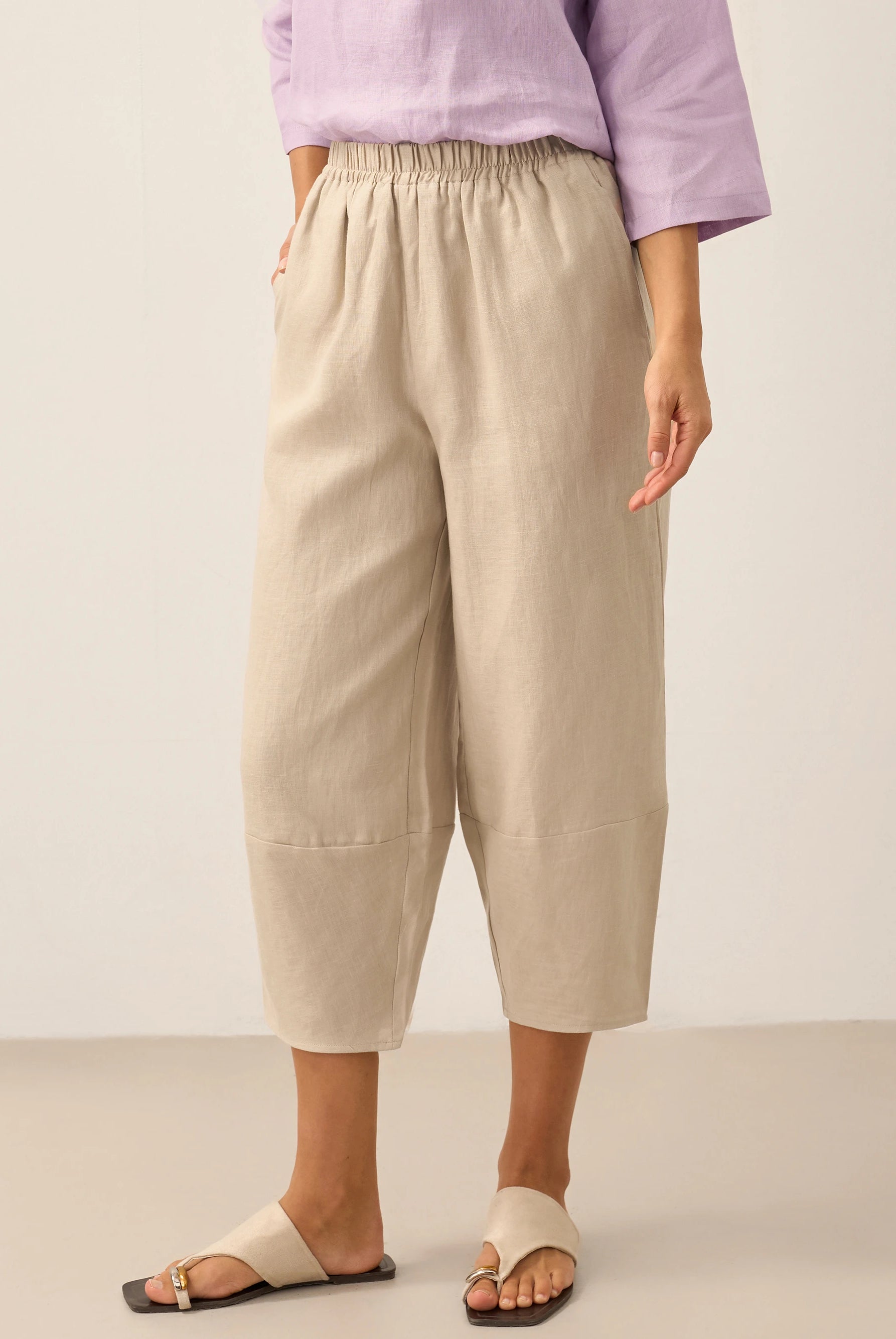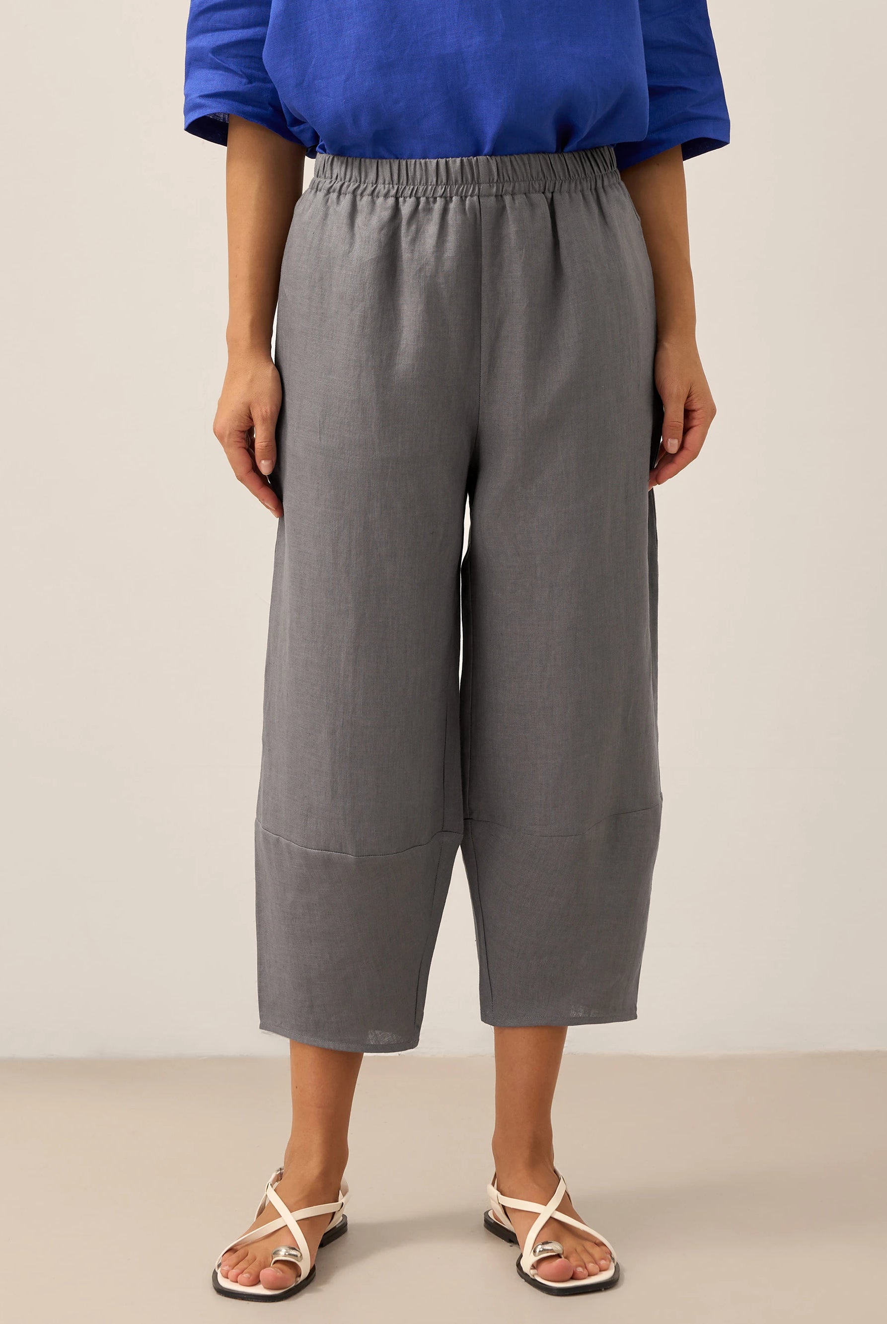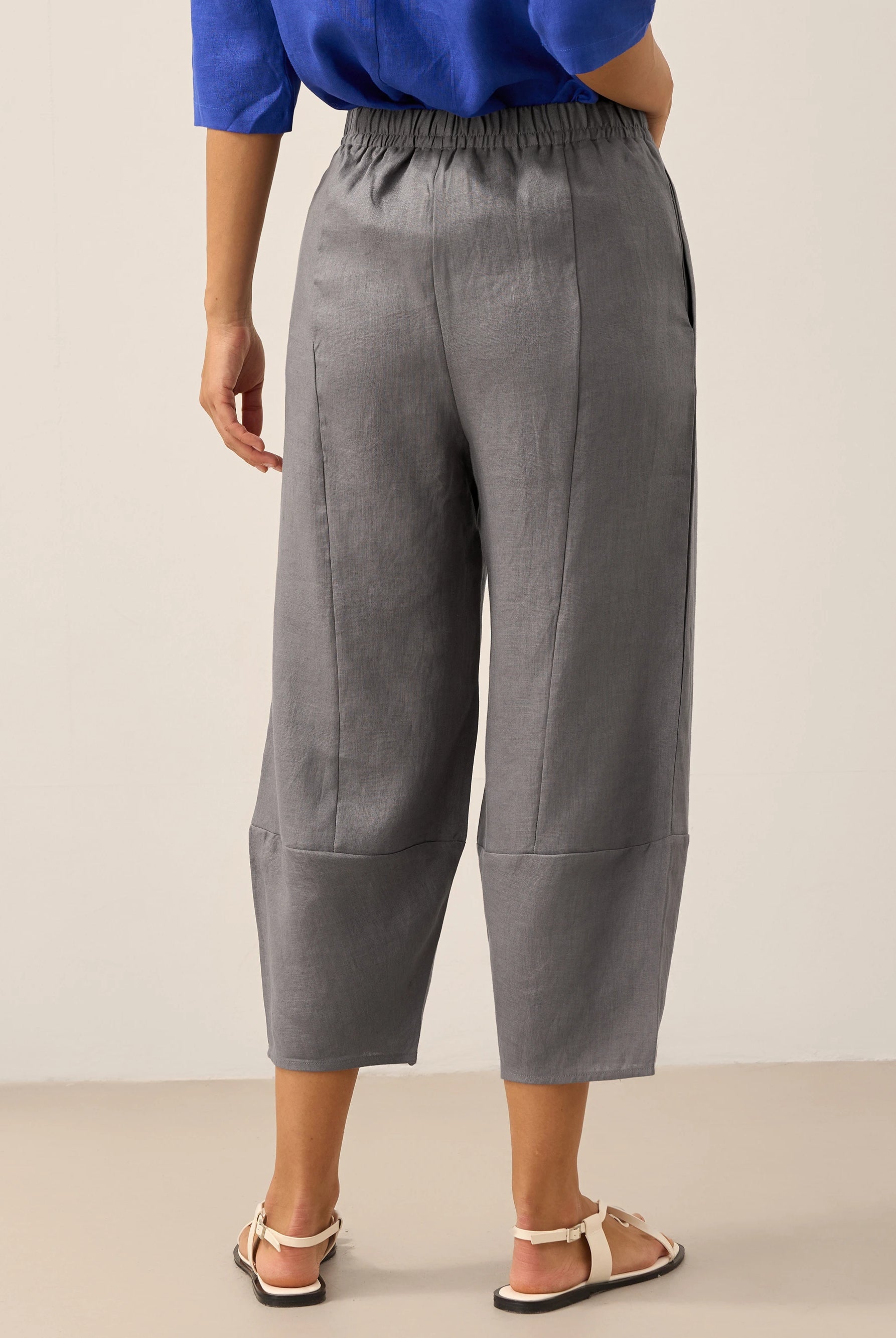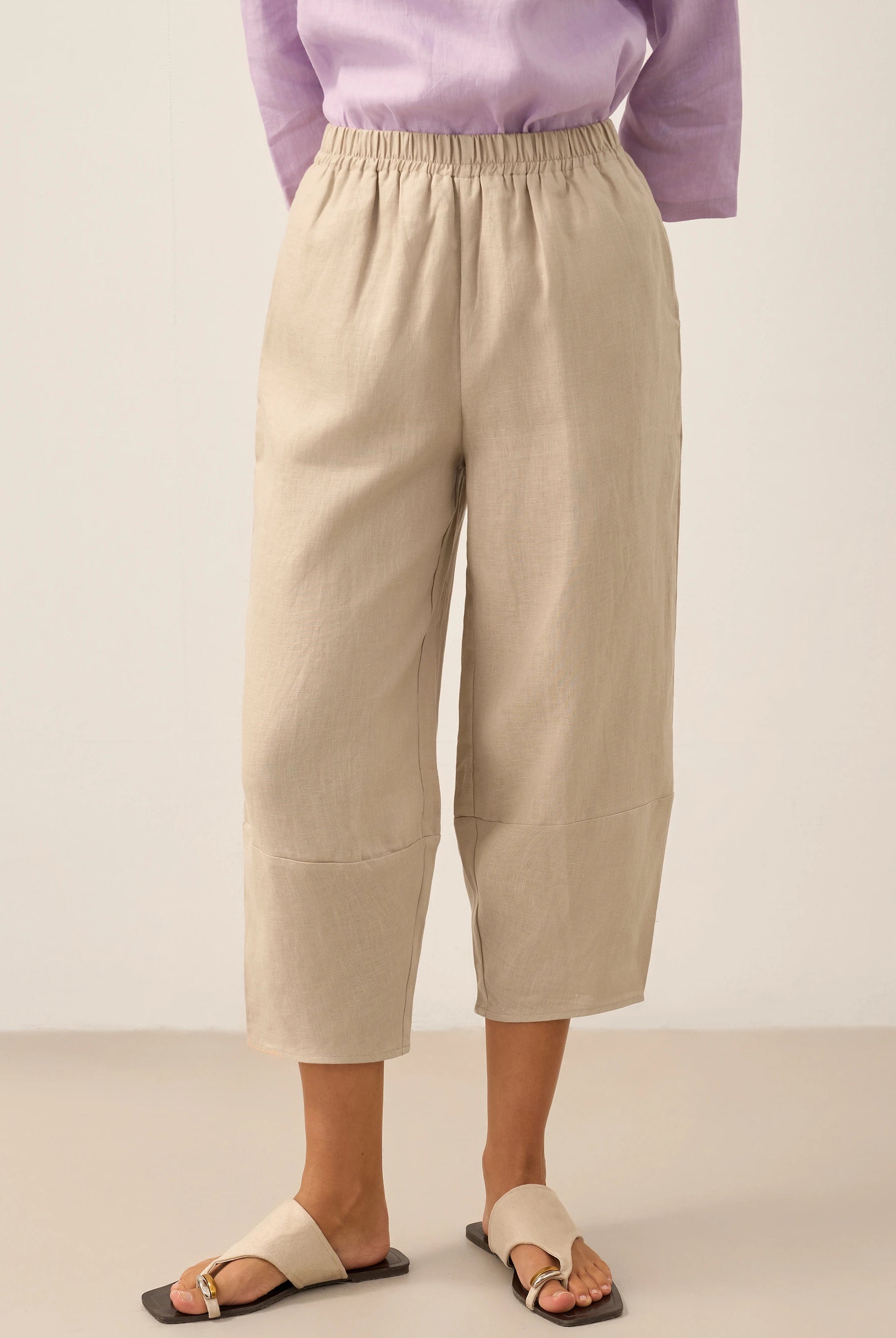 Linen Gingham Checked Round Soft-Fold Collar Top LAURA