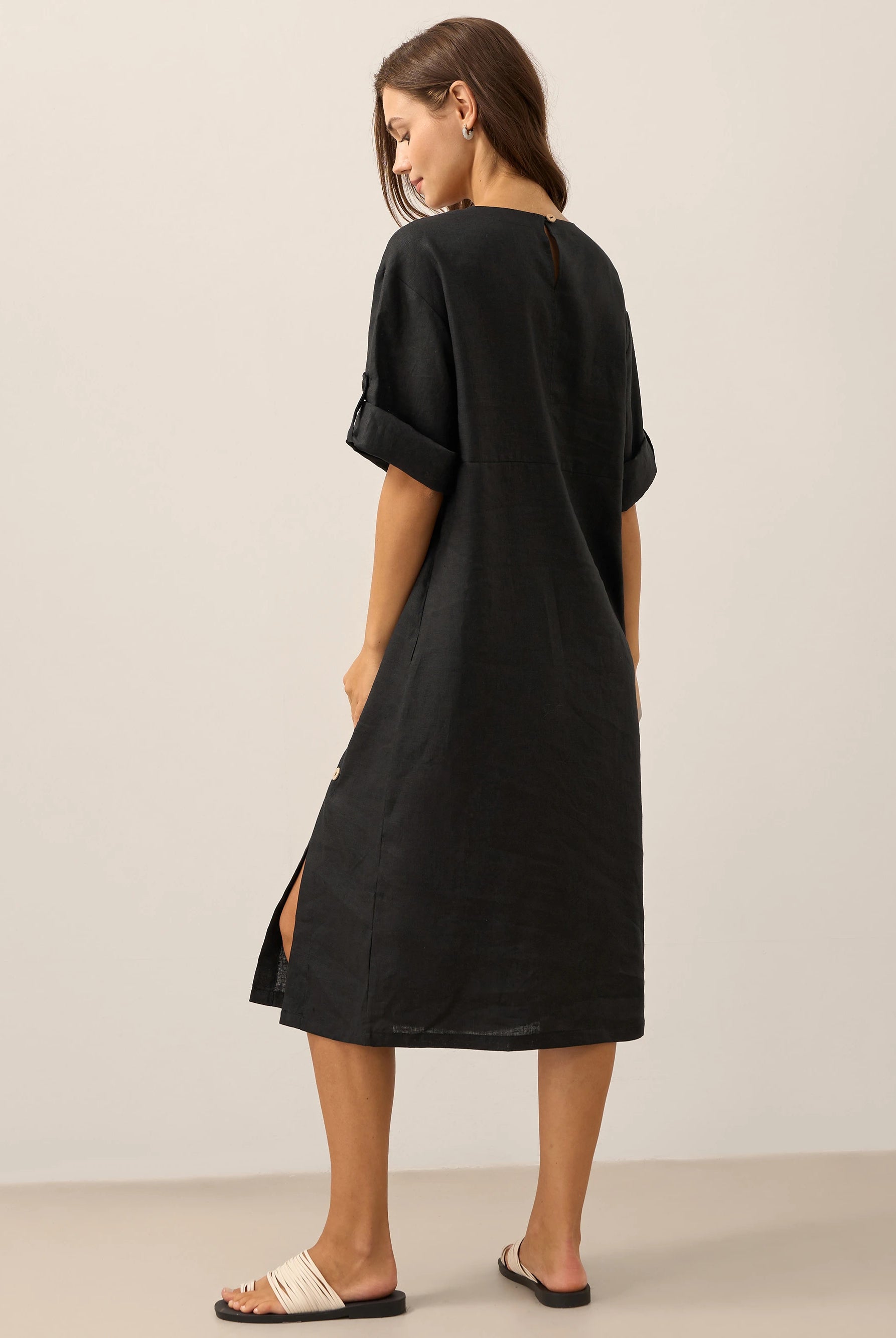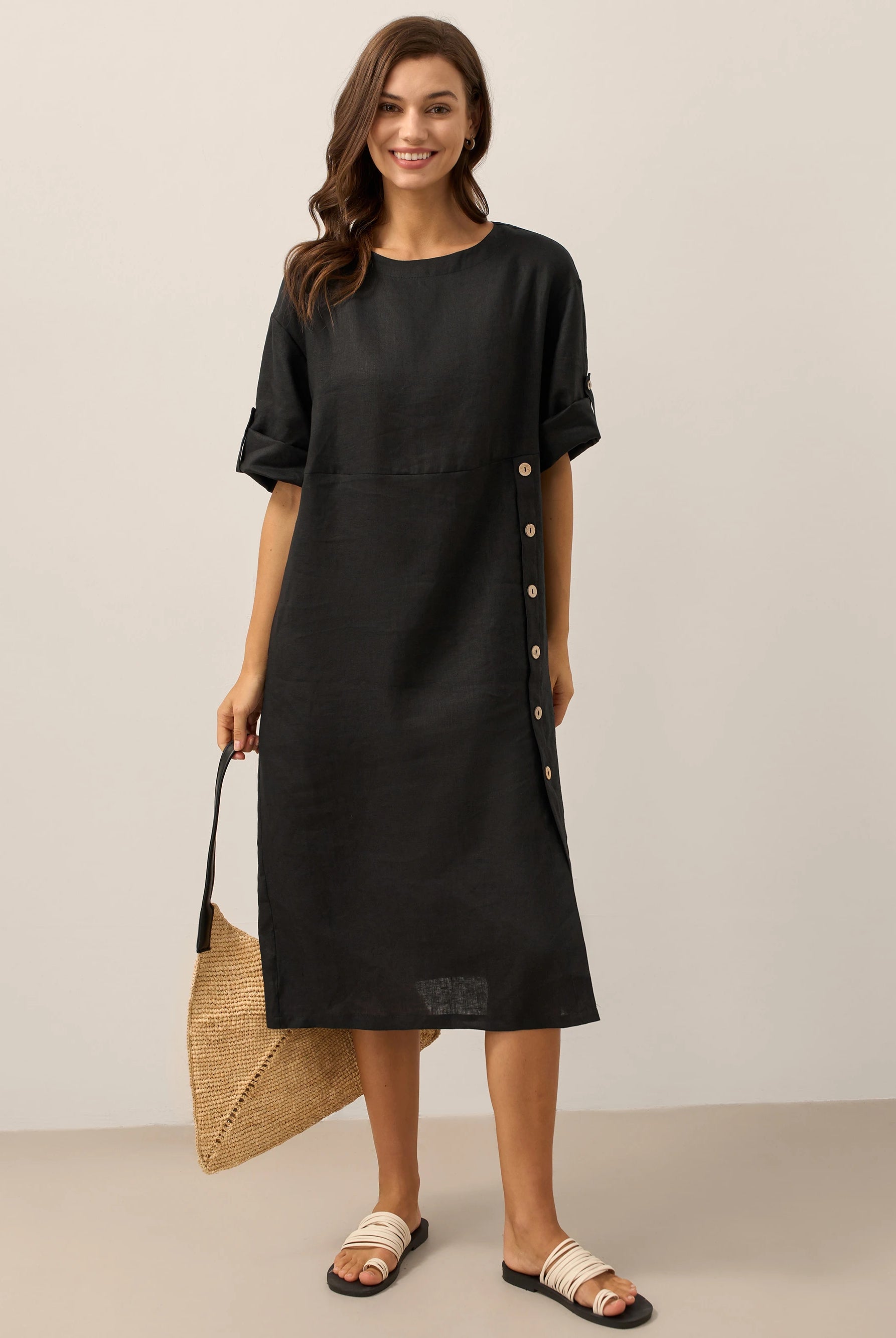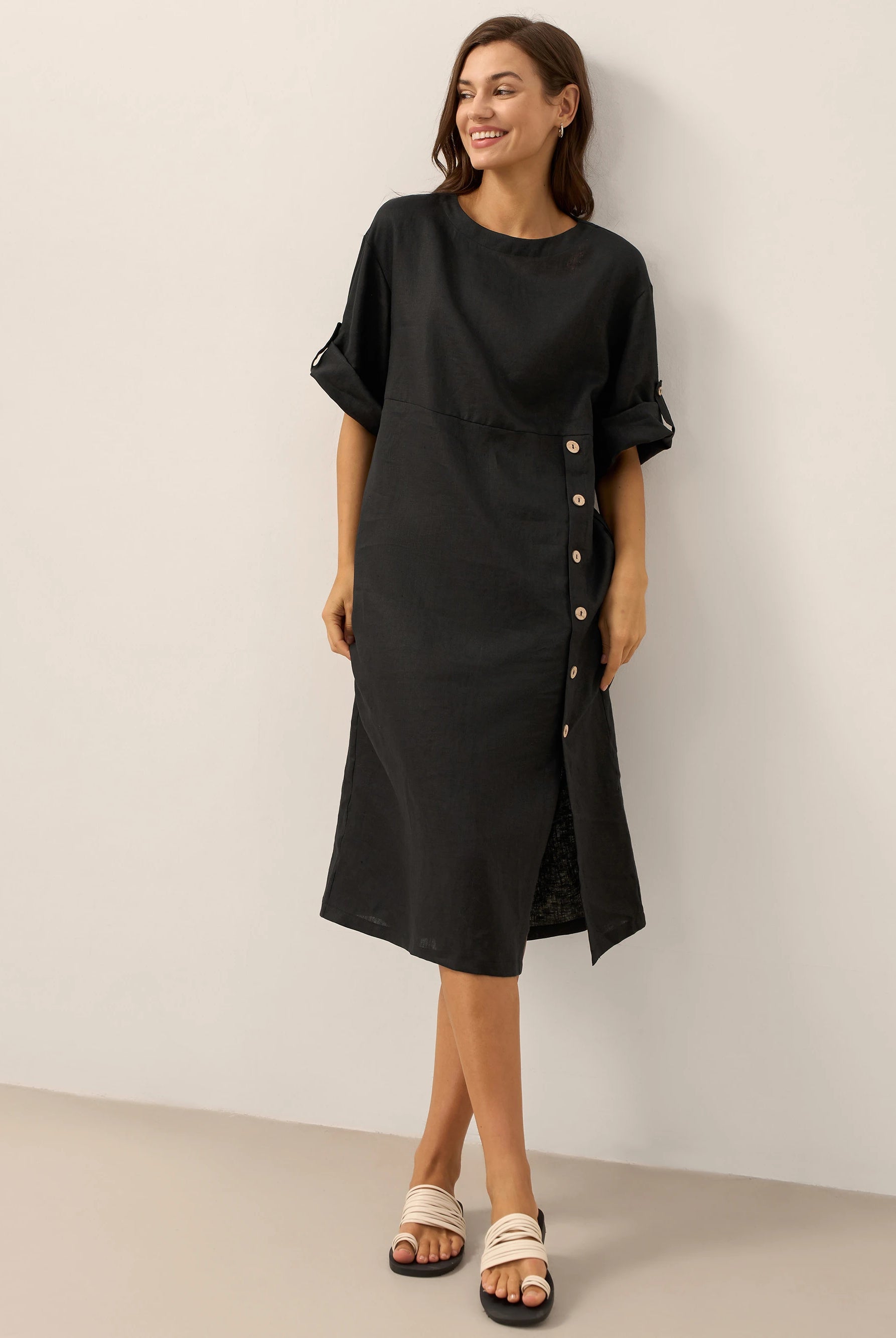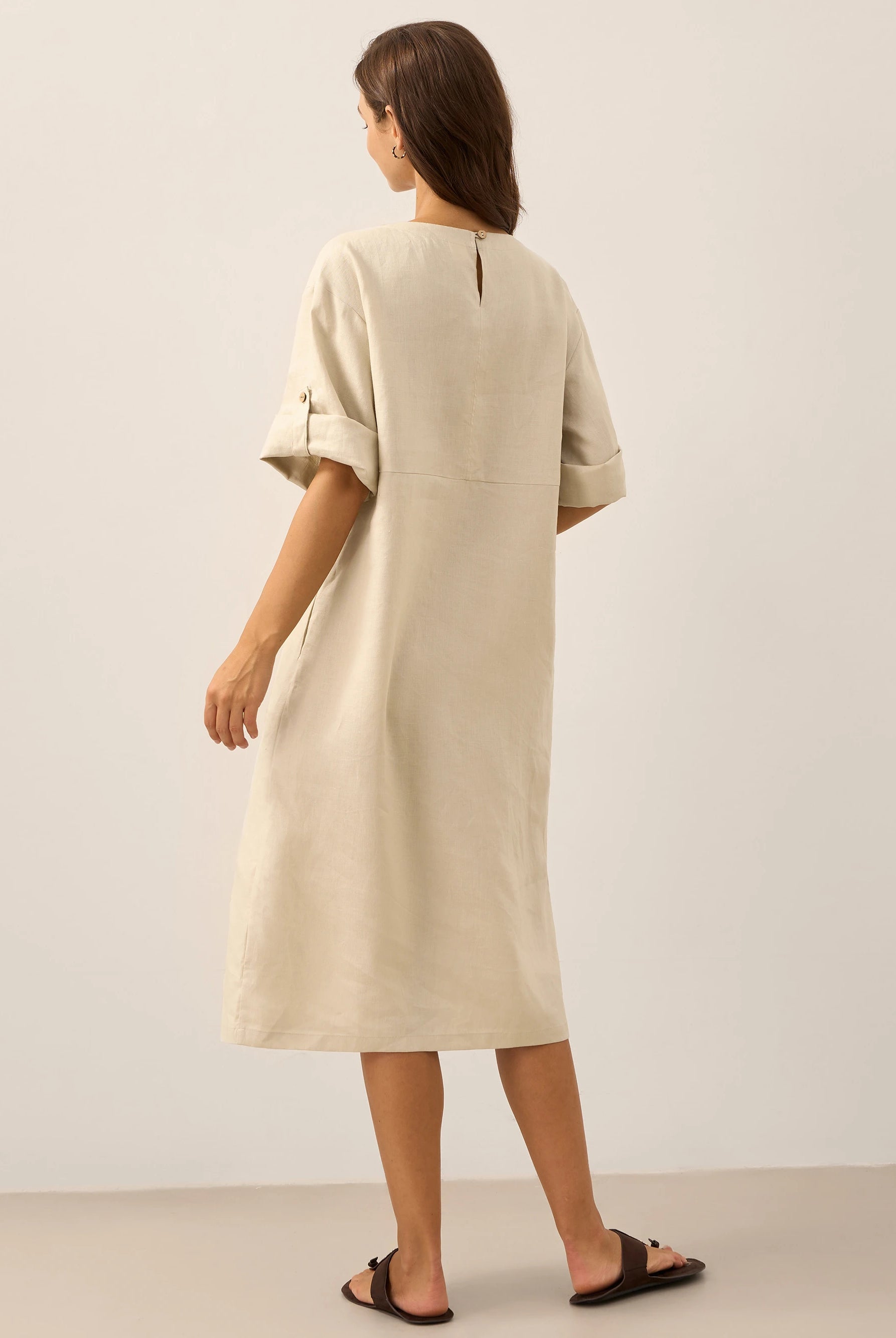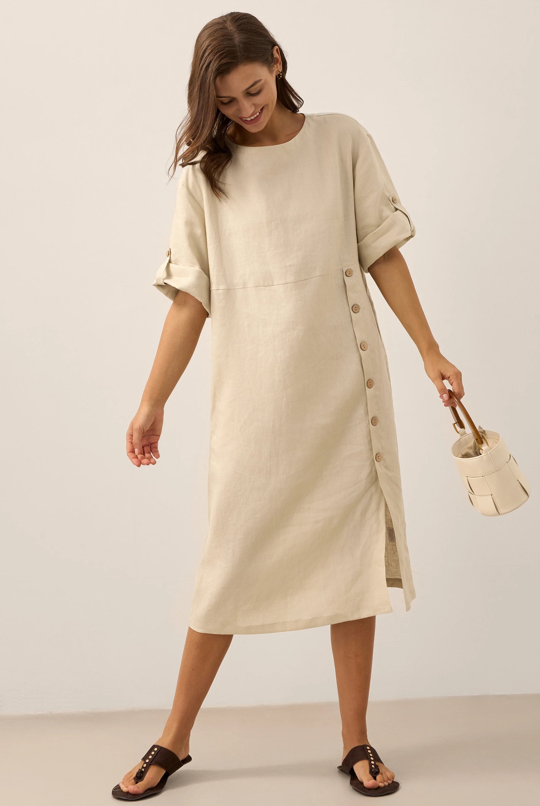 Linen Gingham Checked Round Soft-Fold Collar Top LAURA