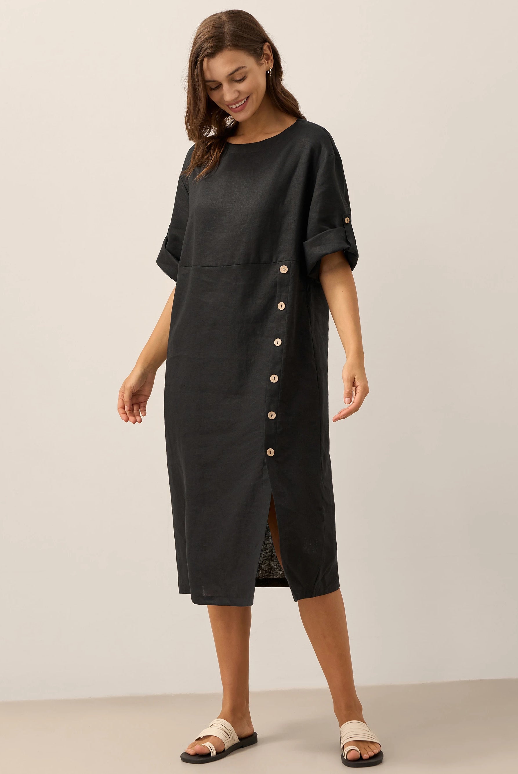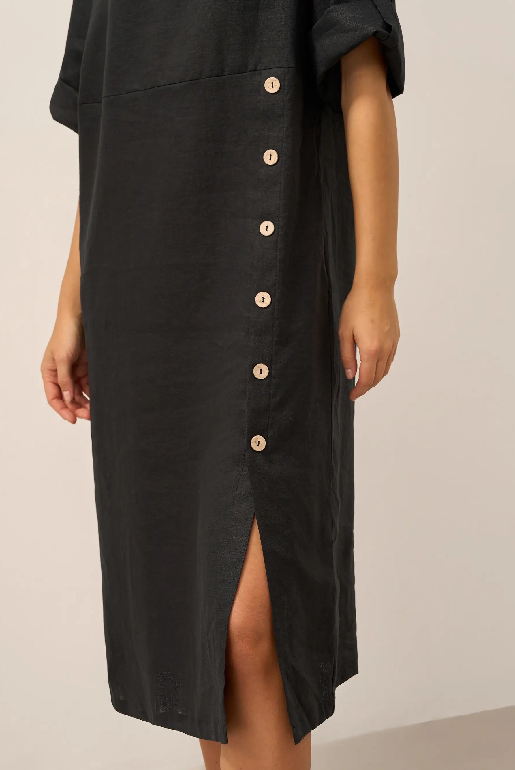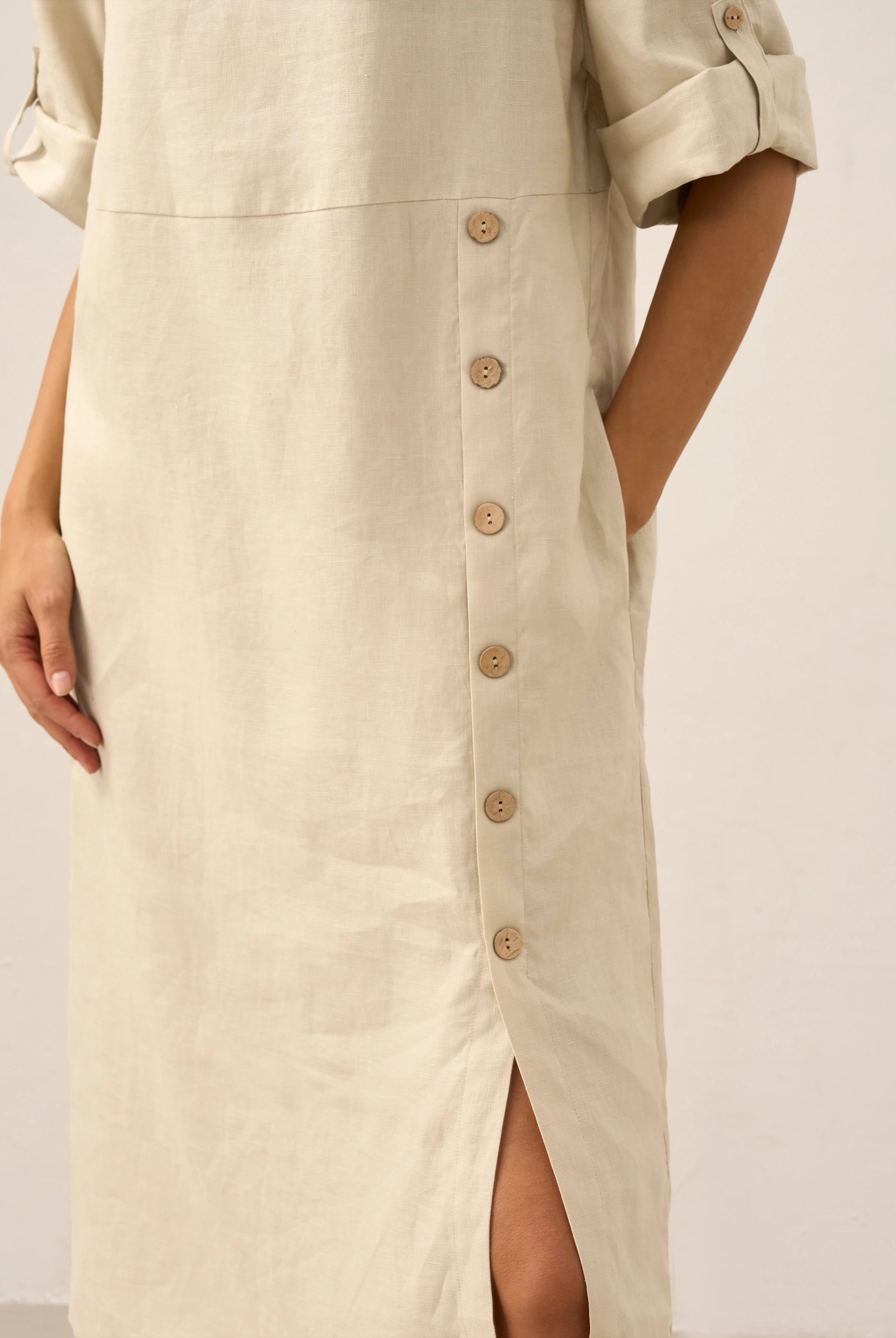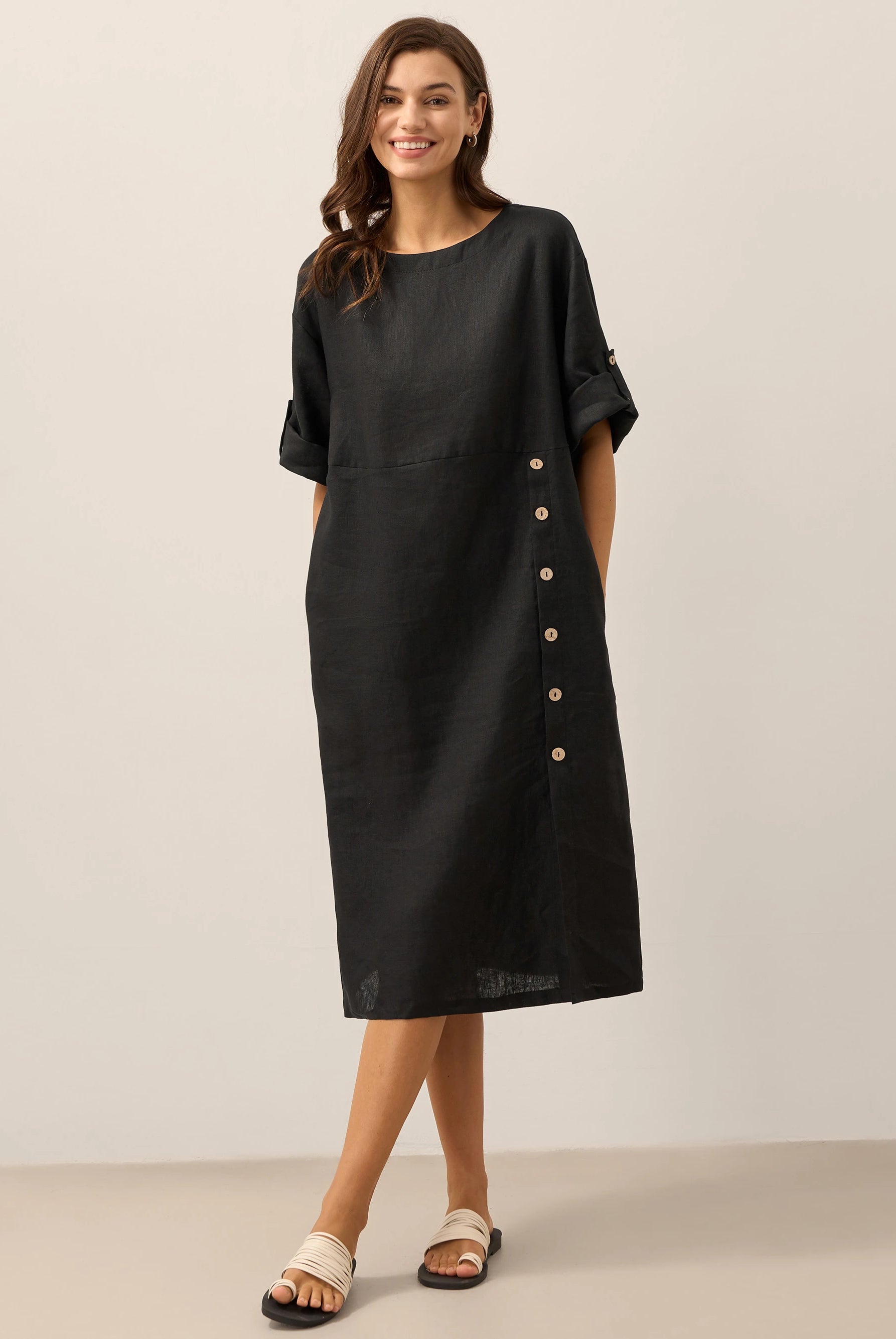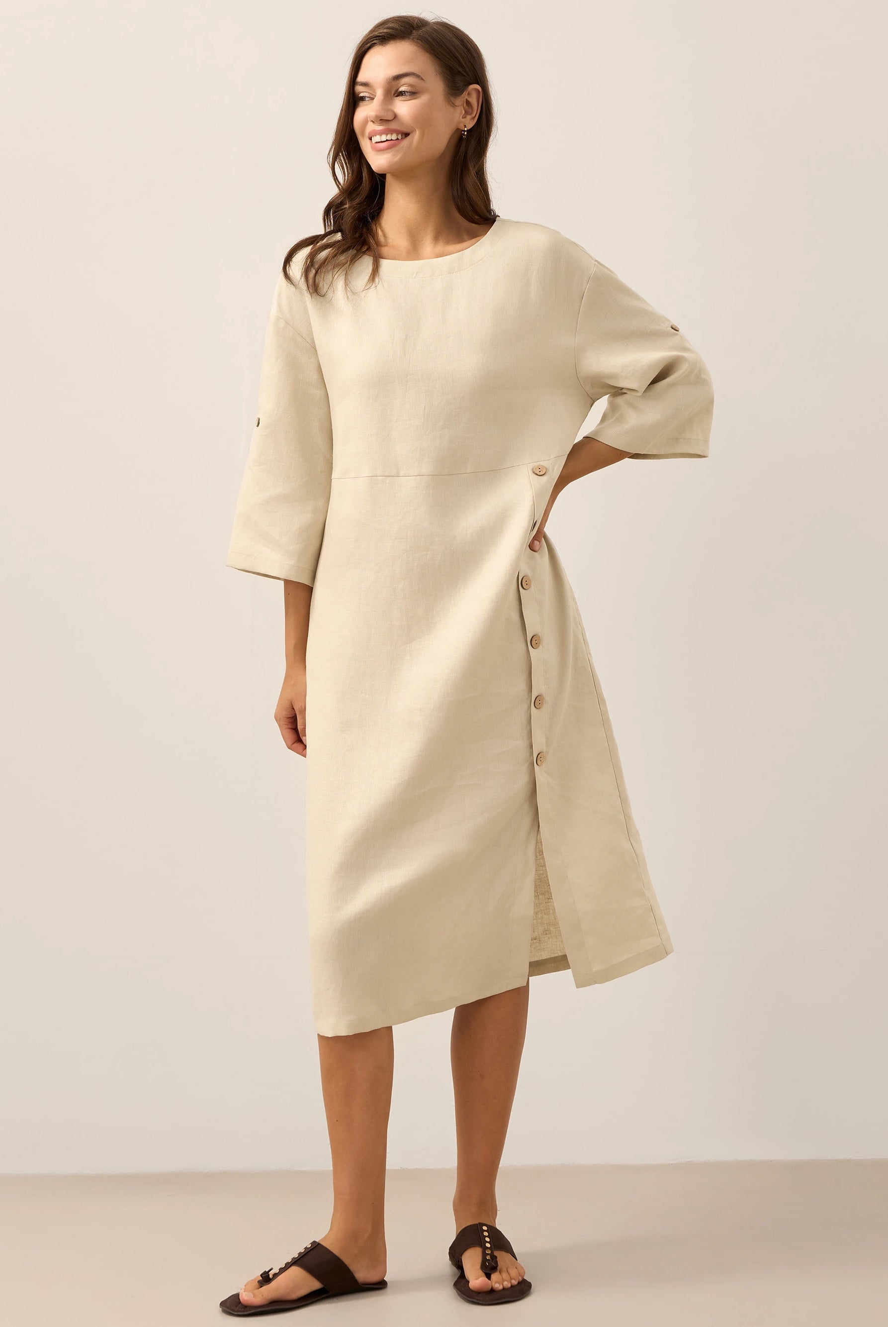 Linen Gingham Checked Round Soft-Fold Collar Top LAURA