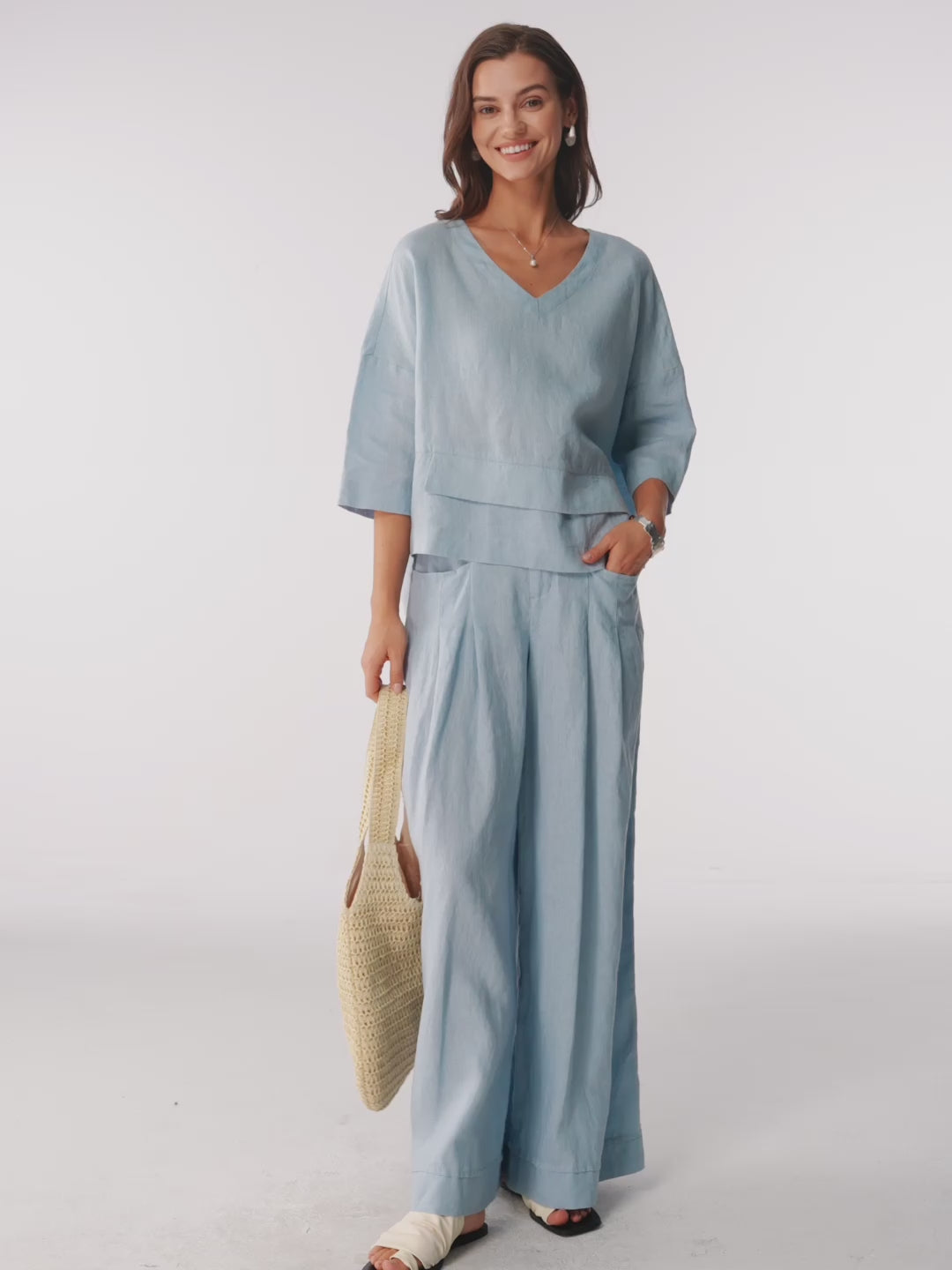 100% Linen Drop Shoulder Asymmetric Layered Hem Overtop VIOLA