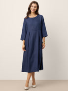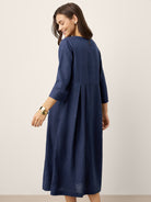 100% Linen Inverted Pleat Waist Button Midi Dress IMARA