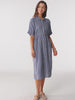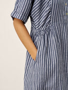 100% Linen Striped Buttoned Front Short Sleeve Midi Shirt Dress CASSANDRA
