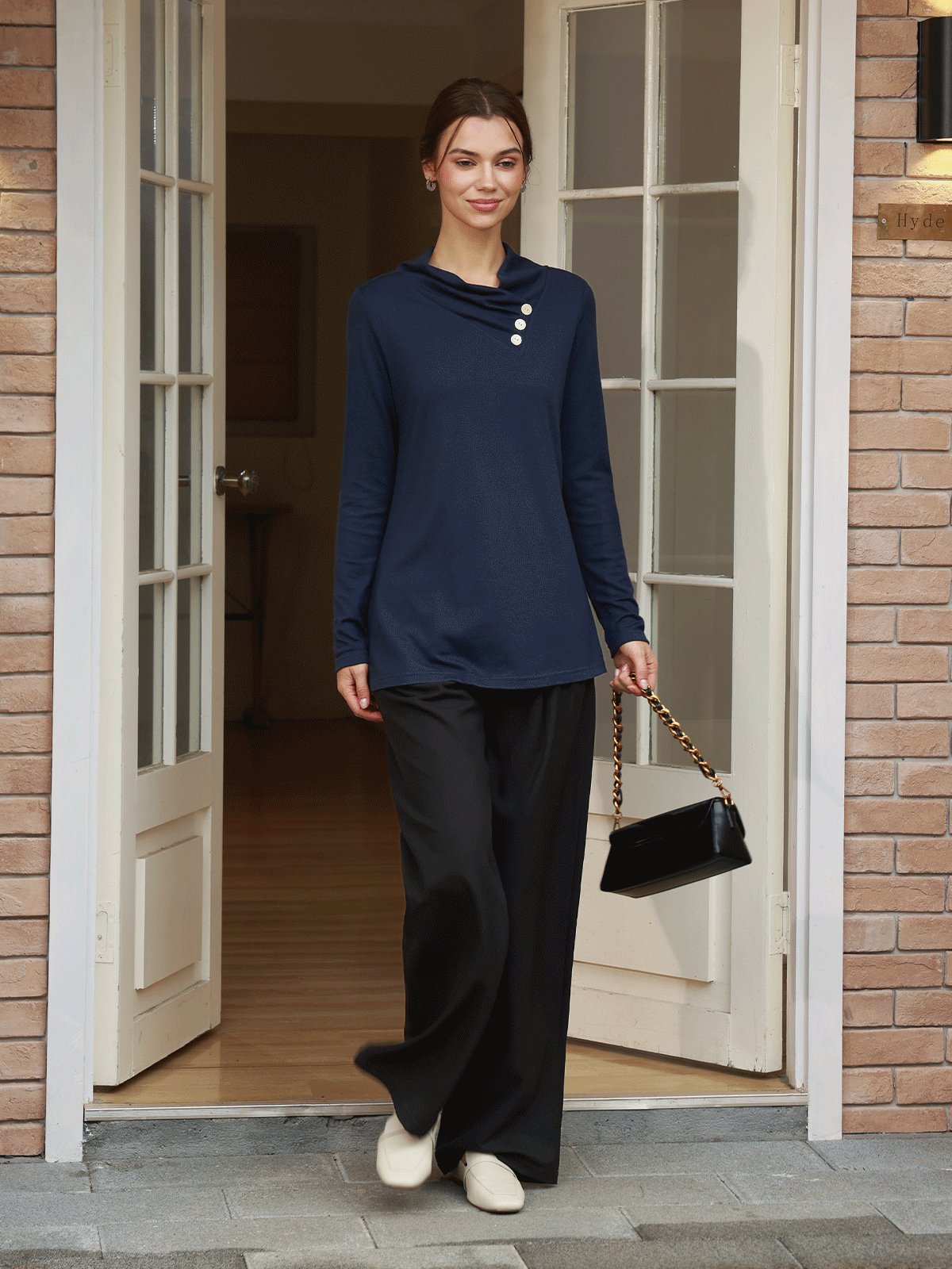 Cashmere Asymmetric Cowl Neck Stretch Top TATIANA
