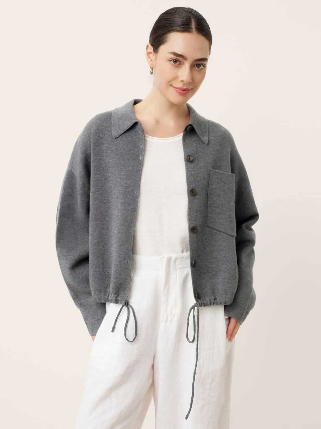 Wool Drawstring Hem Shirt Jacket SINEAD