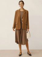 A tailored Tencel linen blazer in Cocoa Brown, blending relaxed sophistication with functional details like adjustable closures and versatile pockets.