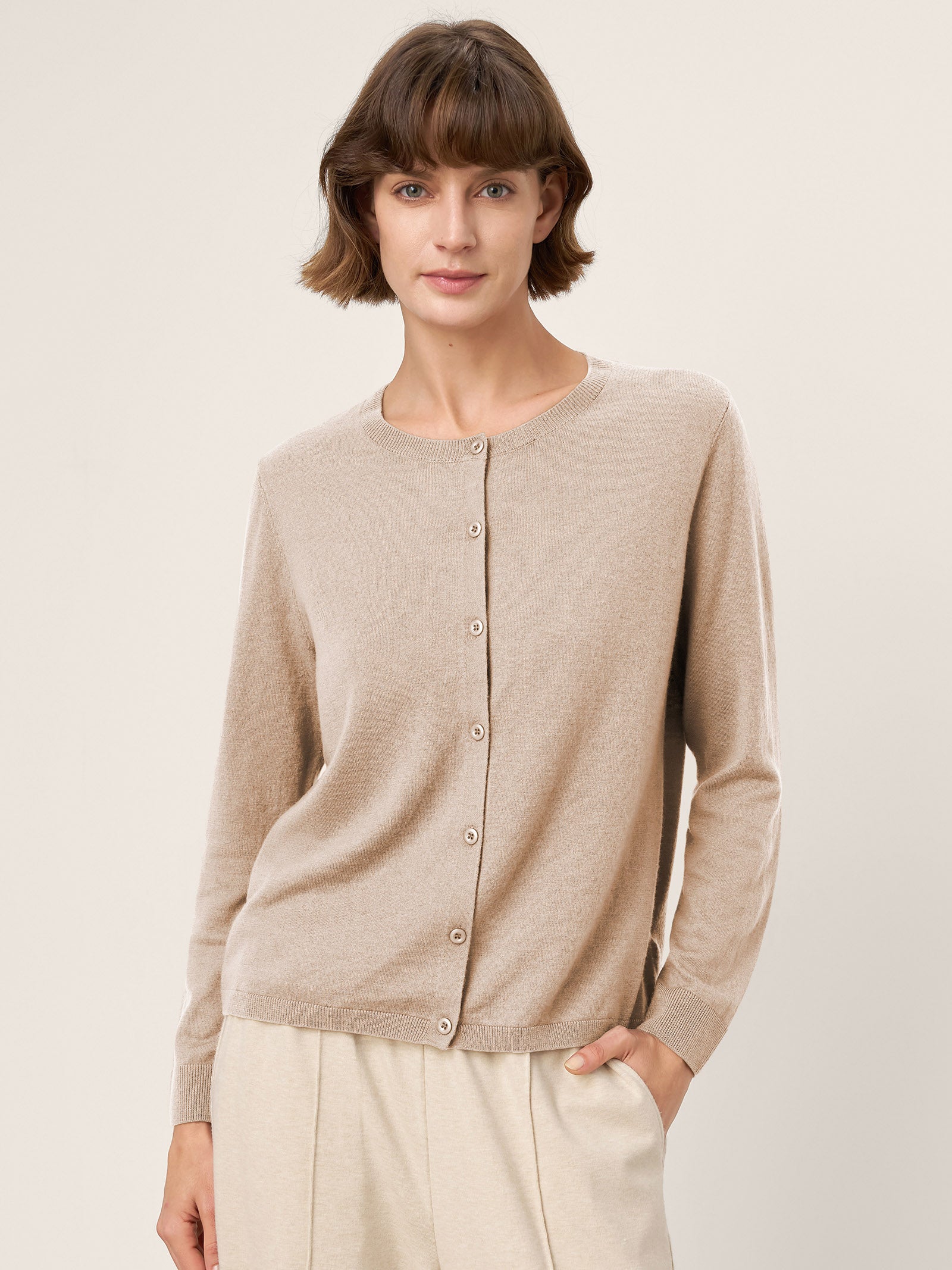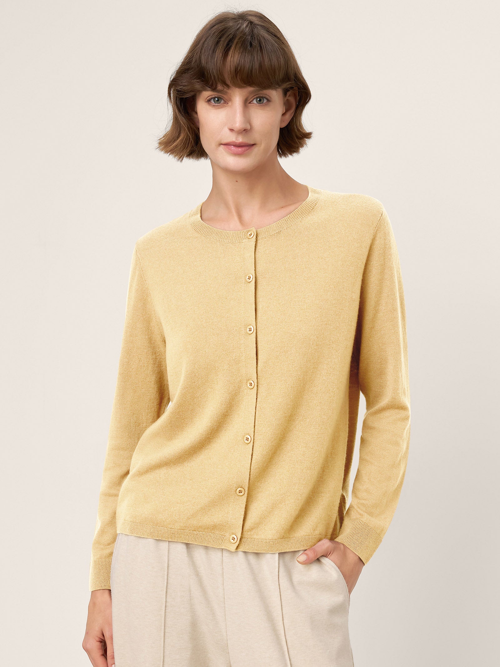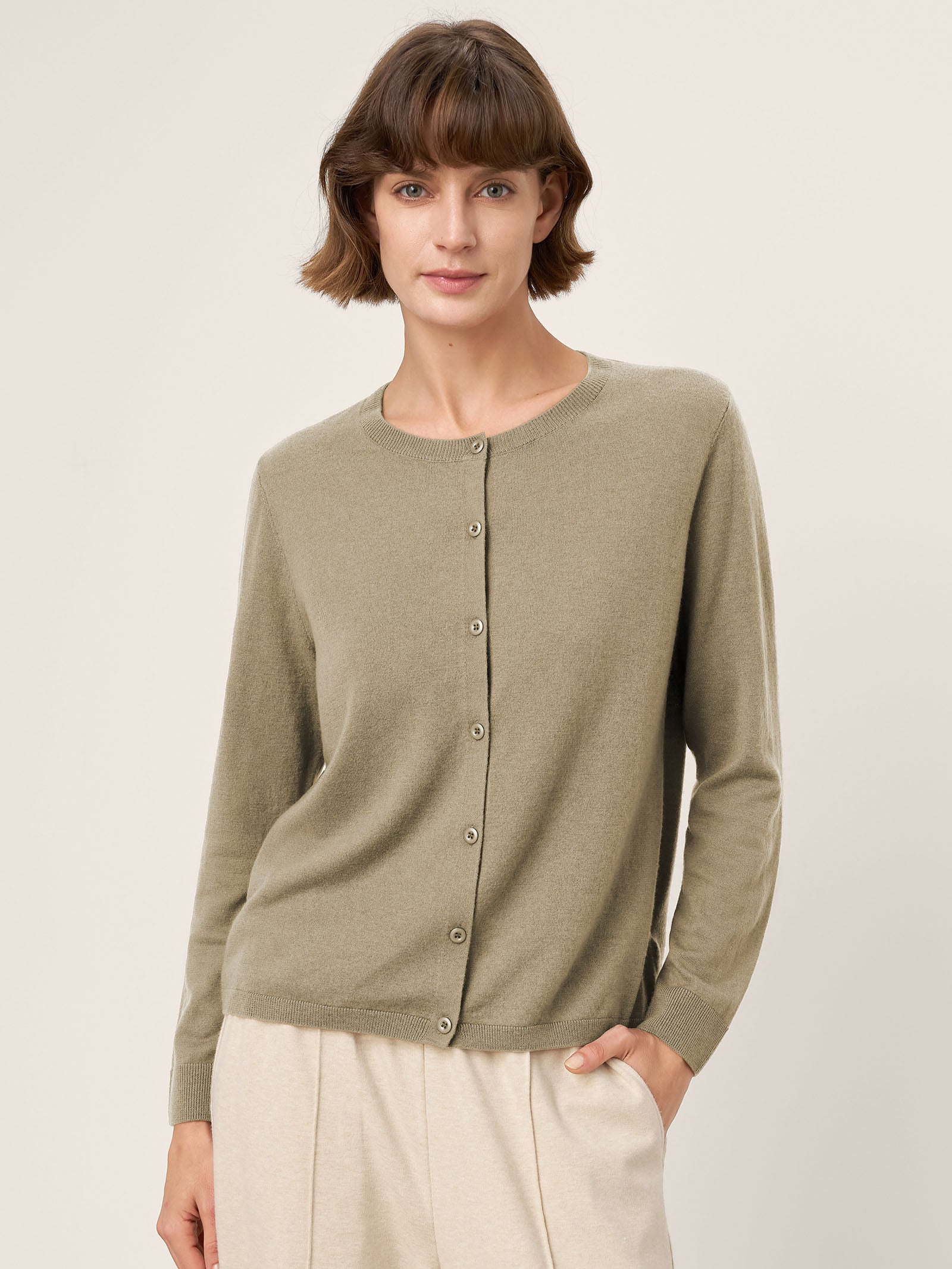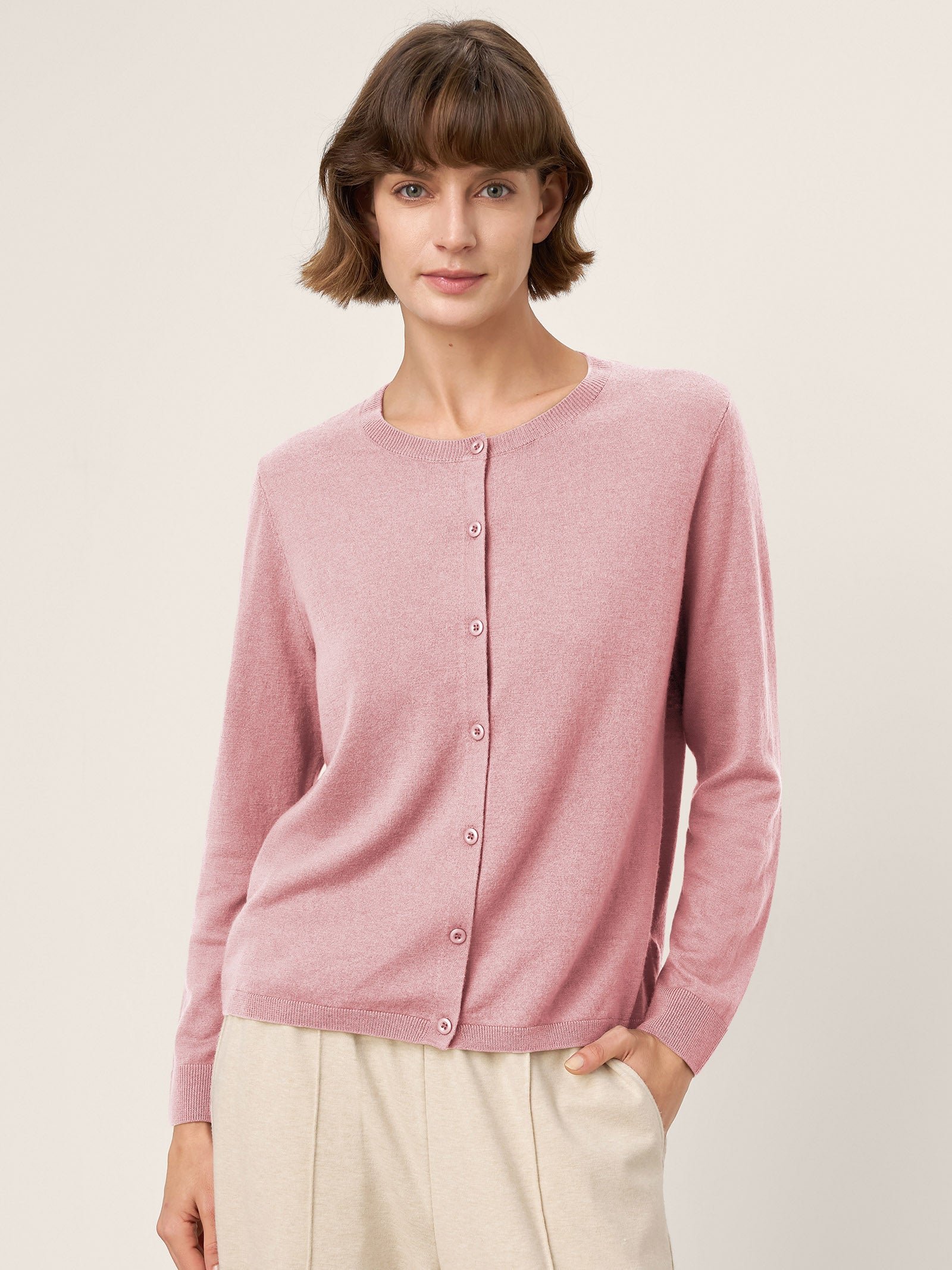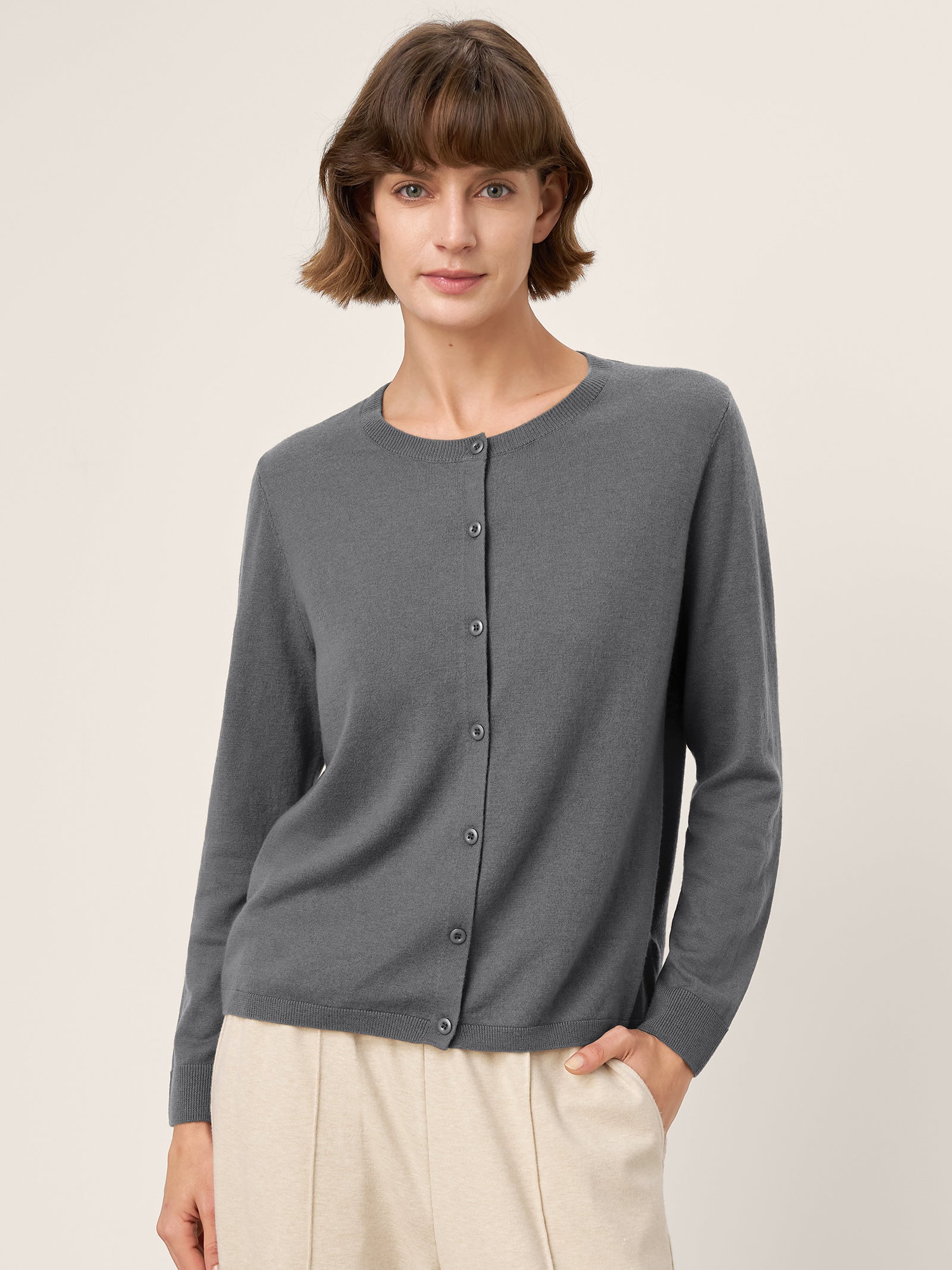 100% Extra-Fine Merino Wool Buttoned Knit Cardigan CAYLA