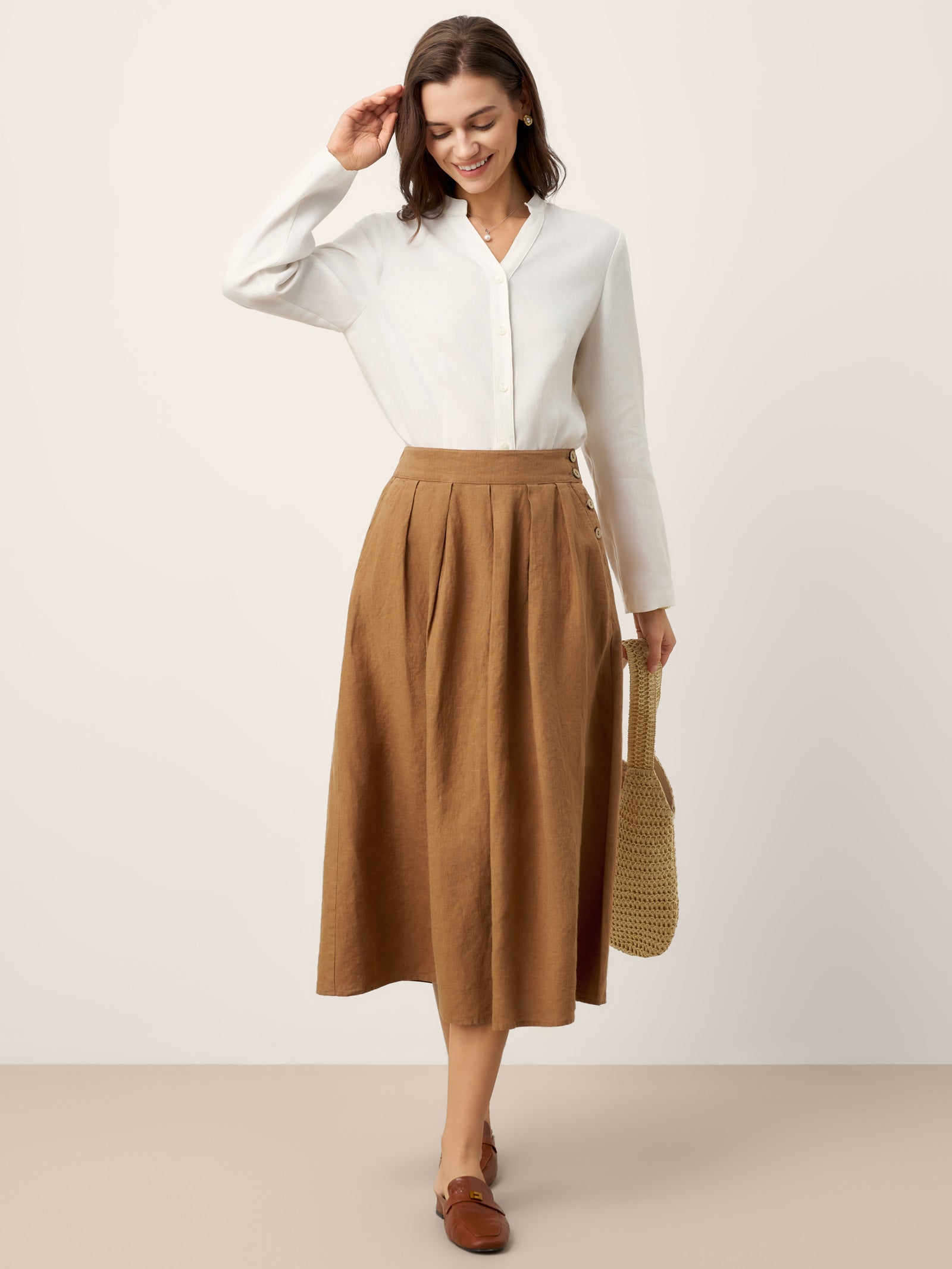 - Side Coconut Button Accent: Four tonal coconut buttons at the side waist form a functional placket for easy wear, while adding artisanal detail and visual interest.