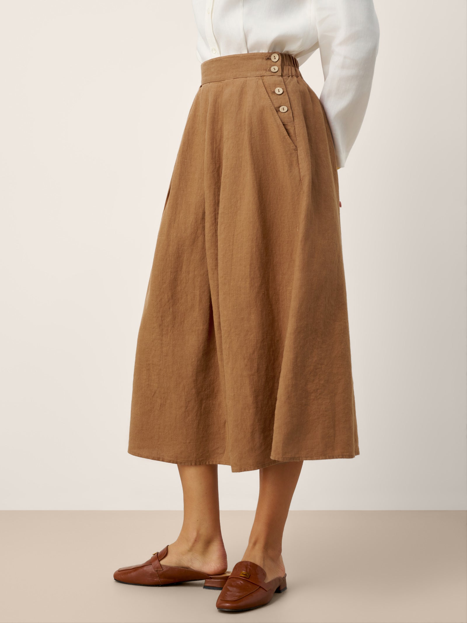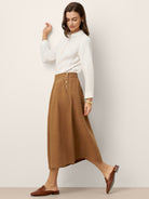 - Relaxed Slant Pockets: Angled side pockets offer practical storage while reinforcing the skirt’s effortless, everyday wearability.
