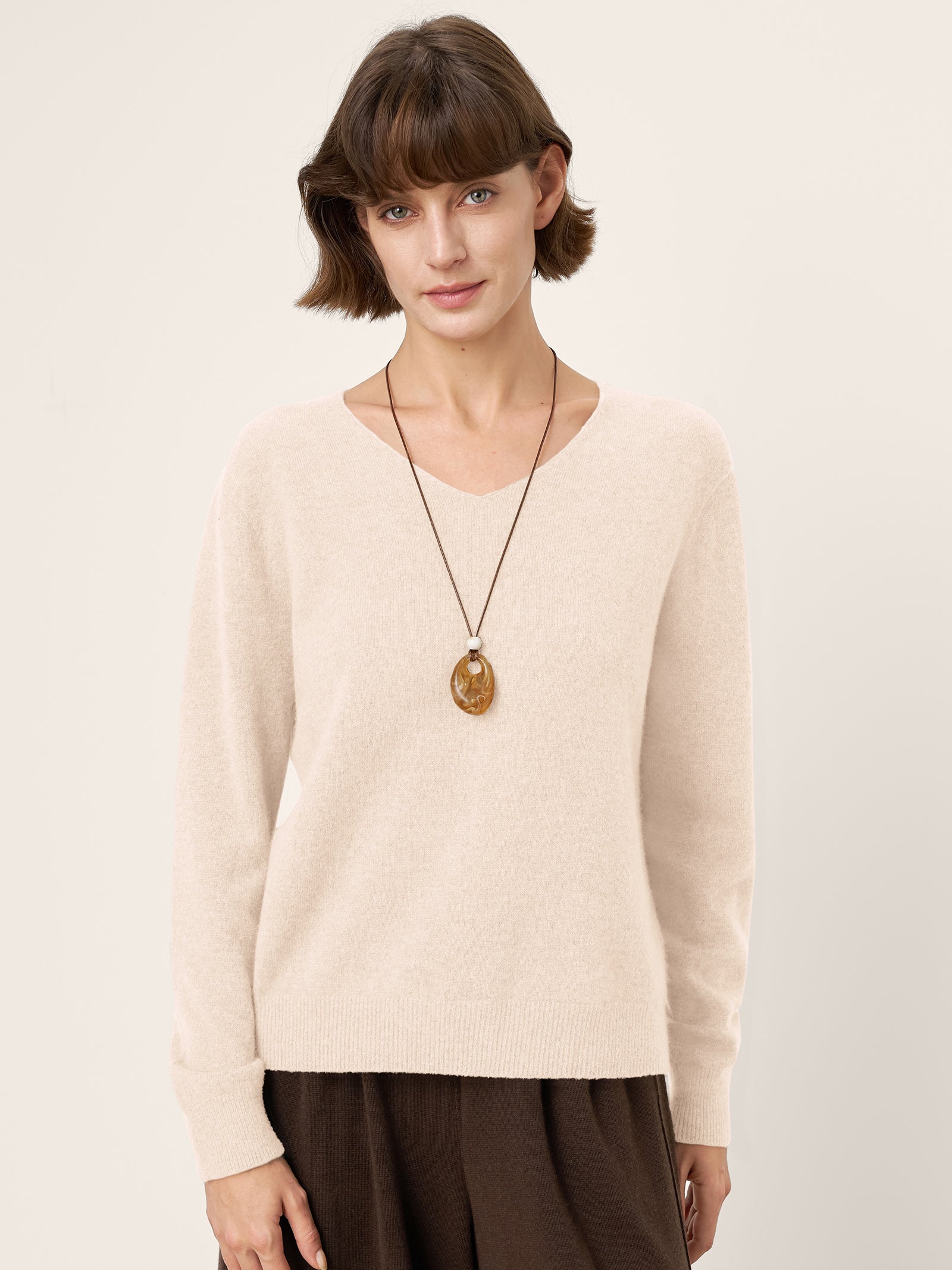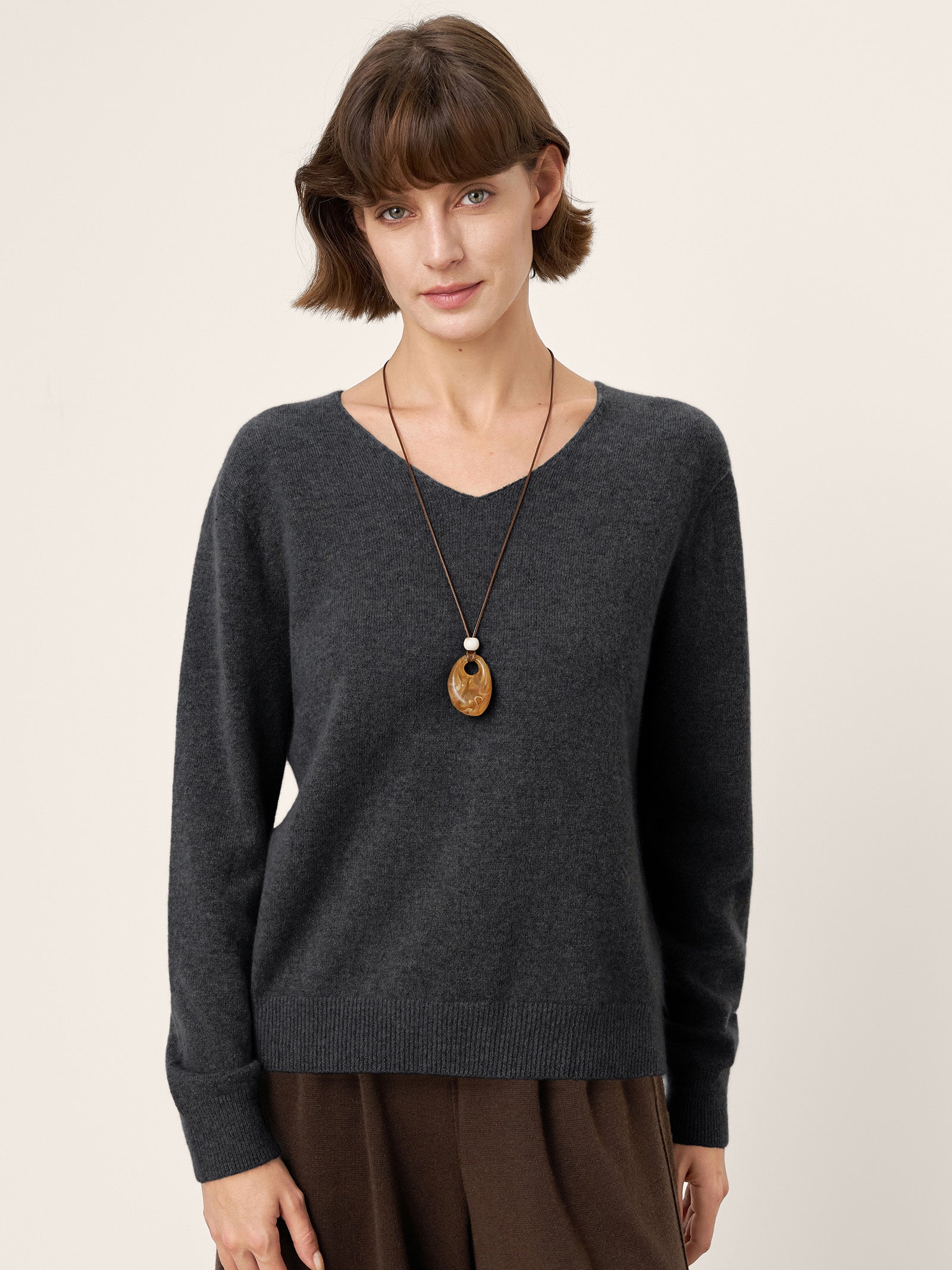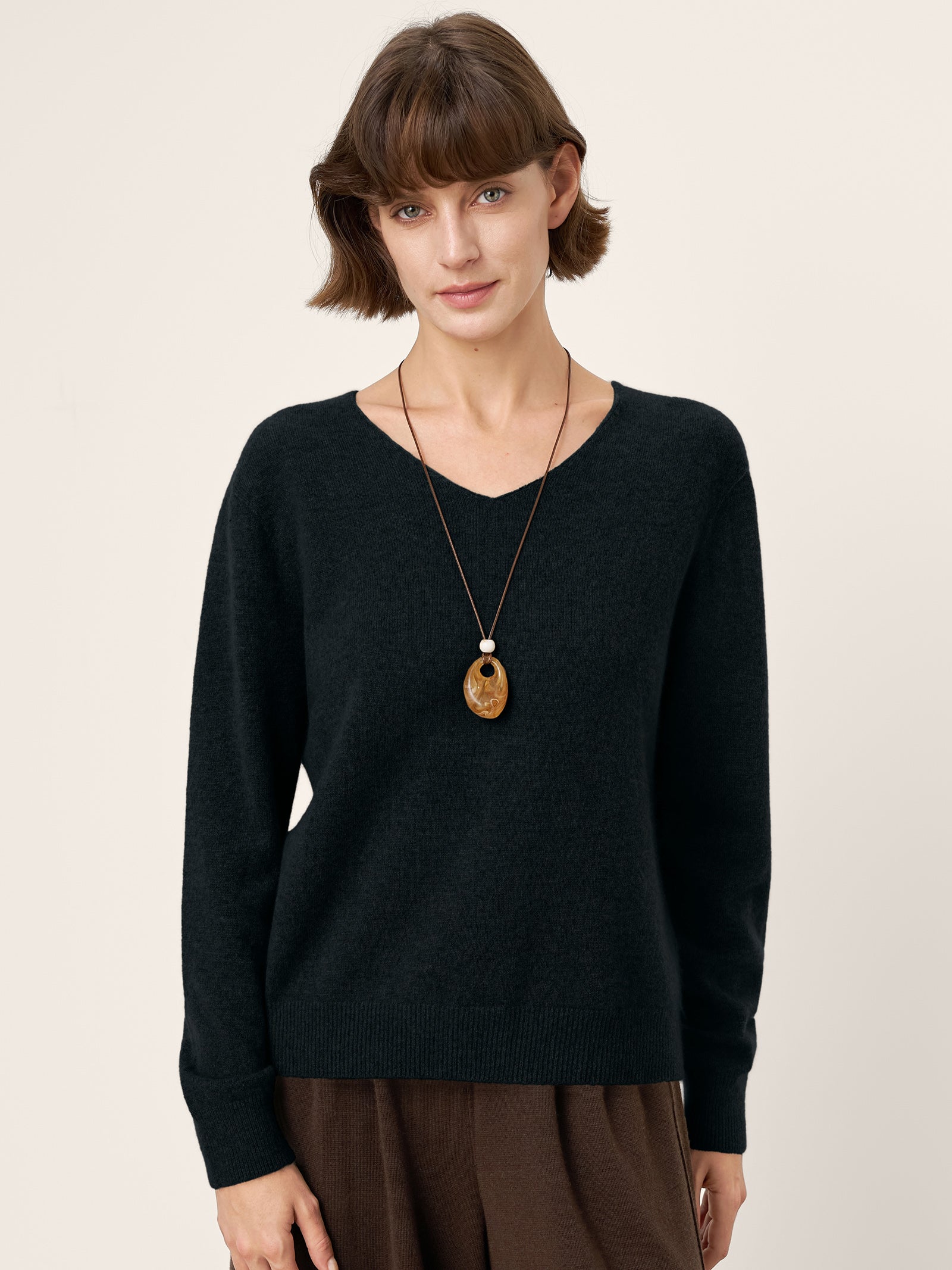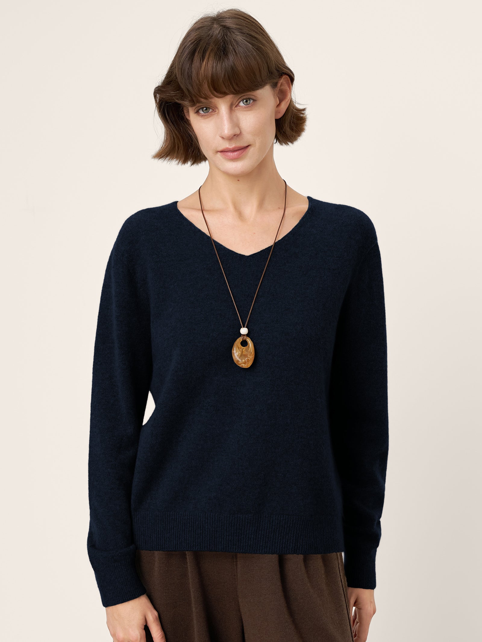 100% Mongolian Cashmere V-Neck Pullover Sweater PIPER