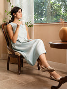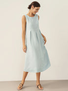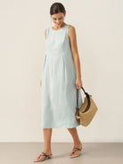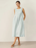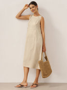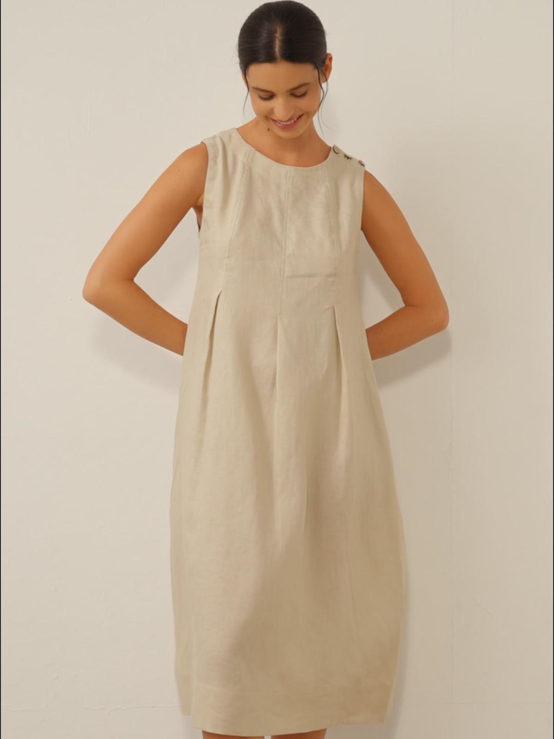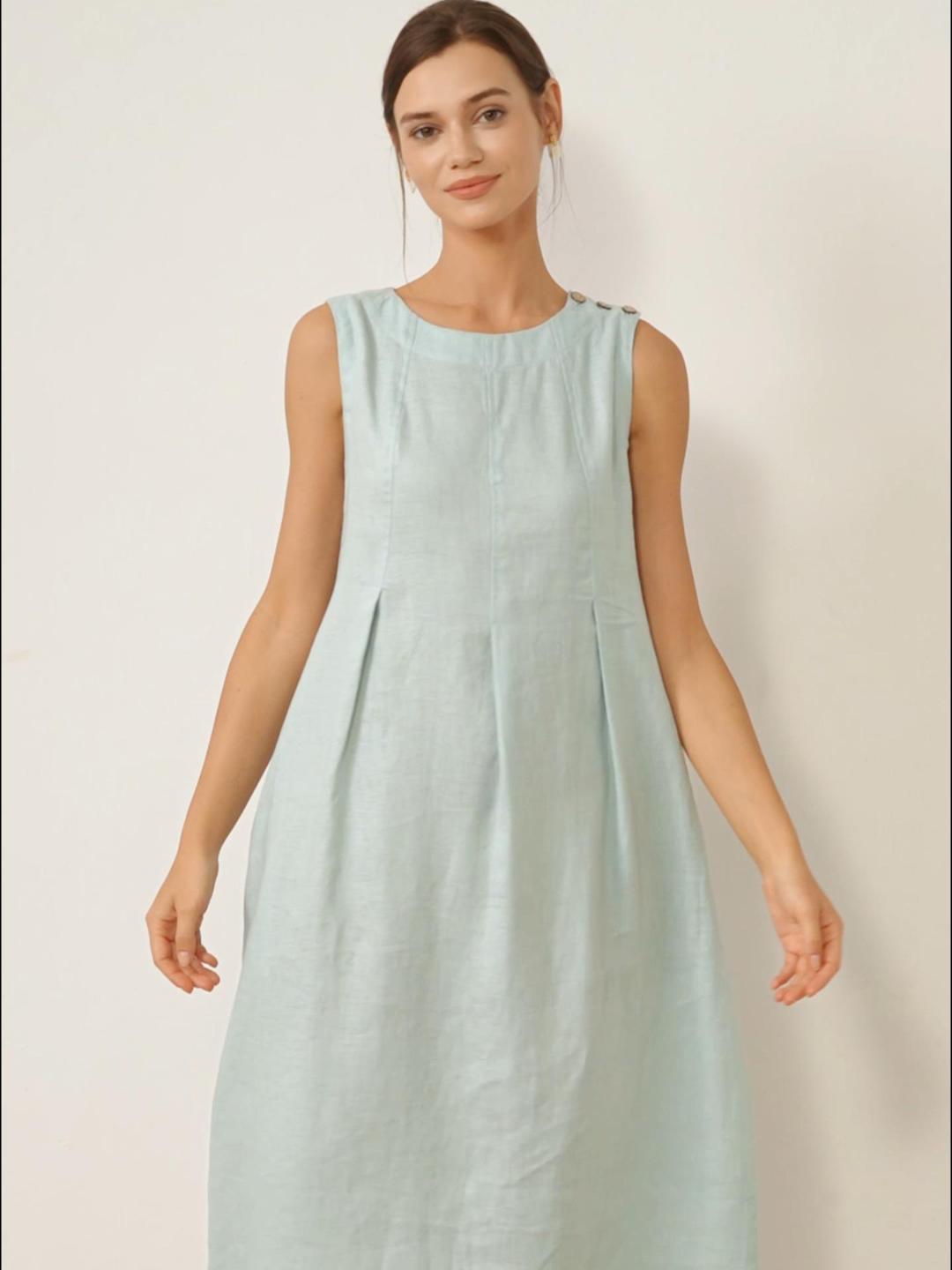 100% Linen Sleeveless Shoulder Button Midi Dress FREYA