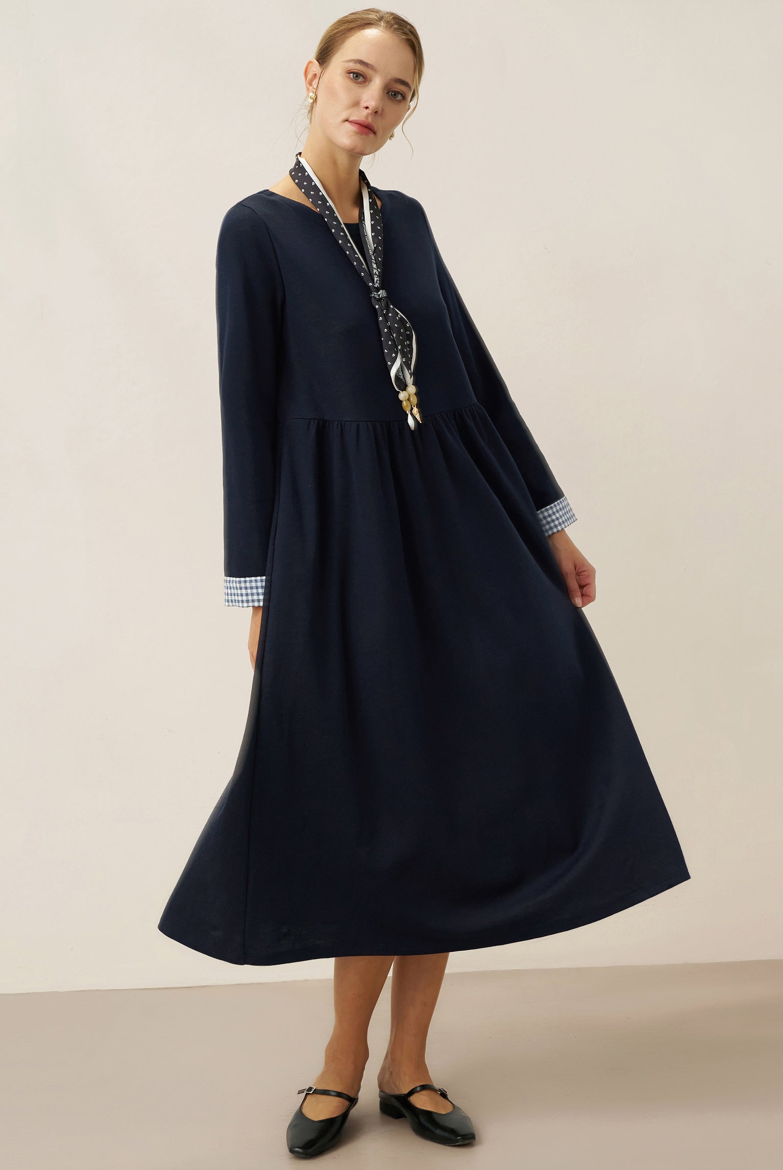 Linen Cotton Colorblock Trim Pocket Maxi Dress CLEMENTINE