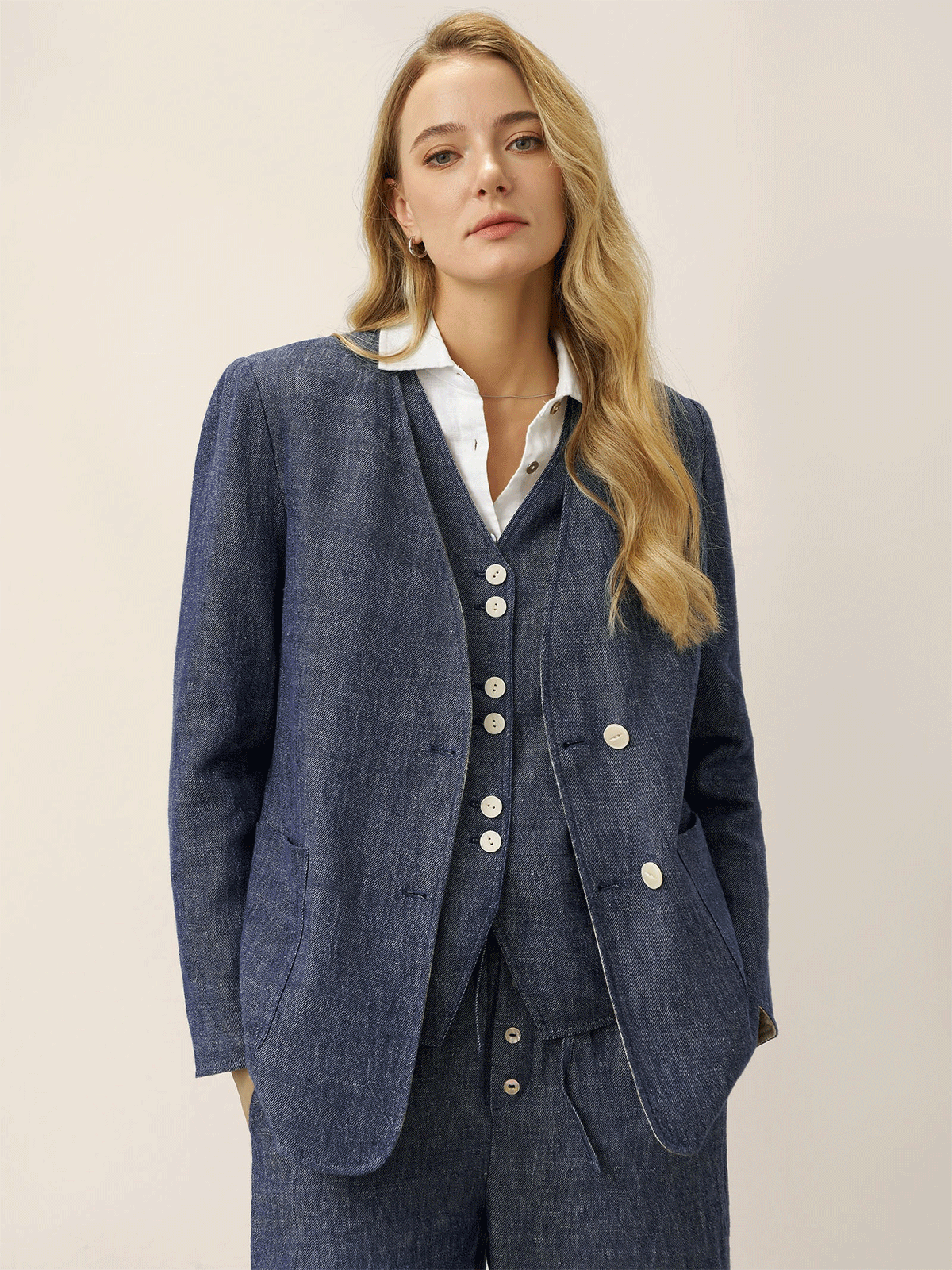 Dense weaving ensures durability and wrinkle resistance, while blended fibers retain shape. Meticulous stitching and refined finishing preserve a sharp silhouette—elegance that lasts through time and wear.