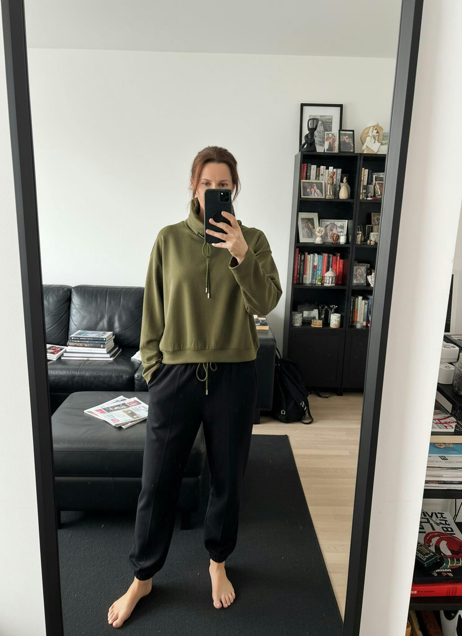 • Weekend Comfort: Leggings + fuzzy slides + oversized scarf on brisk walks