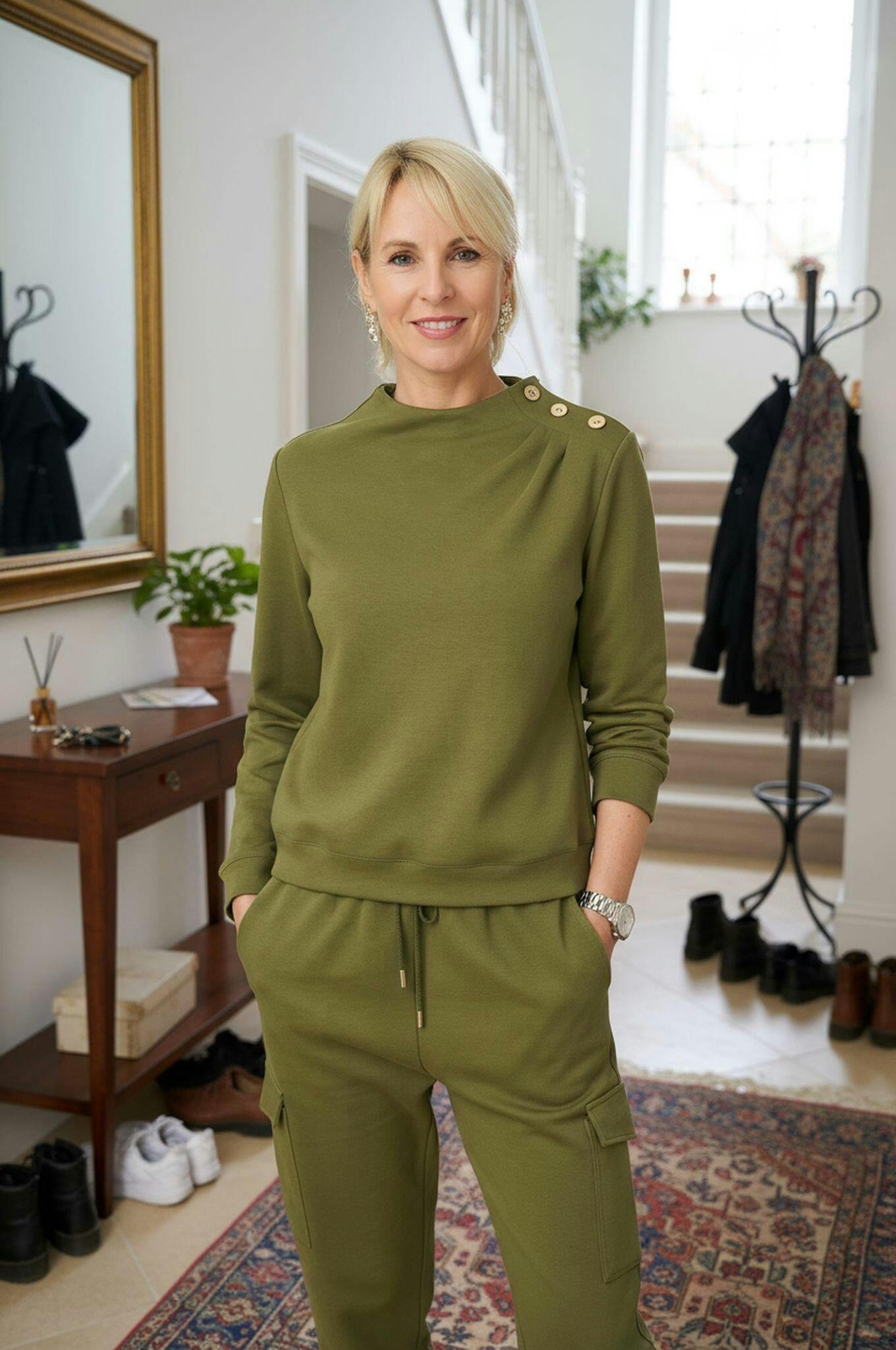 Olive’s organic depth harmonizes effortlessly with autumnal camels and winter taupes, while offering evergreen versatility with navy, ivory, or cognac accents across seasons.