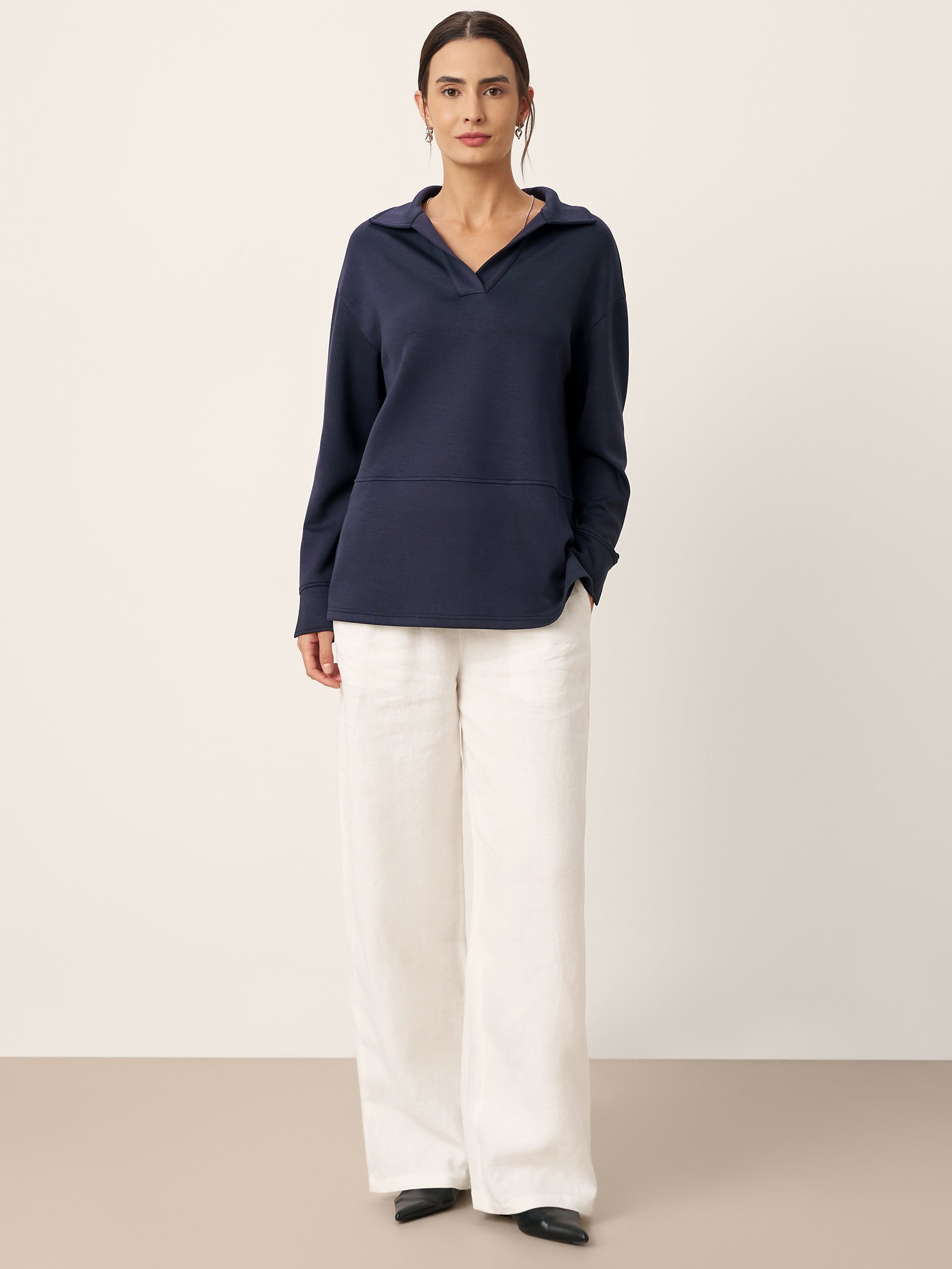 - Dropped Shoulder Silhouette: Naturally sloped shoulders create a soft, fluid drape for an effortless, laid-back look.