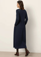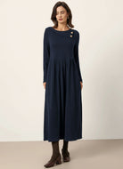 Wool Layered Neck Pleated Maxi Dress BILLIE