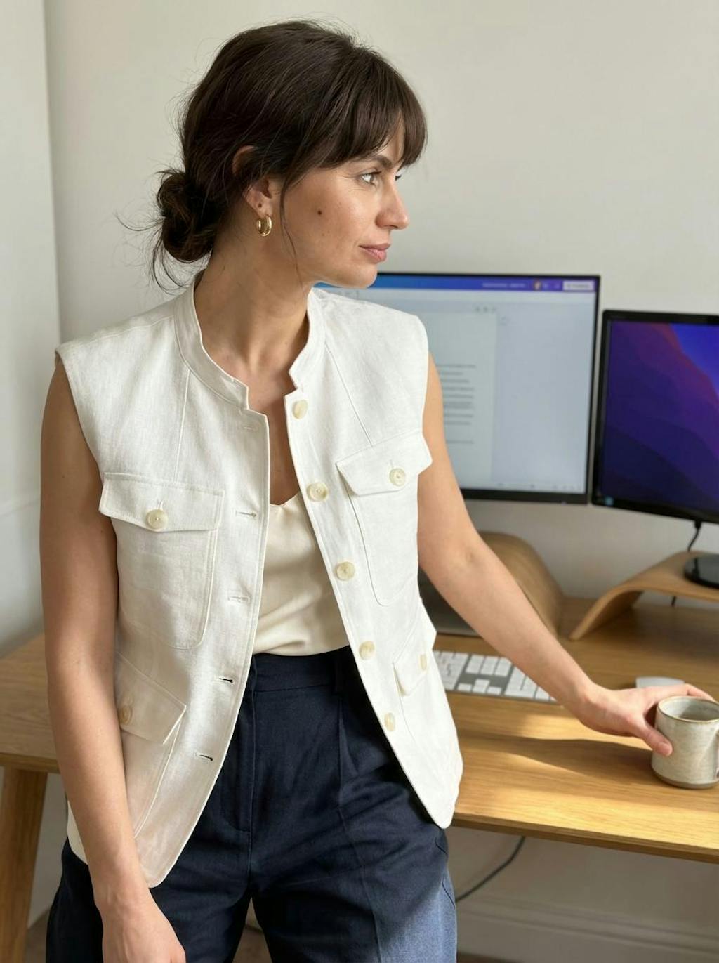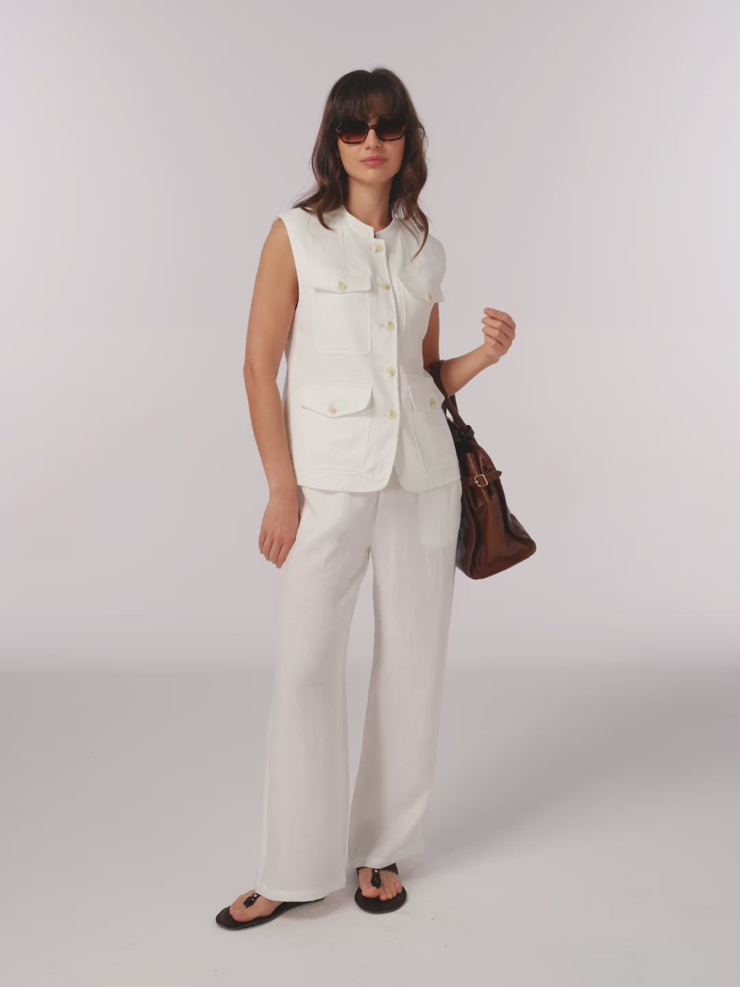 100% Linen Four-Pocket Tailored Sleeveless Top COSIMA