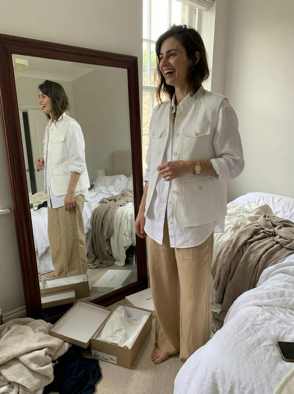 - Coastal Cool: Linen shorts + woven sandals + raffia tote