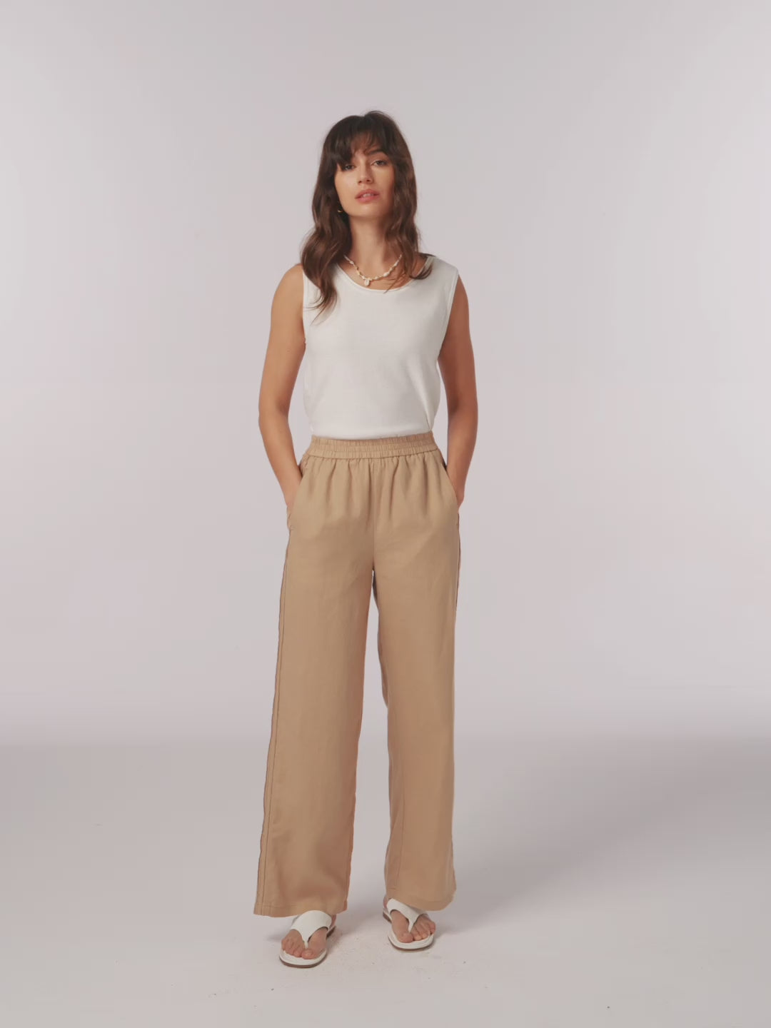 100% Linen Hemstitch Wide Leg Trousers LEONTINE