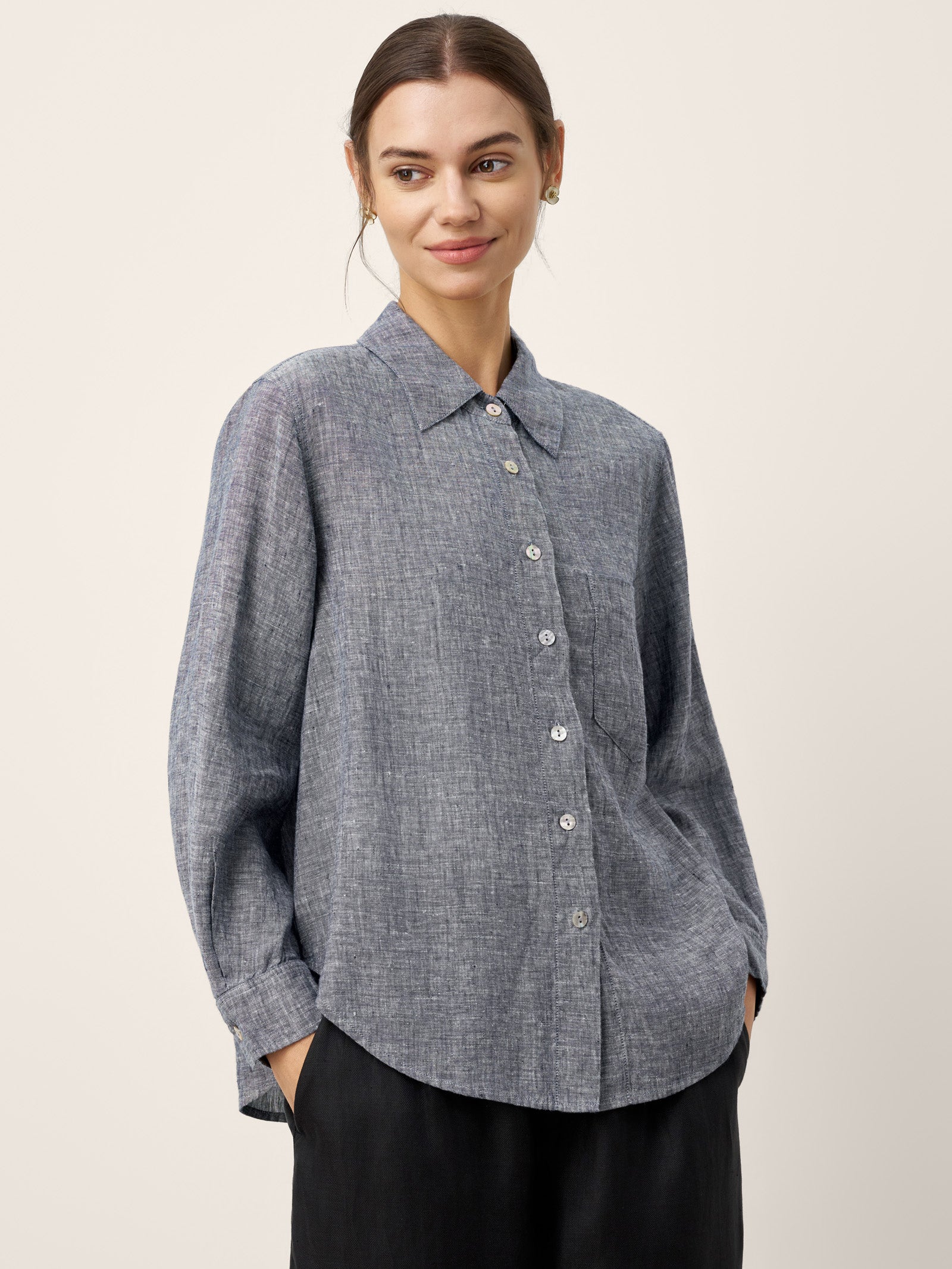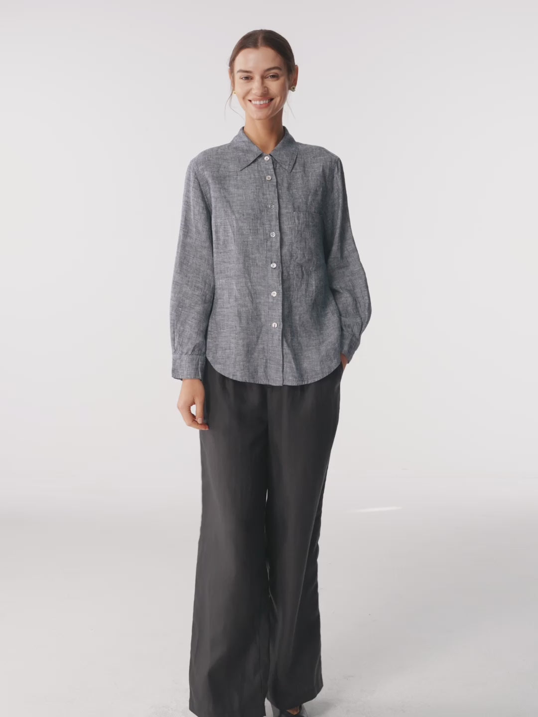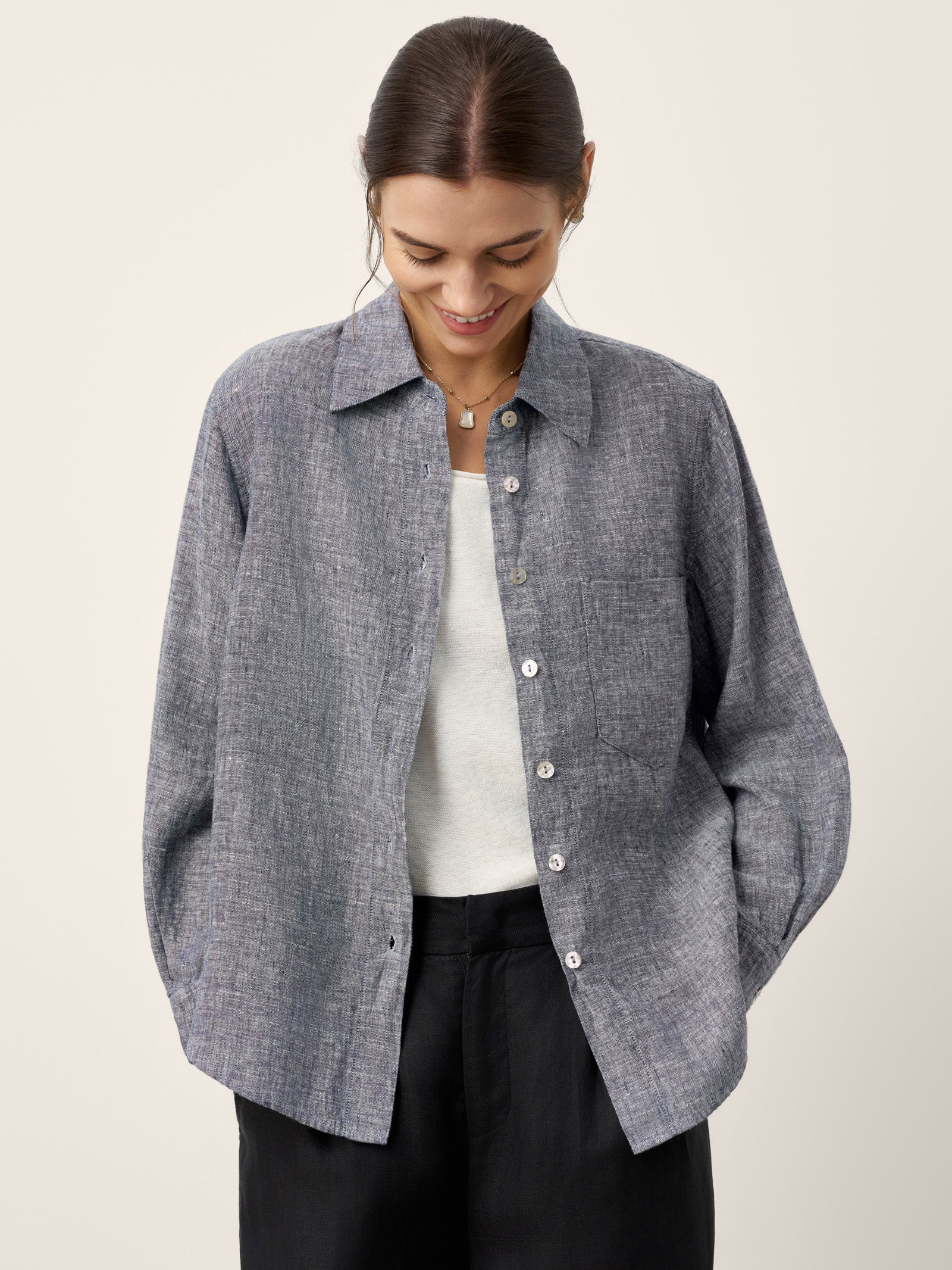 100% Linen Relaxed Drop Shoulder Pocket Shirt ASTER