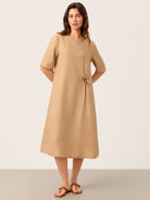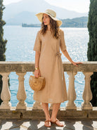 100% Linen Side-Gathered Bow Maxi Dress ESMERALDA