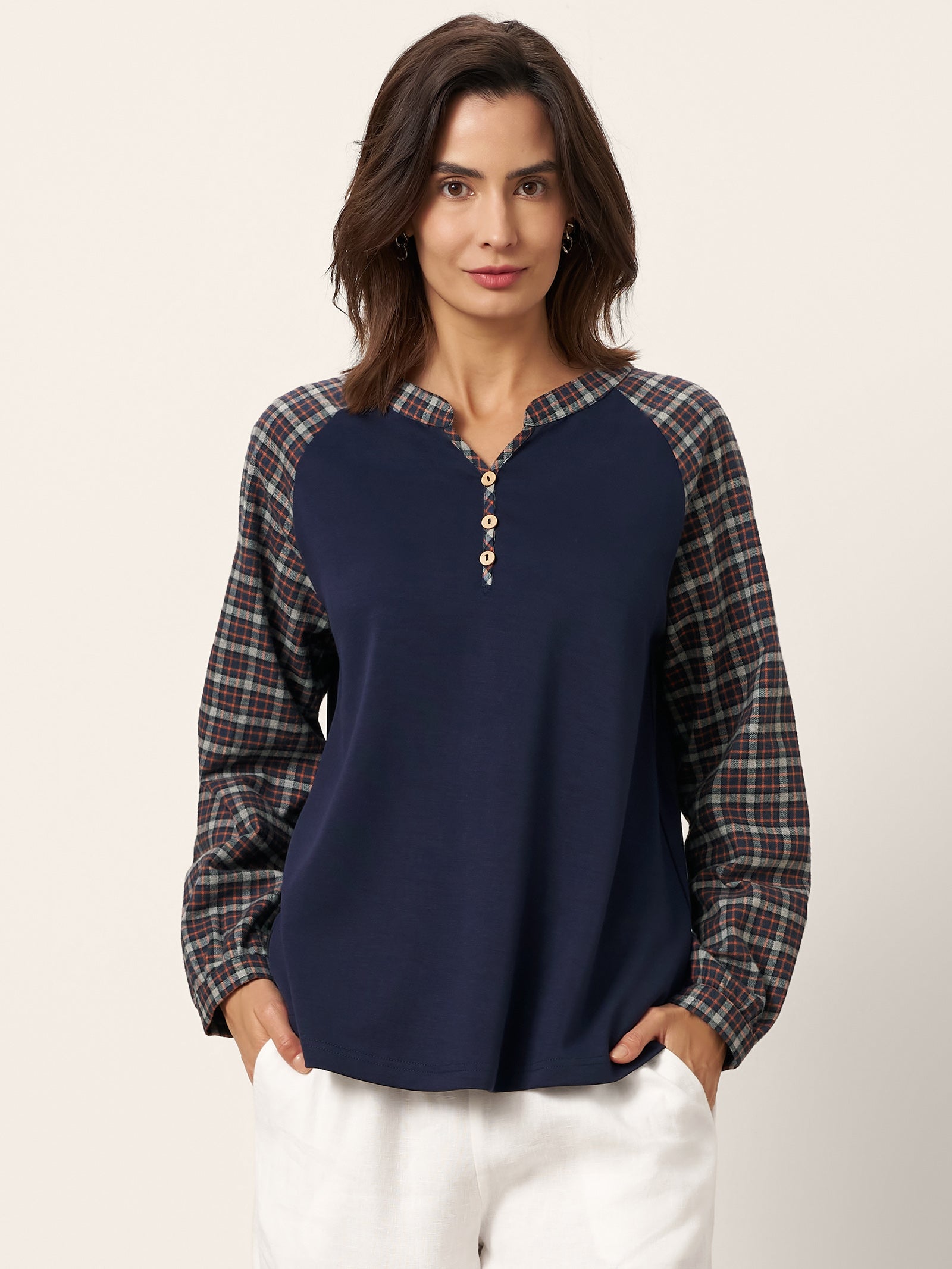 Cotton Draped Neck A-Line Long Sleeve Top KAY