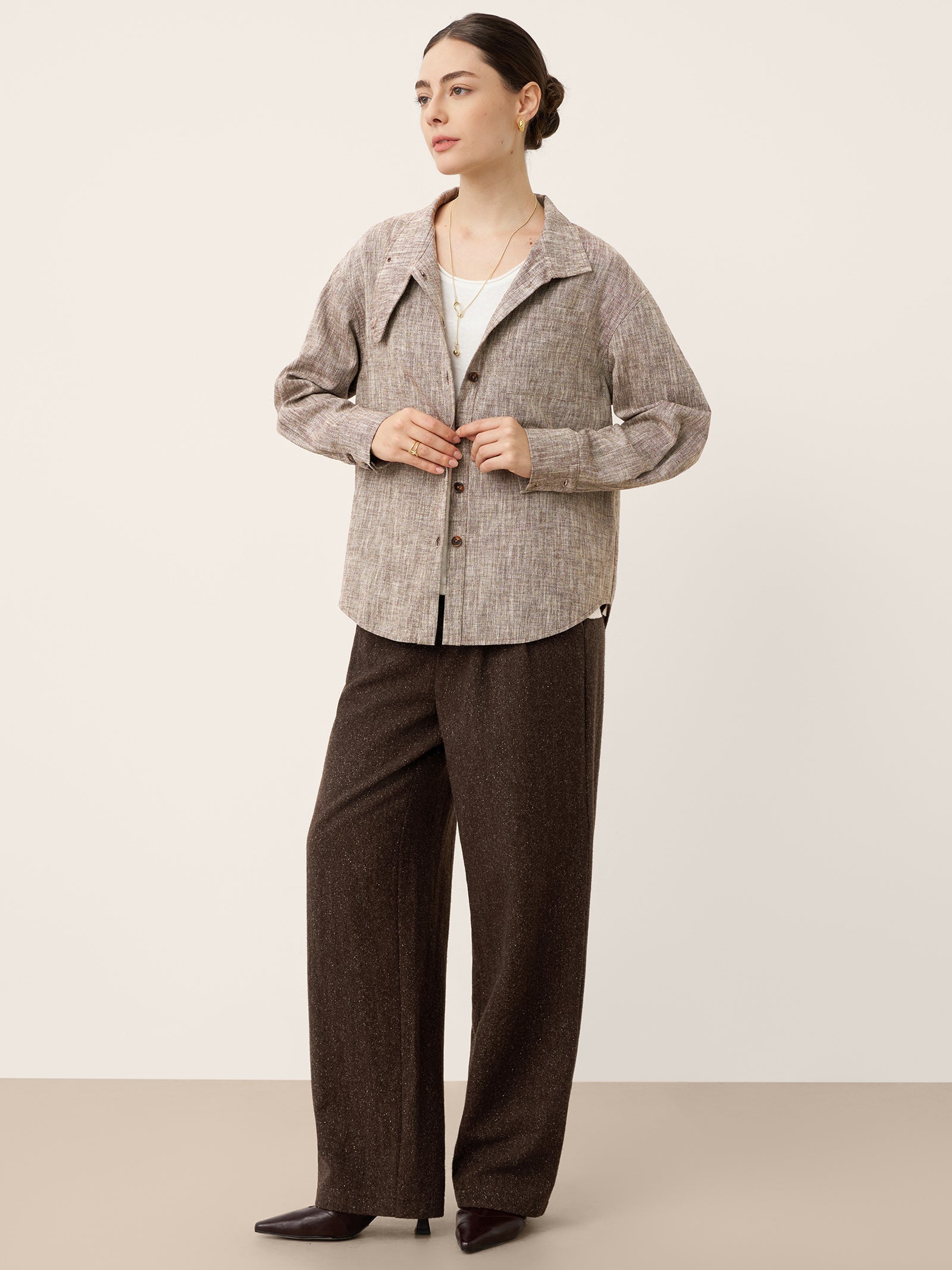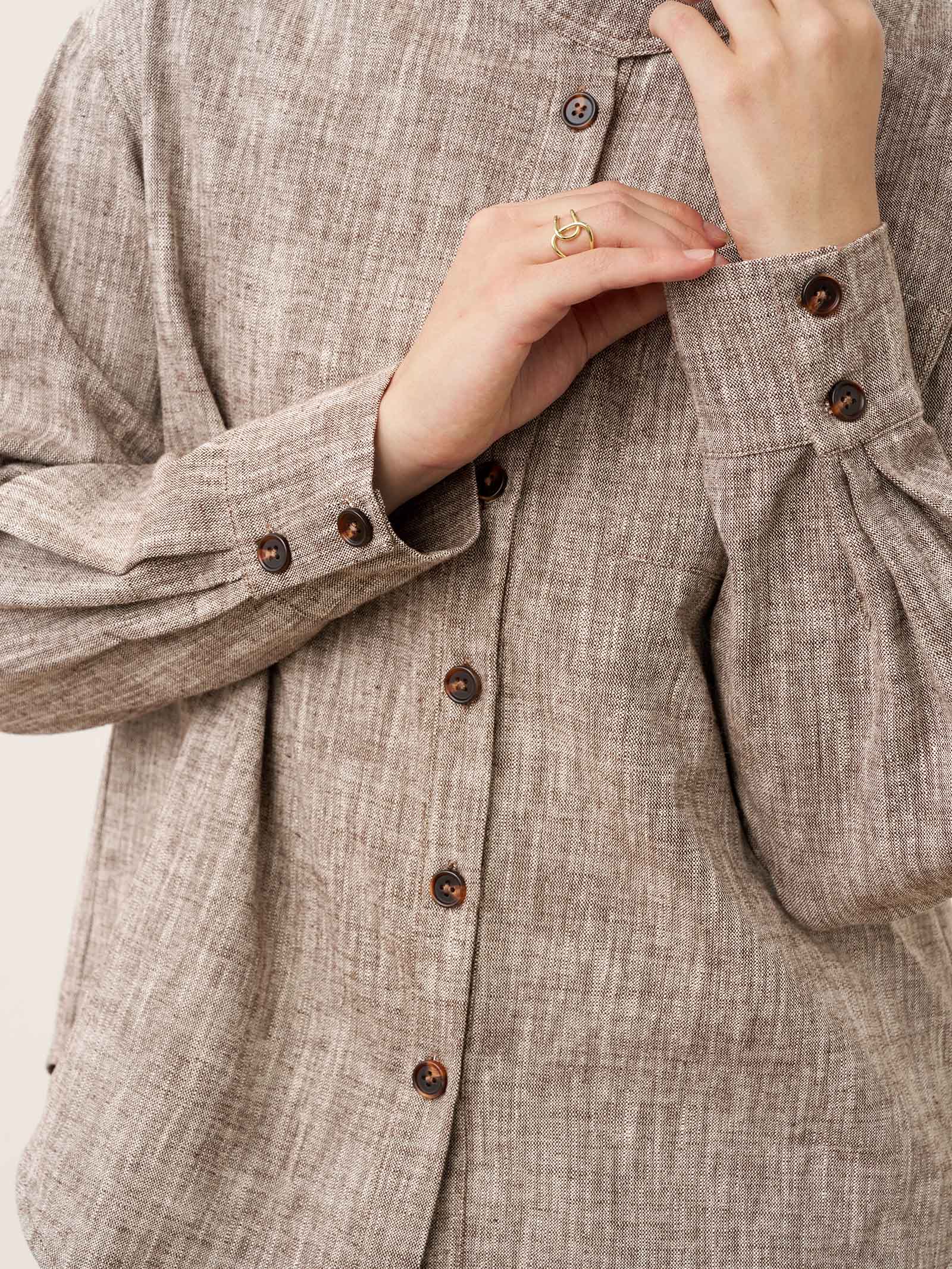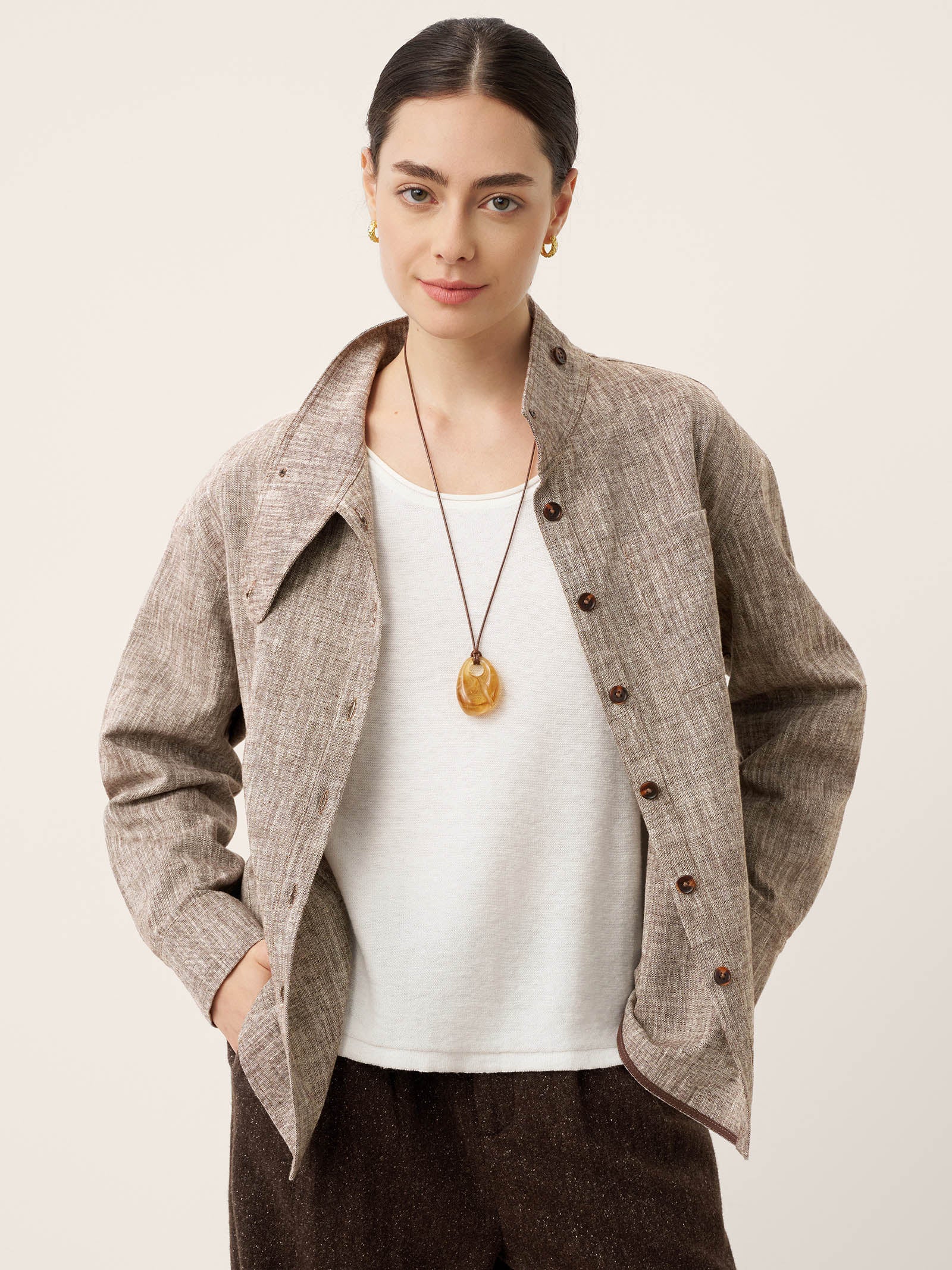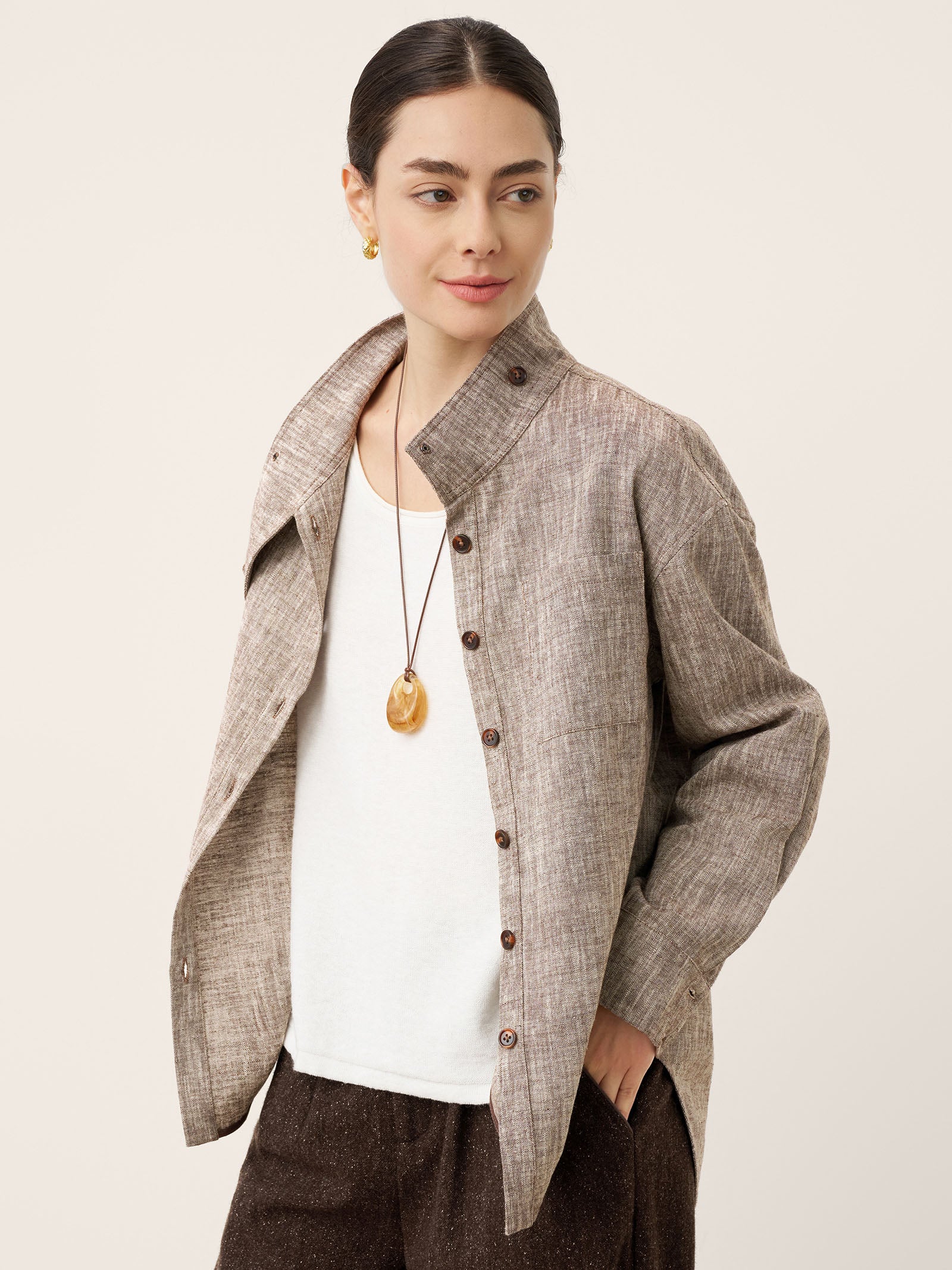 Linen Cotton Stand Collar Convertible Shirt Jacket GISELLE