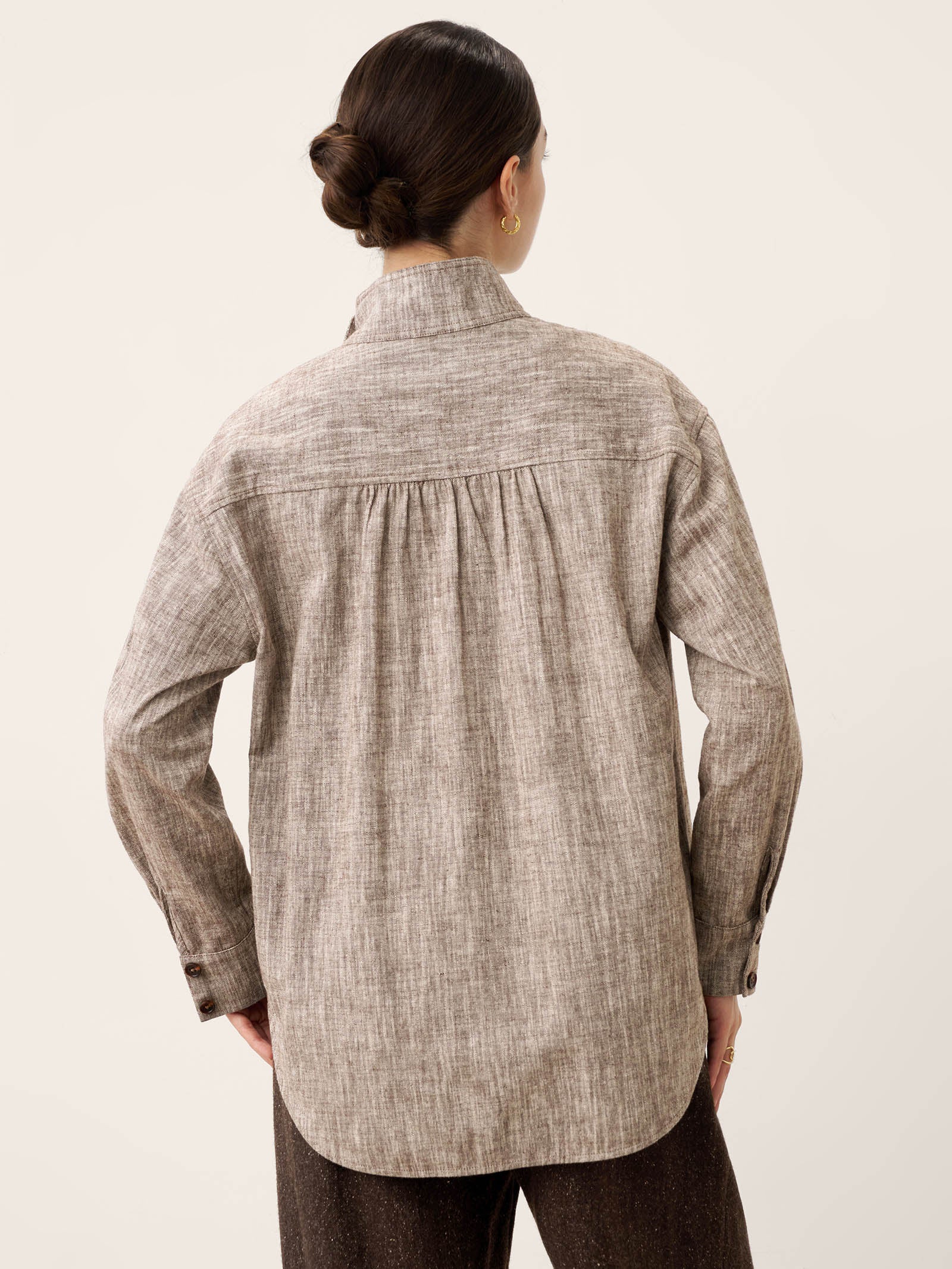 - Back yoke seams with micro pleats