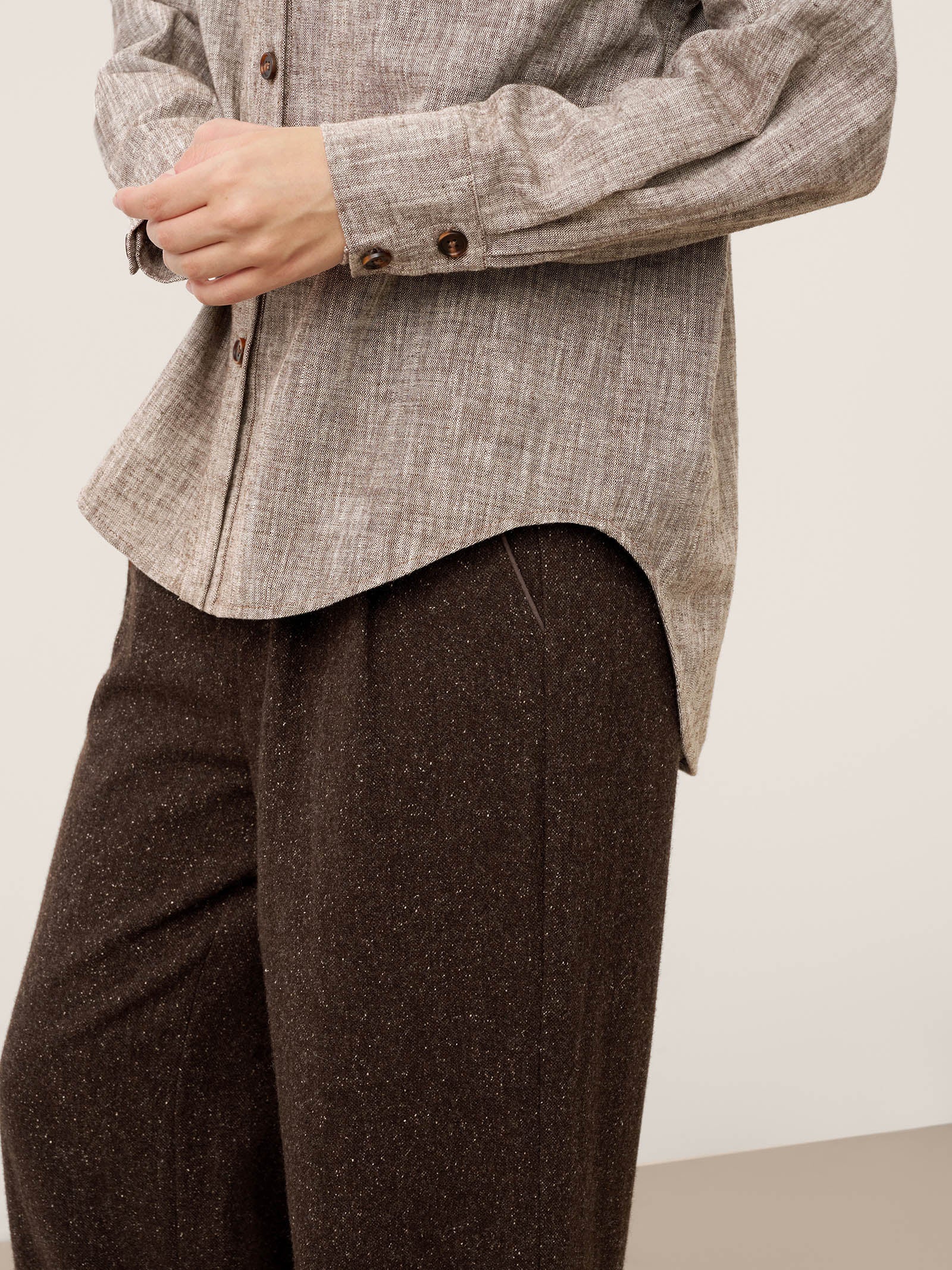 Dense weaving ensures durability and wrinkle resistance, while blended fibers retain shape. Meticulous stitching and refined finishing preserve a sharp silhouette—elegance that lasts through time and wear.