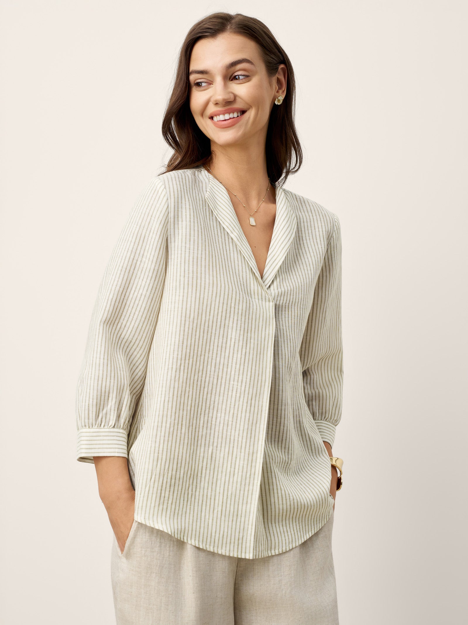• Breathable Striped Fabric: Lyocell-linen blend keeps you cool, layered, and visually slimming.