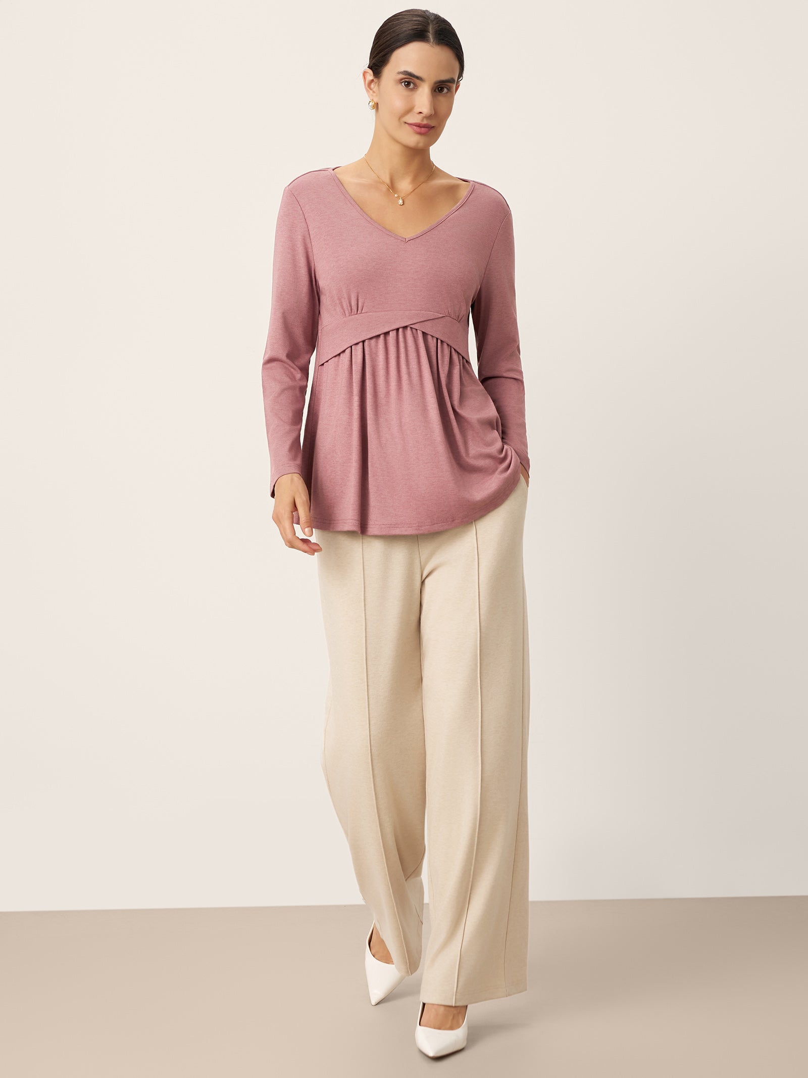 Wool Draped Waist V-Neck Long Sleeve Top ANNIE