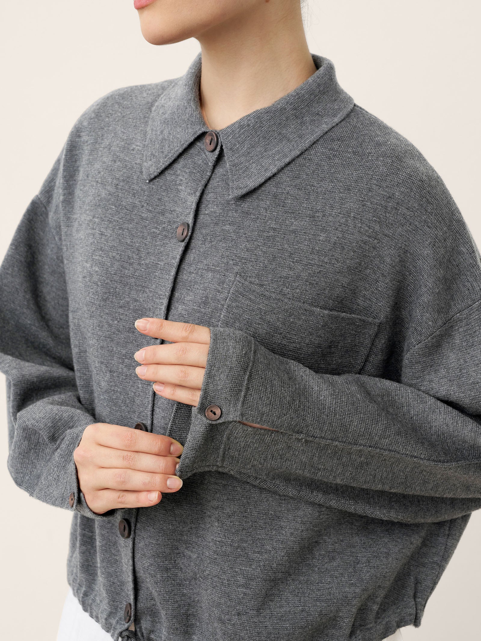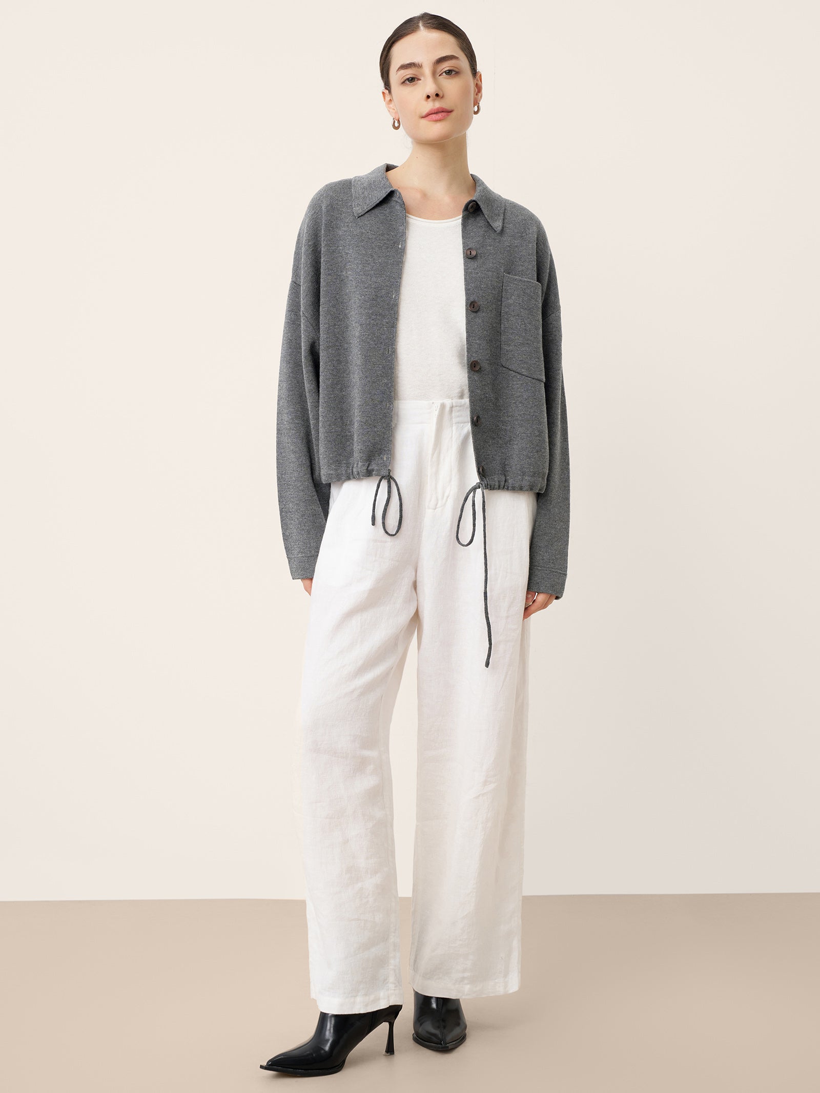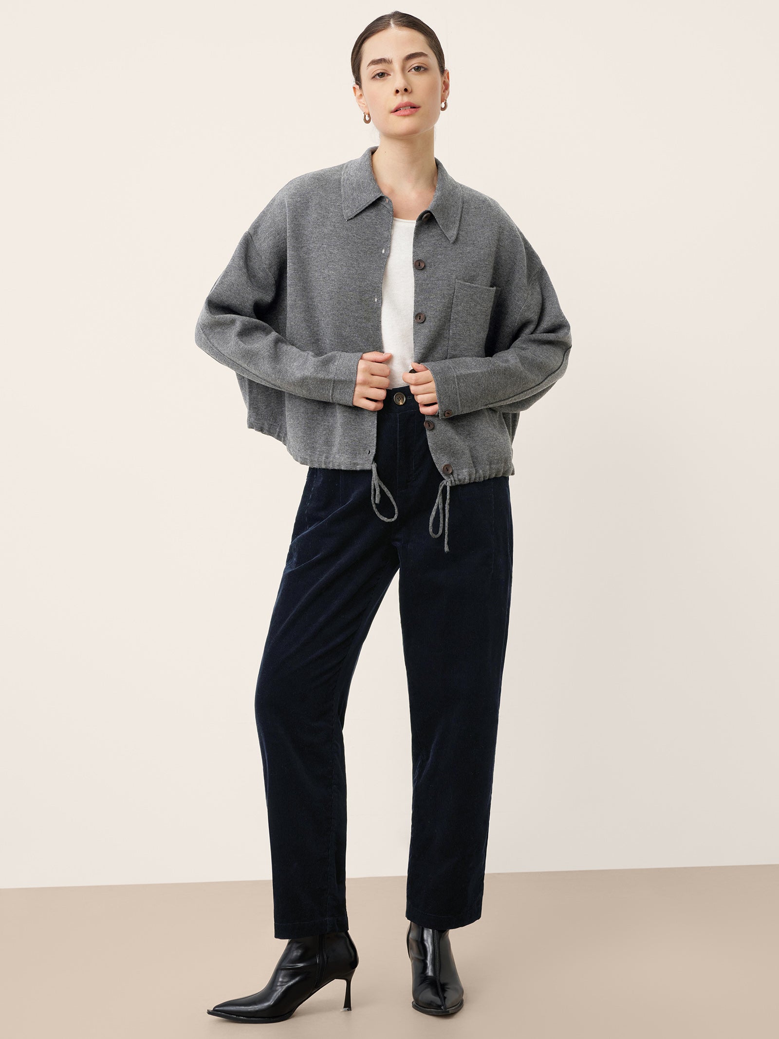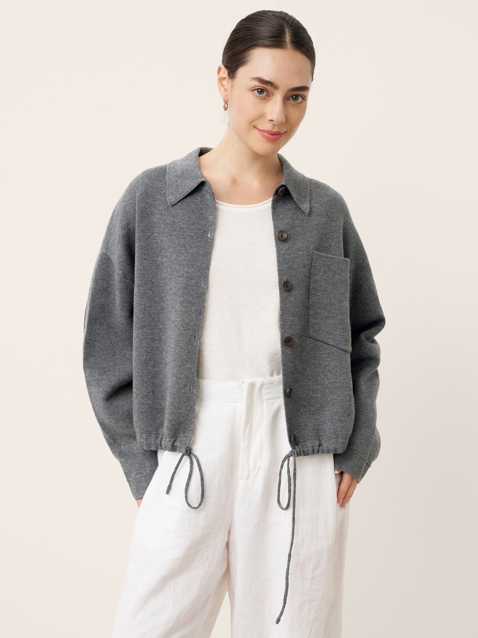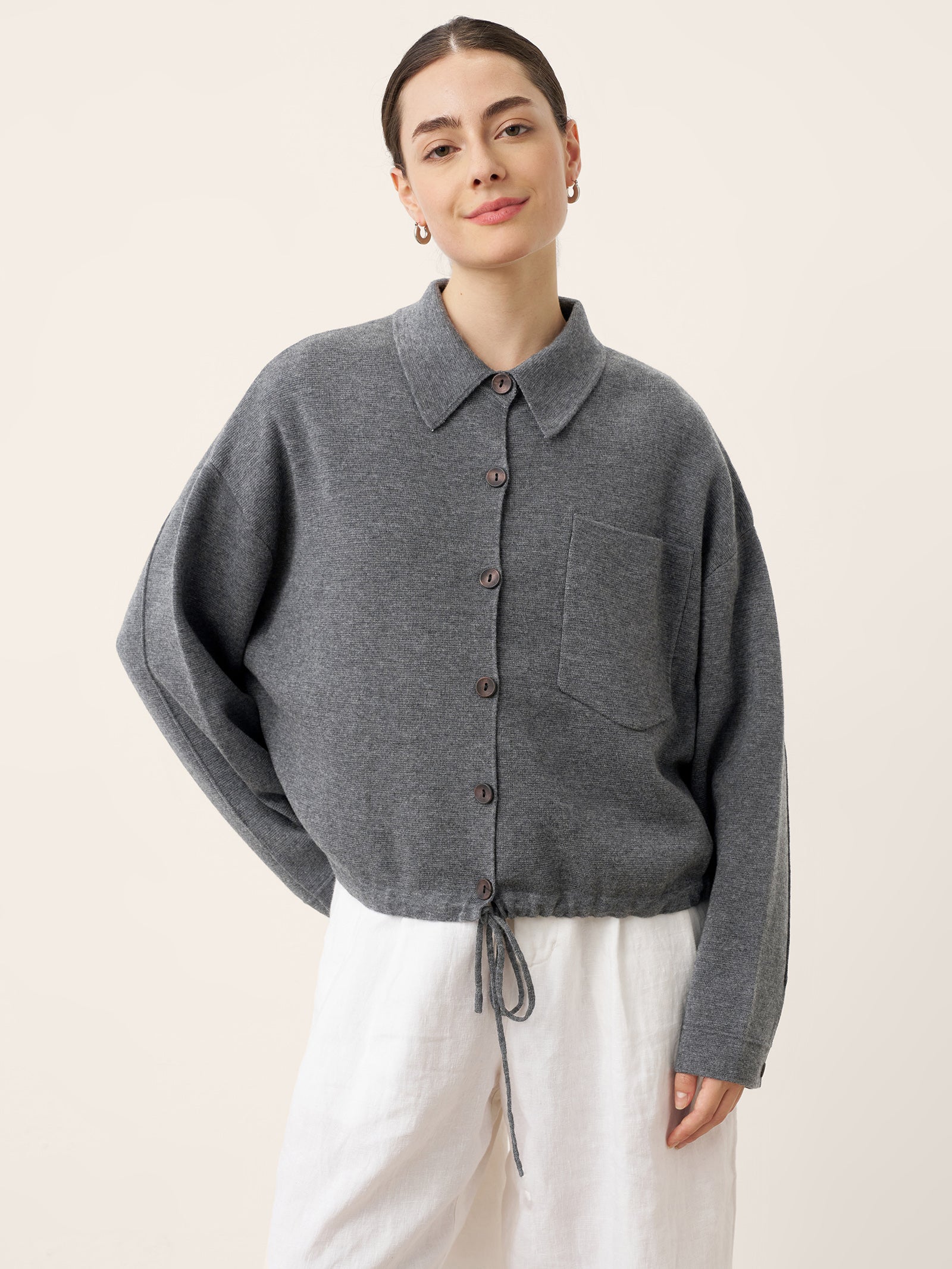 Wool Drawstring Hem Shirt Jacket SINEAD