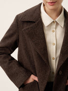 From the elegant notched collar to the unique angled closure, this coat feels thoughtfully designed from every angle. The double-row buttons and soft straight fit make it as functional as it is beautiful. It's the kind of piece that gets compliments every time I wear it.