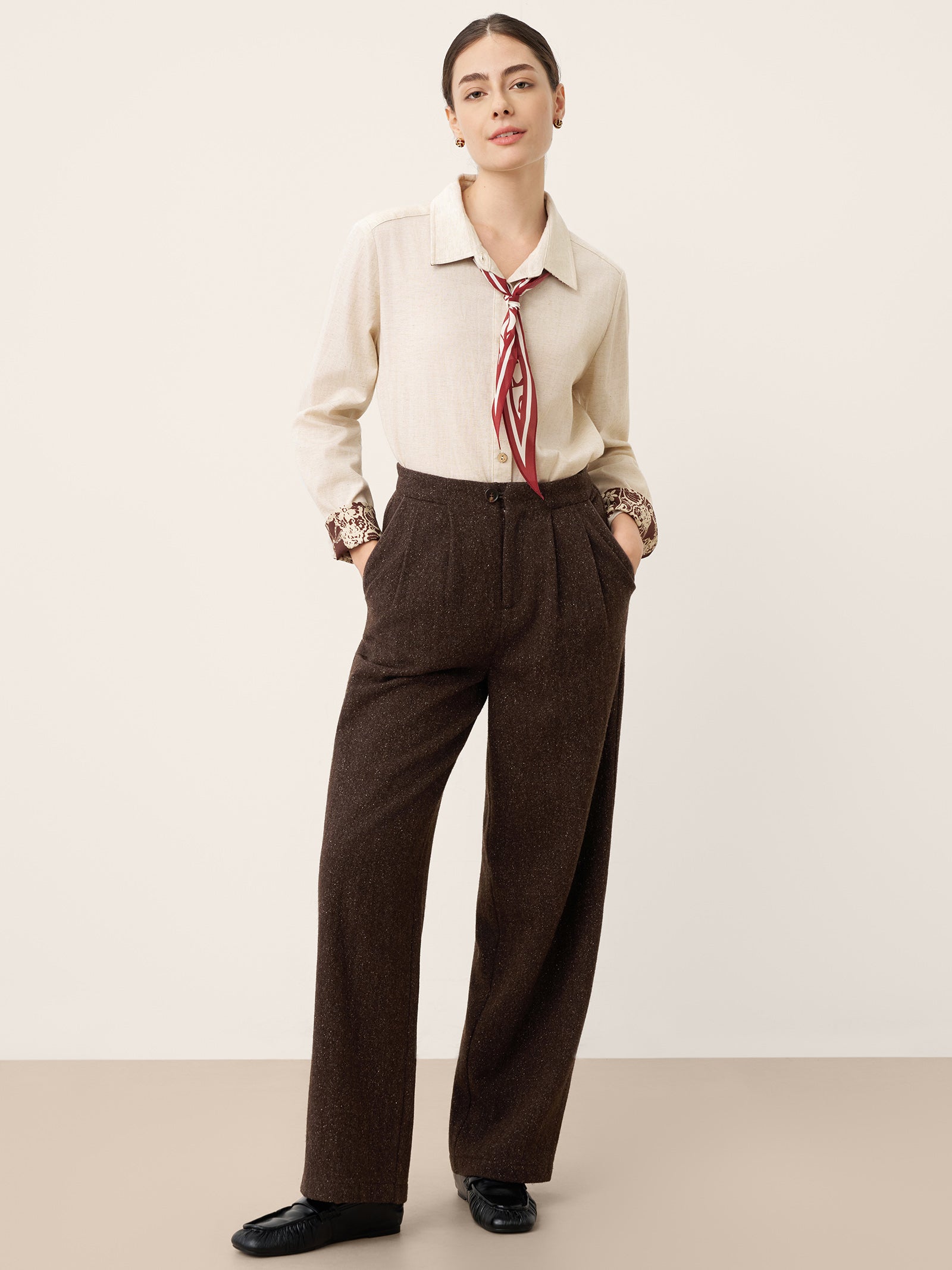 Dense weaving ensures durability and wrinkle resistance, while blended fibers retain shape. Meticulous stitching and refined finishing preserve a sharp silhouette—elegance that lasts through time and wear.