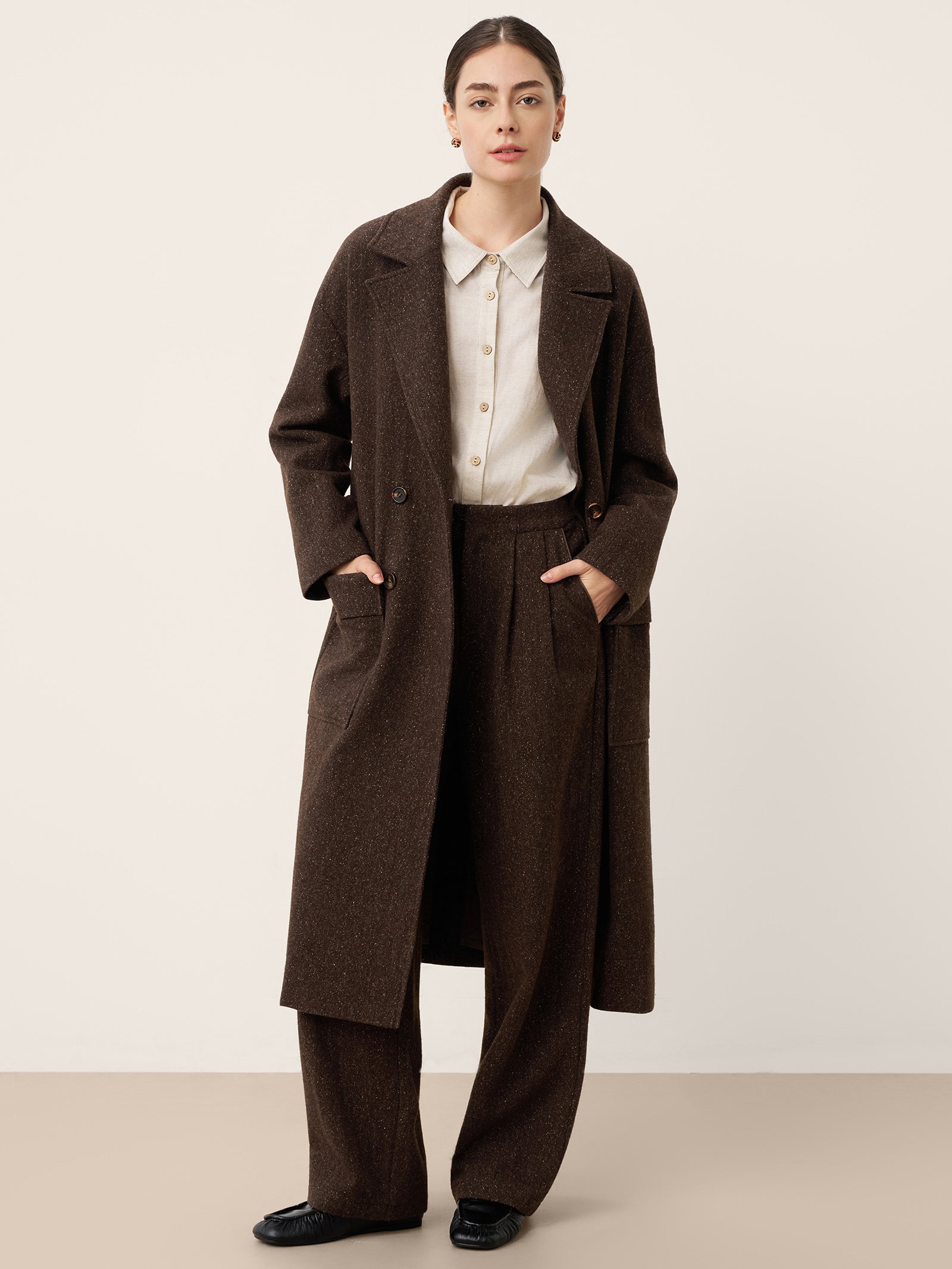 By combining insulating fibers such as wool and cashmere with breathable materials, the fabric locks in heat while allowing airflow. Dense yet lightweight weaving ensures warmth without excess bulk—keeping you cozy and free to move all winter long.