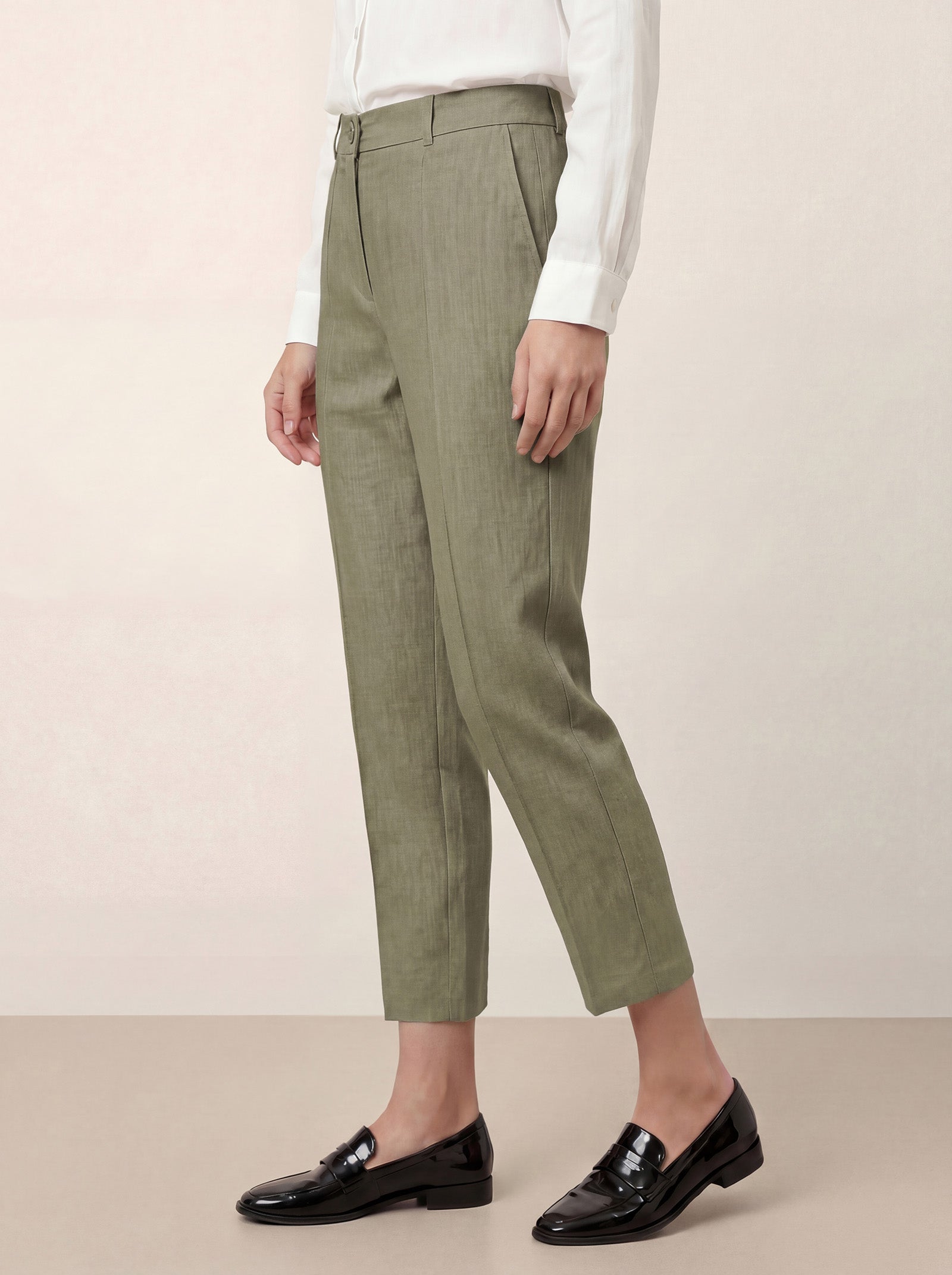 Linen Pull-On Mock-Fly Straight Cropped Pants LOGAN