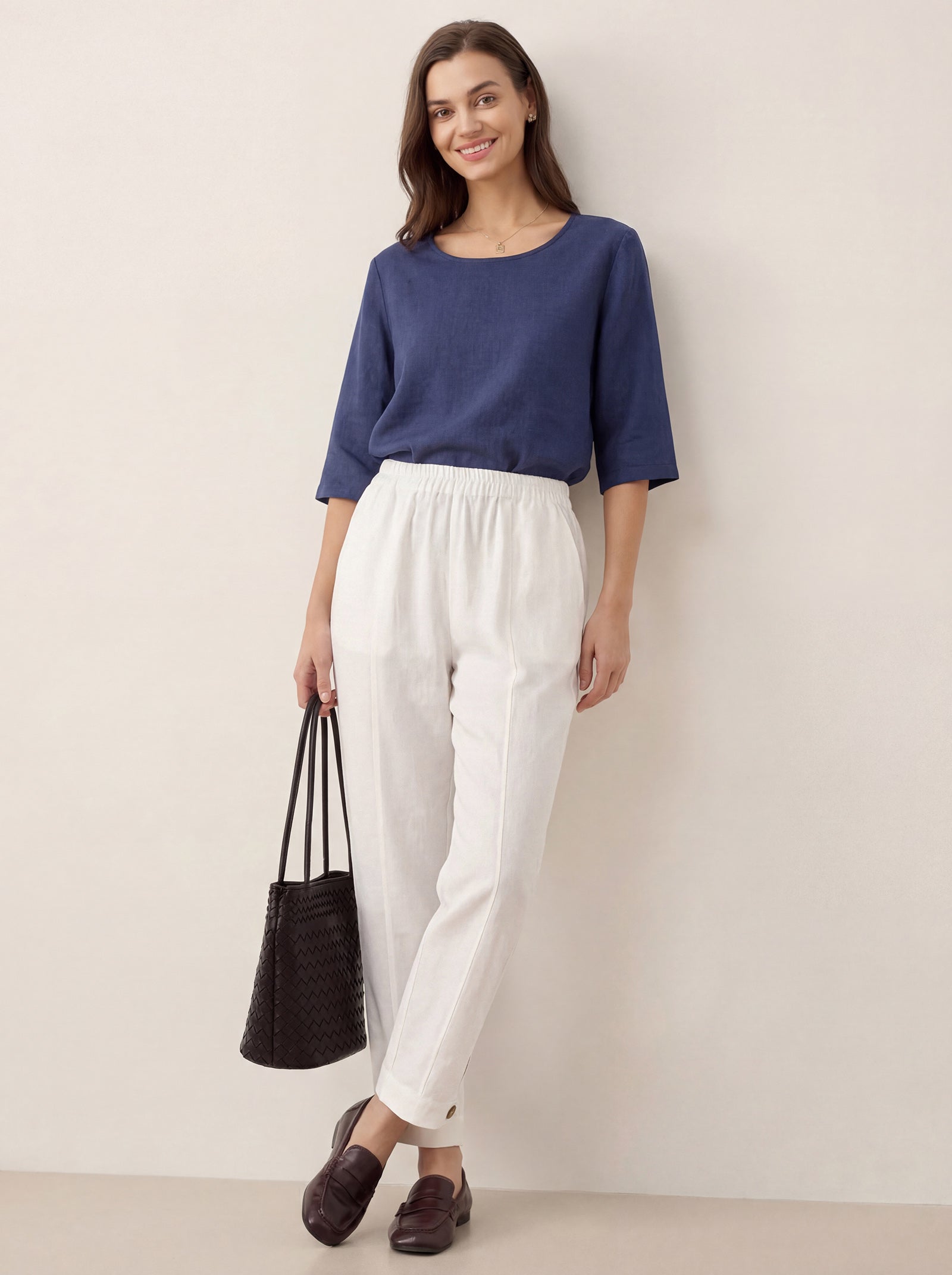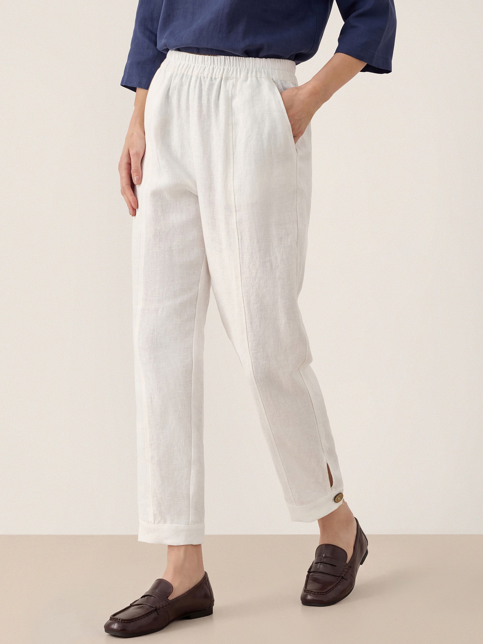 Linen Round Soft-Fold Collar Top ANAIS
