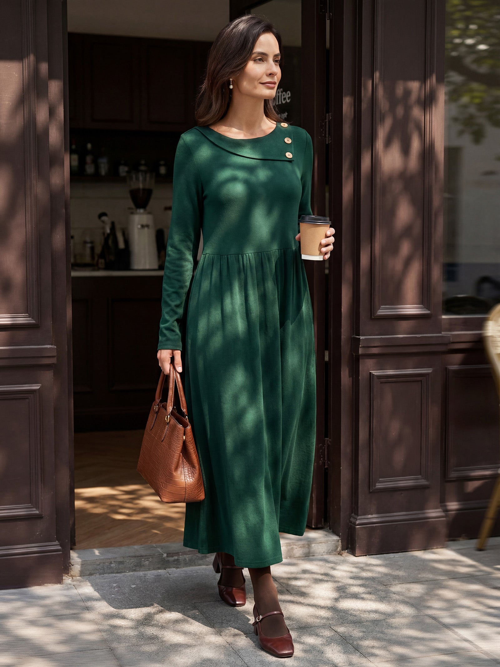 - Flattering Half-Moon Collar: Classic round neckline with a softly layered half-moon collar creates natural dimension; gentle curves refine the neckline for a face-slimming, graceful look.