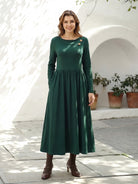 Wool Layered Neck Pleated Maxi Dress BILLIE
