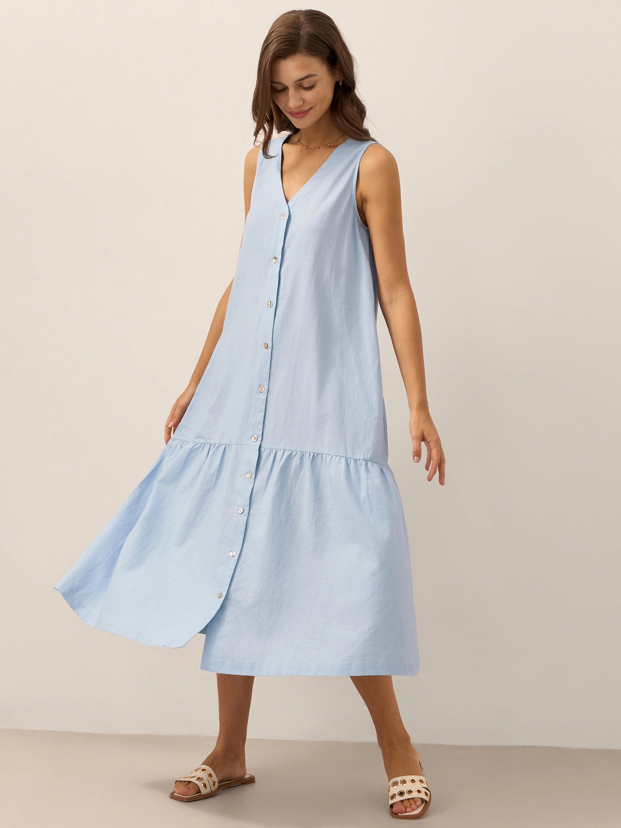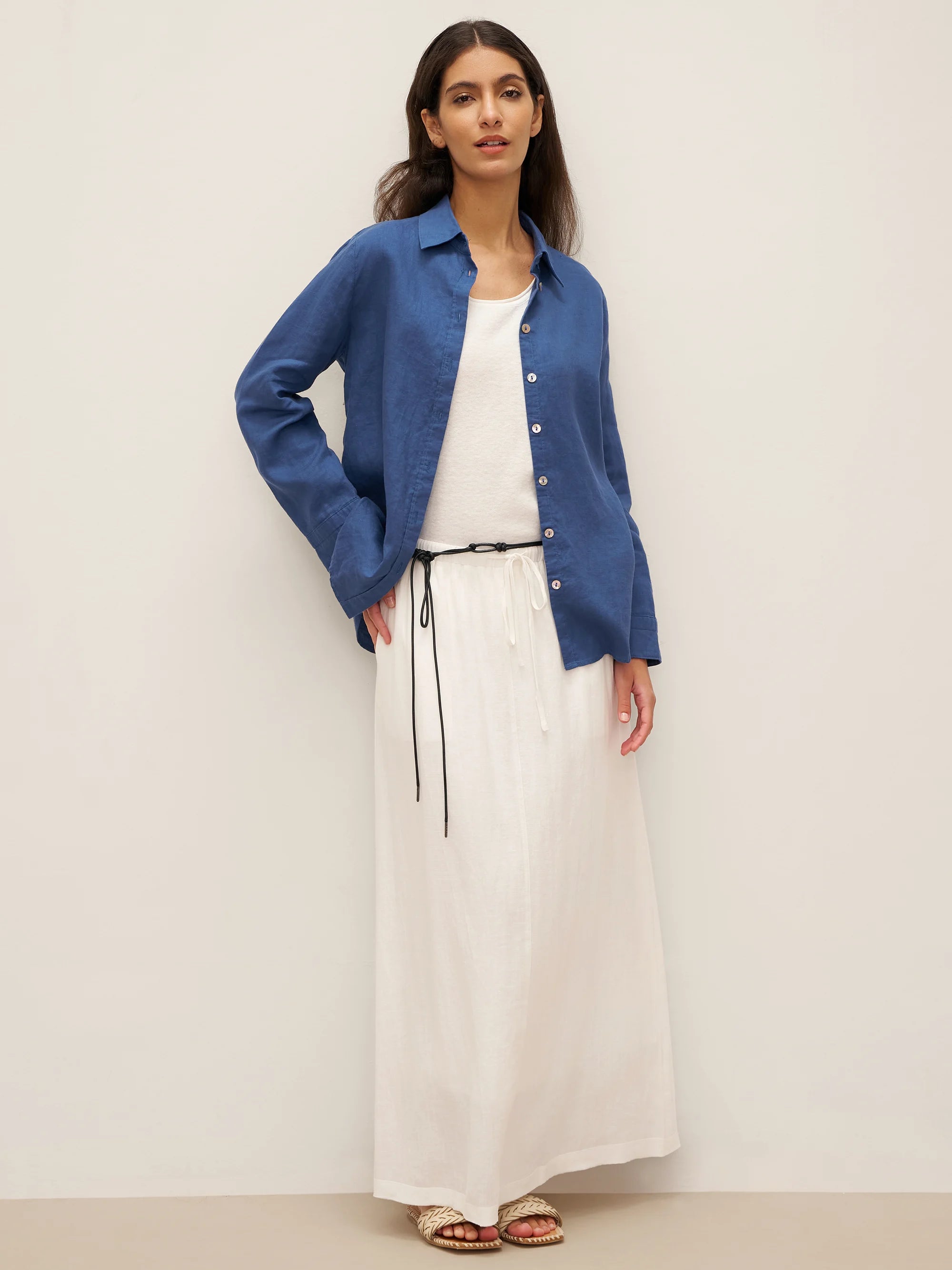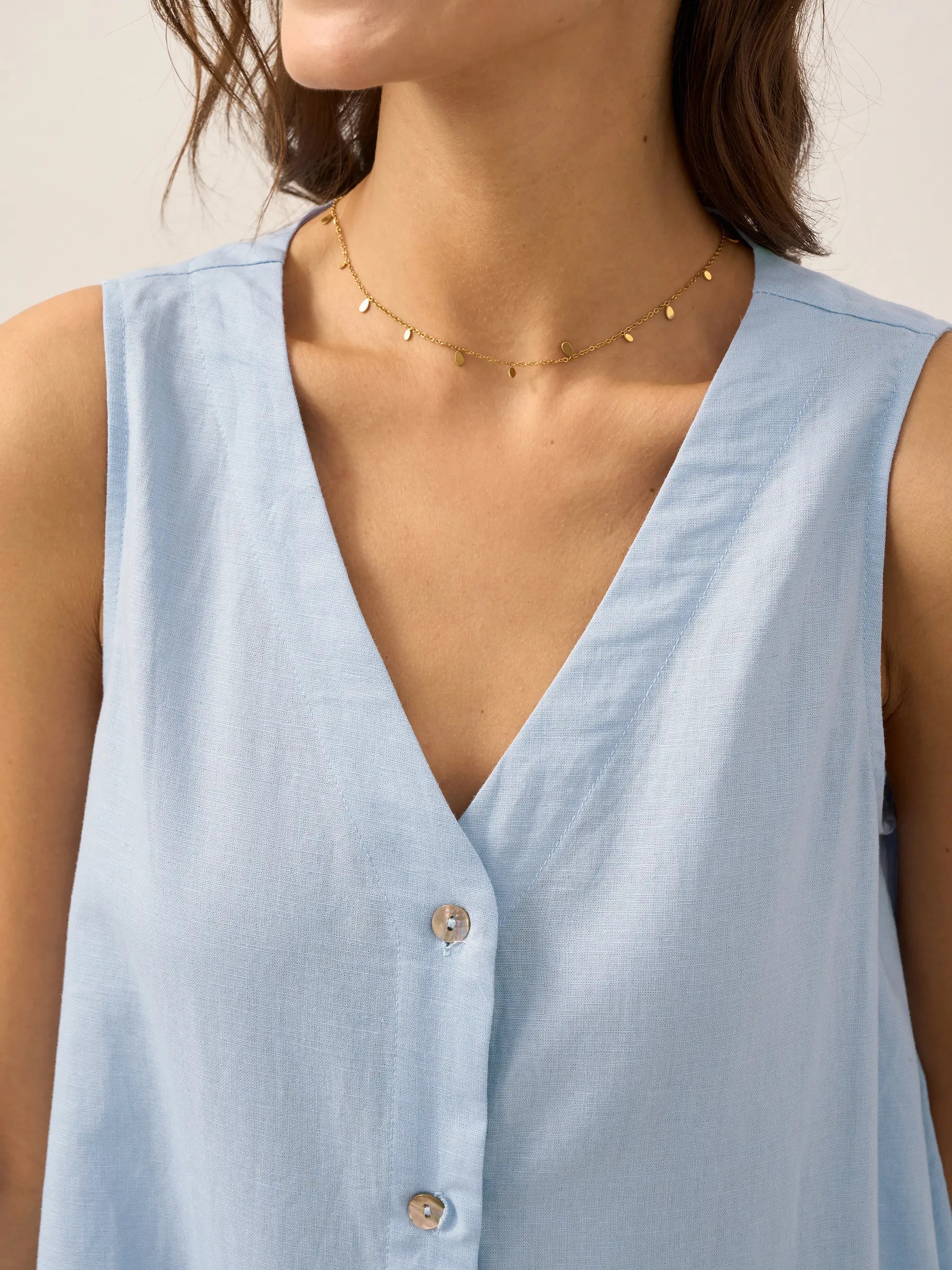 Linen Round Soft-Fold Collar Top ANAIS