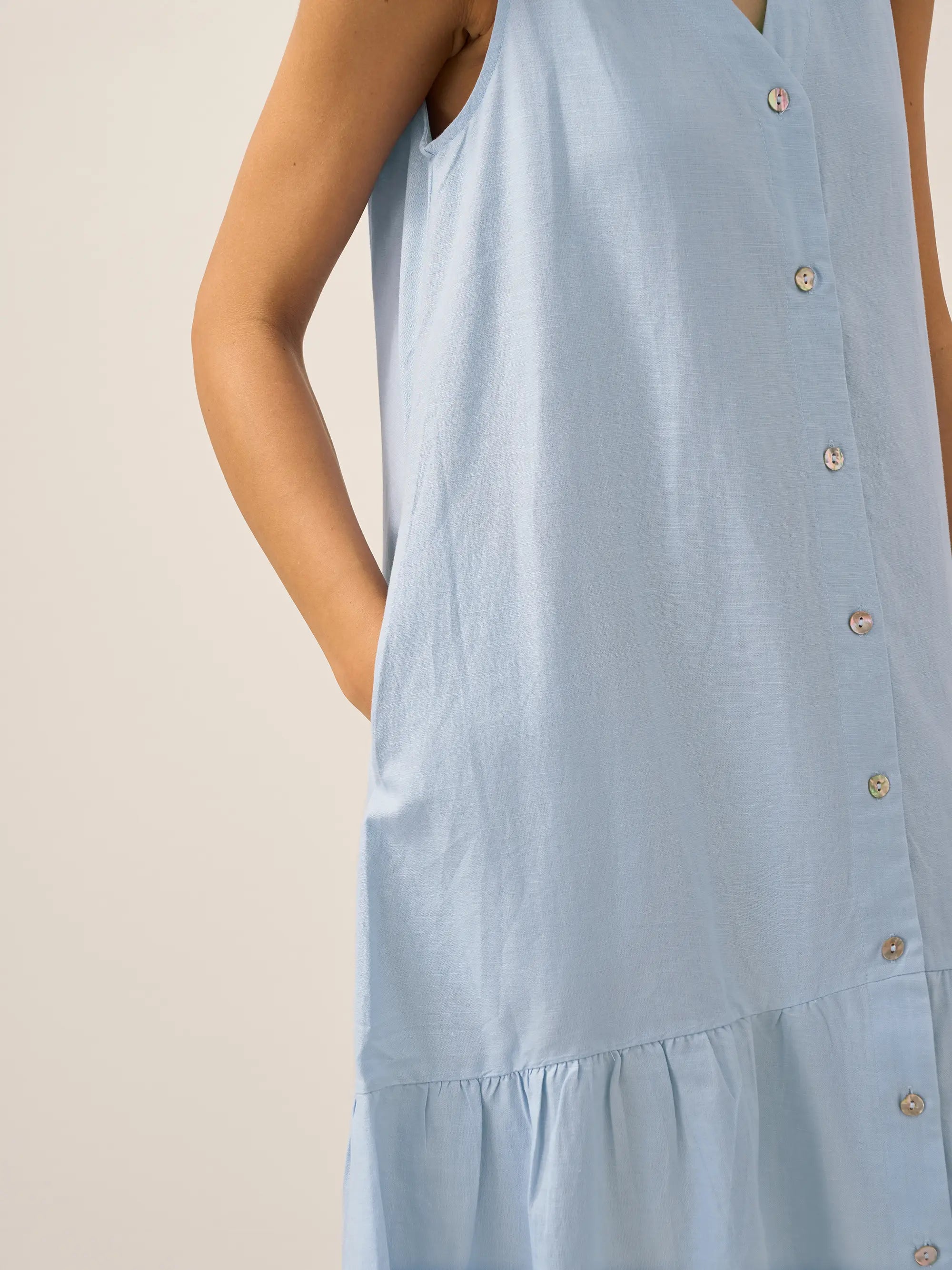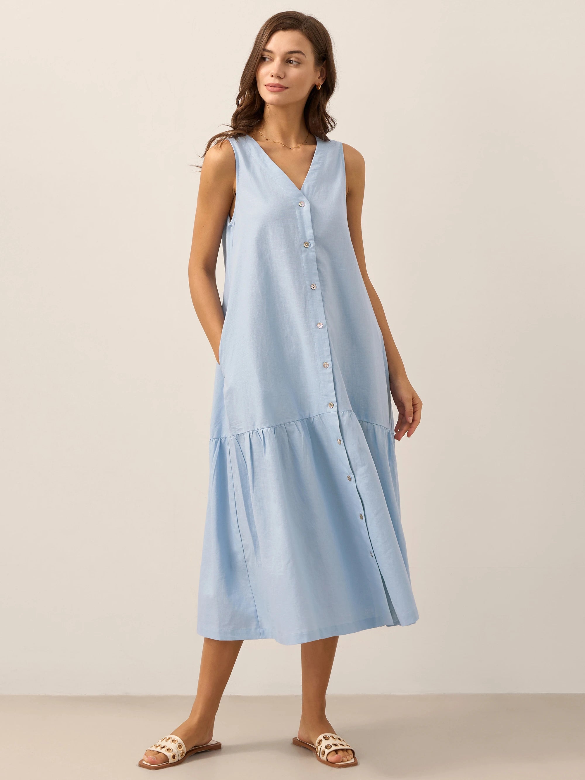 100% Linen Shawl V-Neck Half Sleeve Top JADE