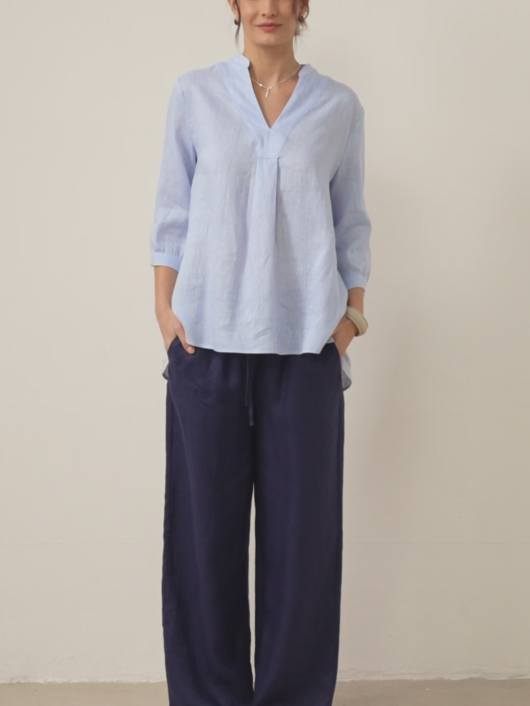 Made from pure flax, our linen lacks elasticity, resulting in natural wrinkles when worn or slept in. Embrace the 'lived-in luxe' aesthetic — a deliberate, carefree rumpled look that exudes quality. Our linen is garment-washed before it gets to you though, so you should experience minimal shrinkage.