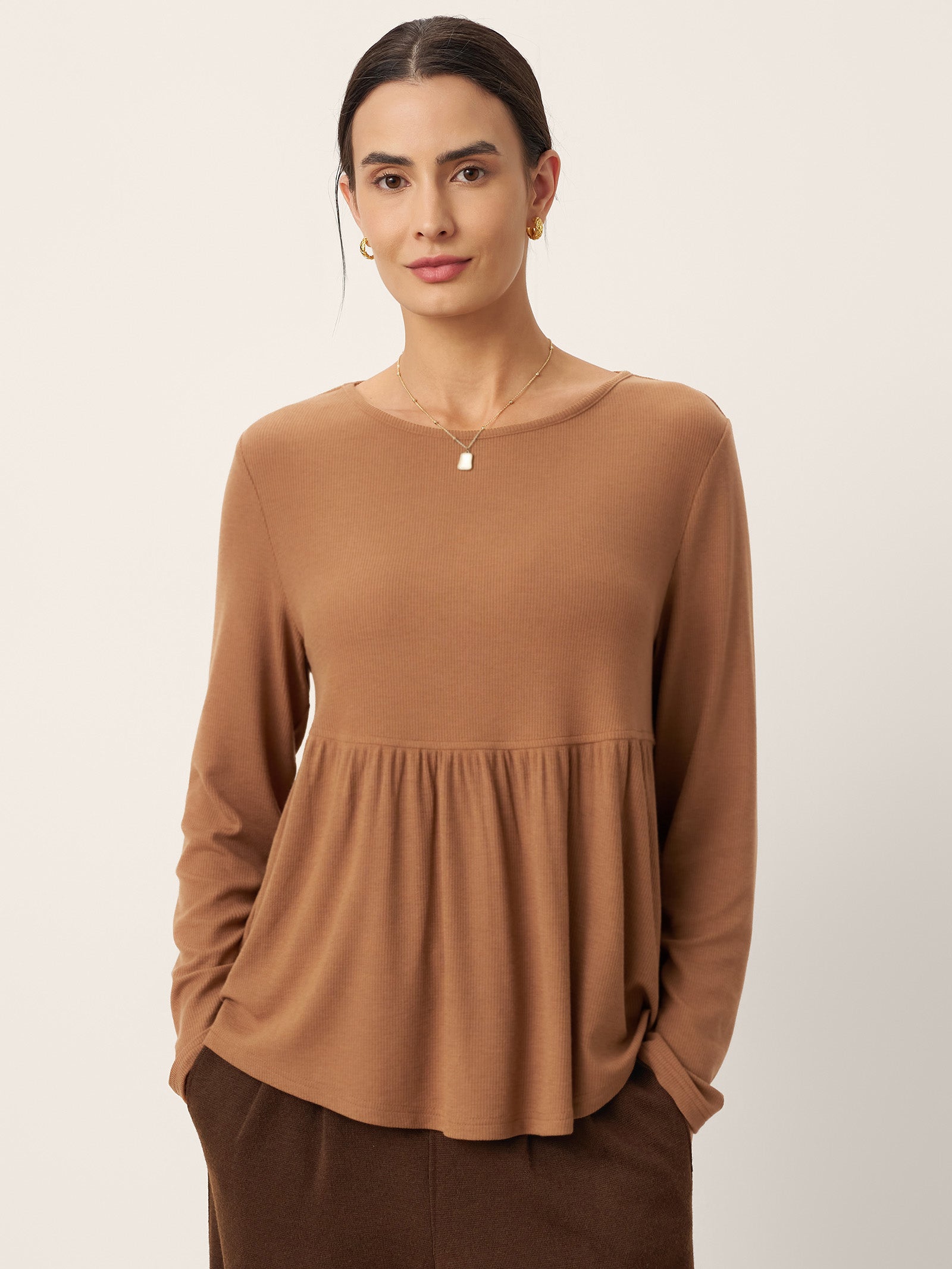 Tencel-Wool Boat Neck Long Sleeve Top CAROLYN