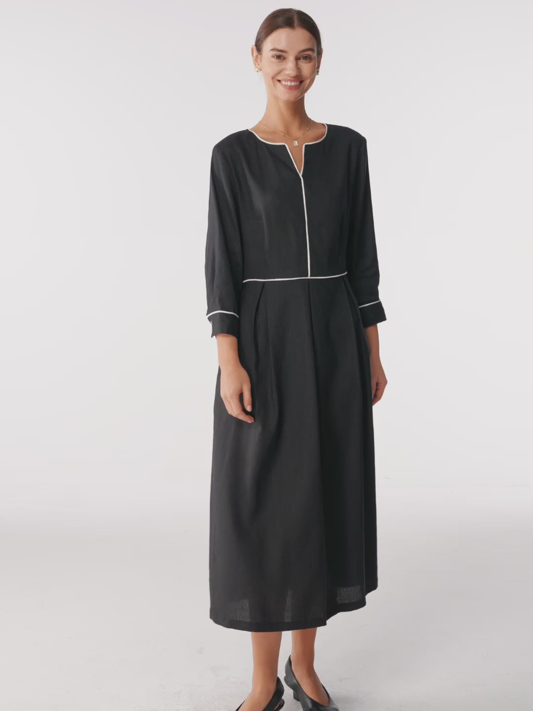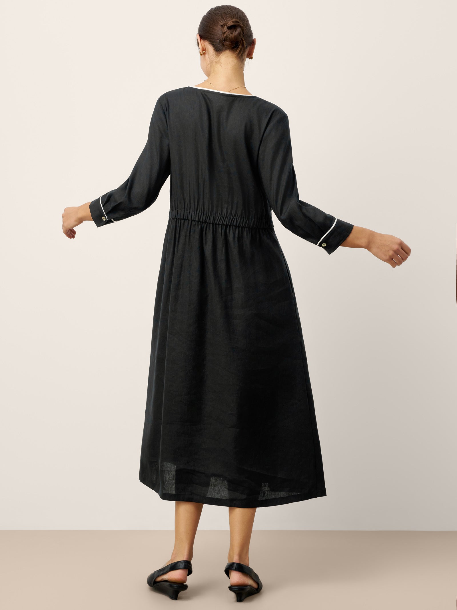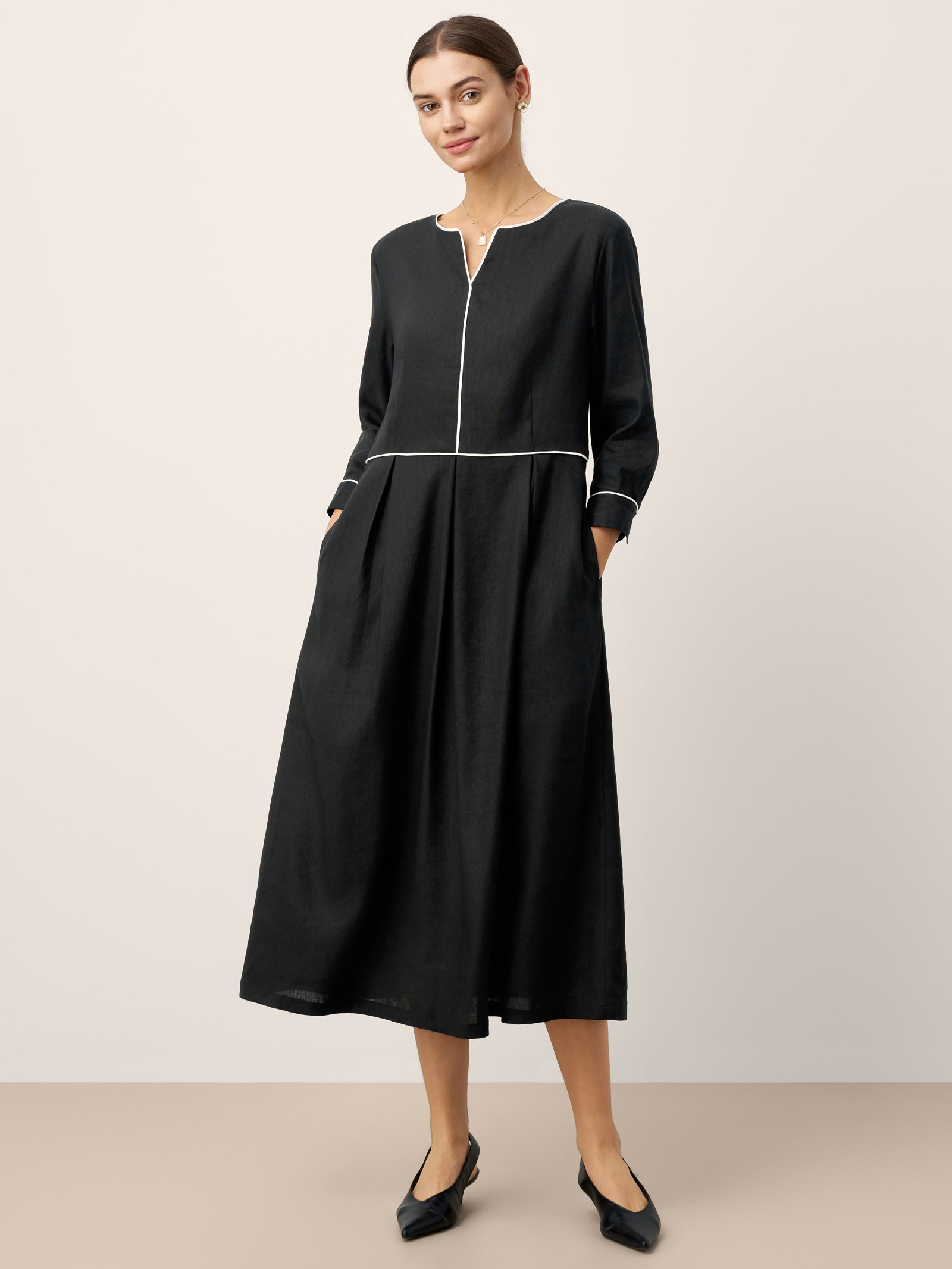 Linen-Lyocell Contrast Trim Gathered Maxi Dress NYX