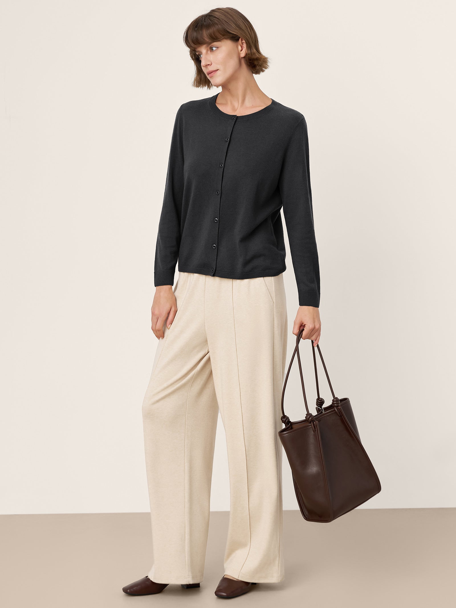 - Classic Round Neck: Elegantly frames the collarbone and layers seamlessly under coats or scarves