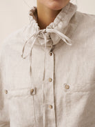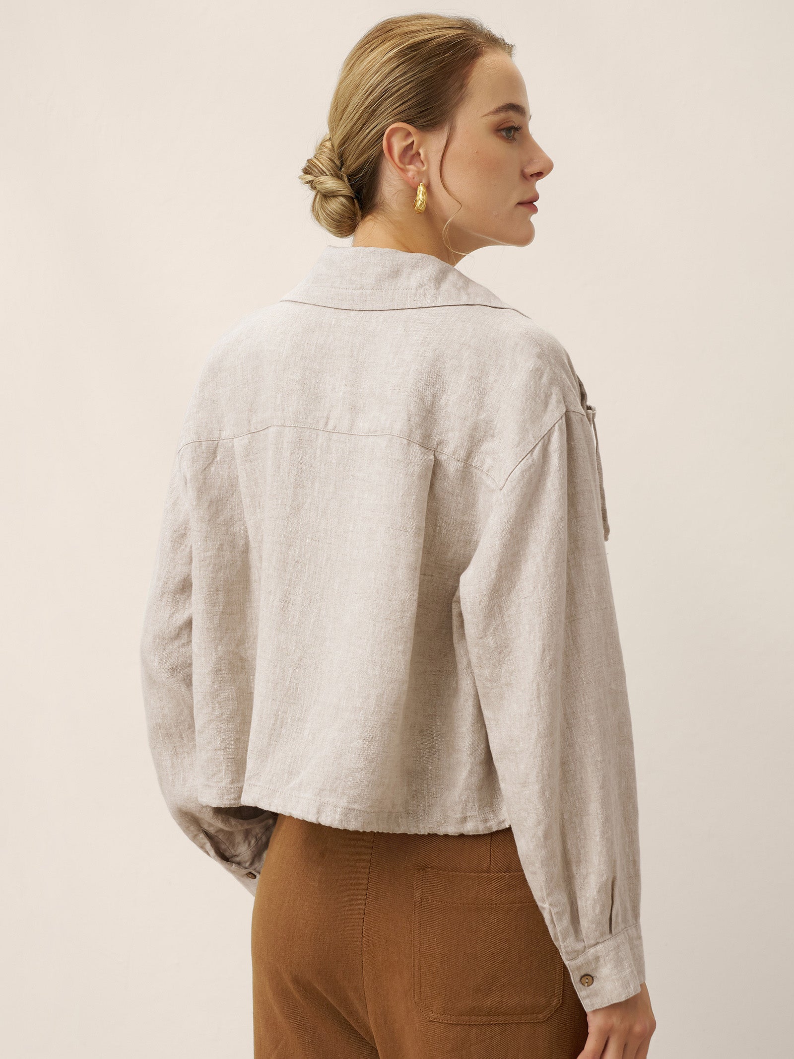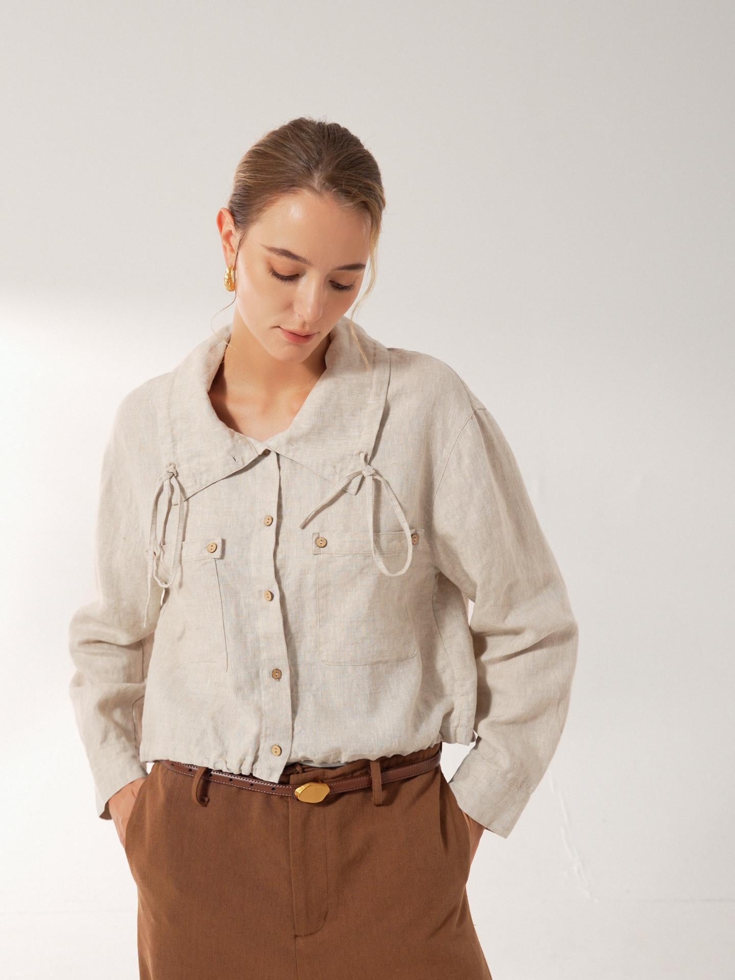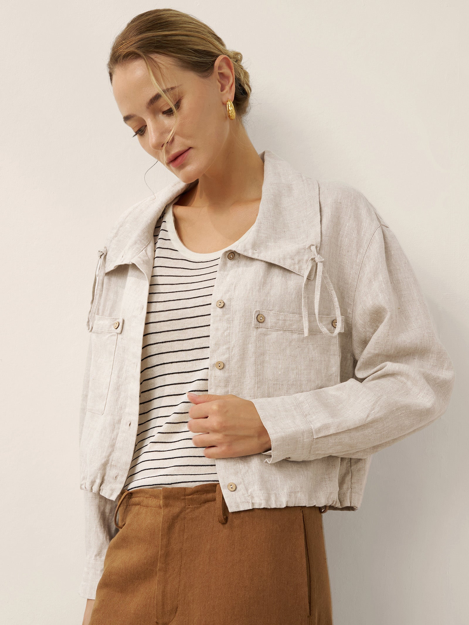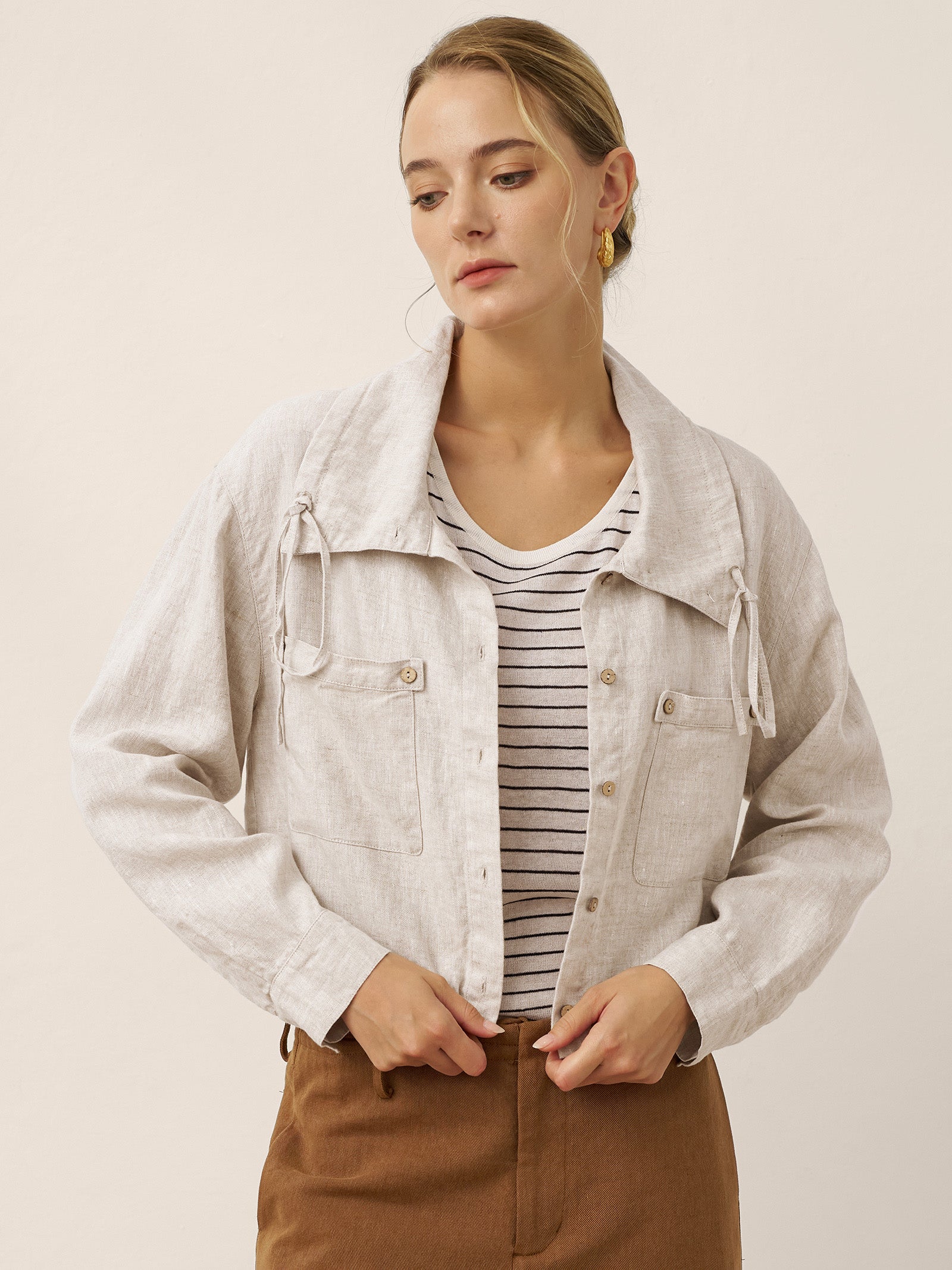 100% Linen Drawstring Convertible Lapel Jacket LAYNE
