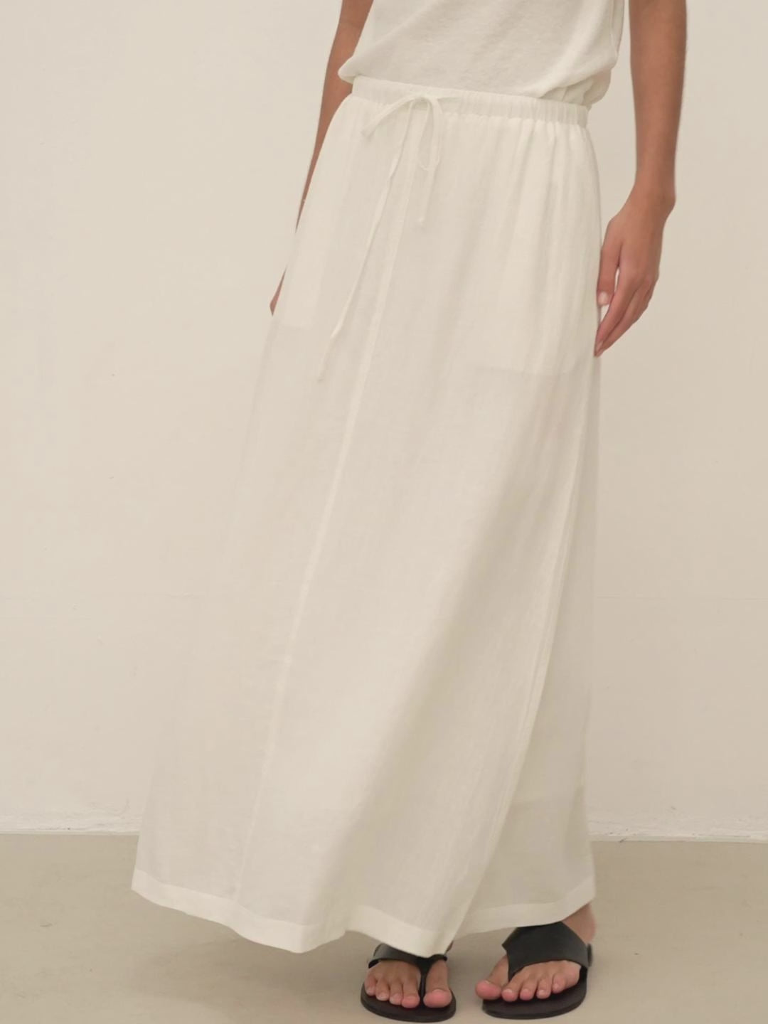 Linen Elastic Waist Drawstring Maxi Skirt NINA